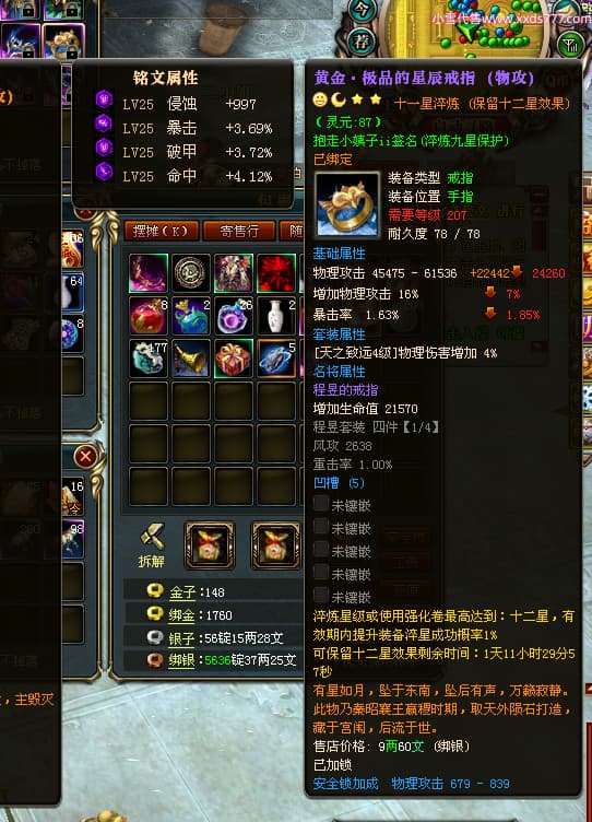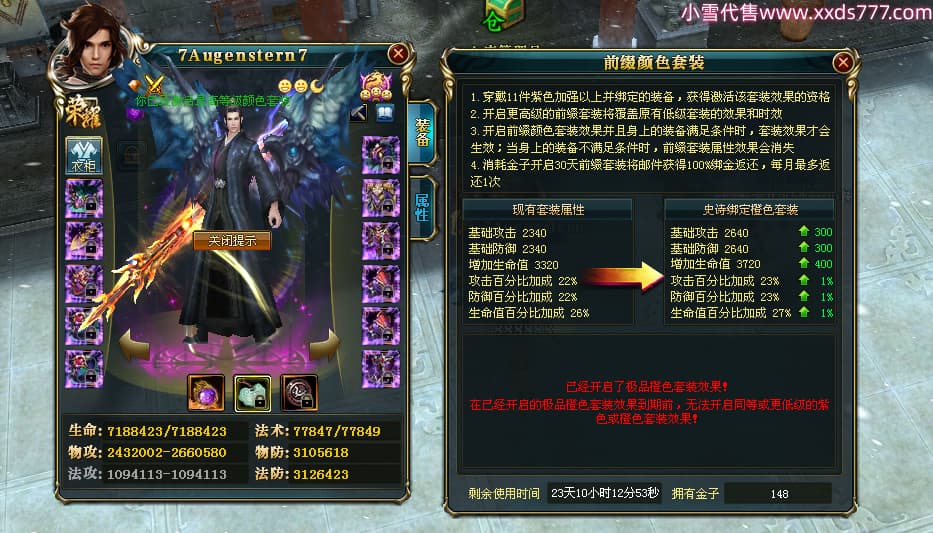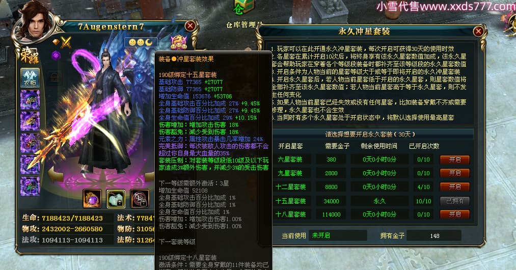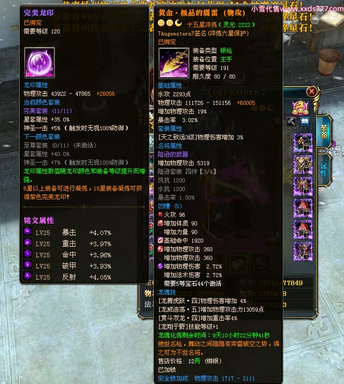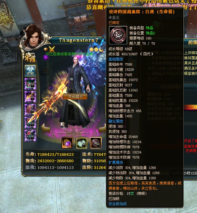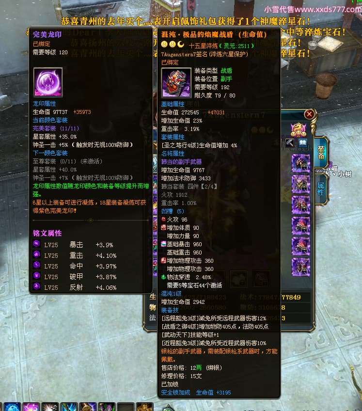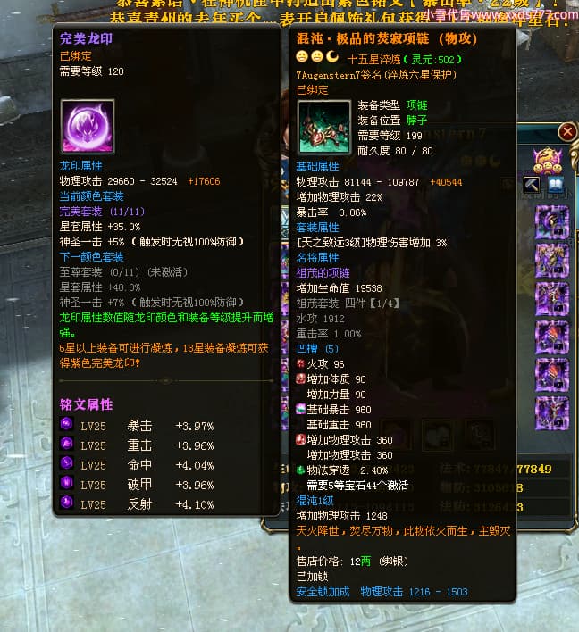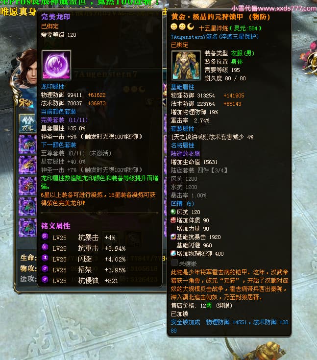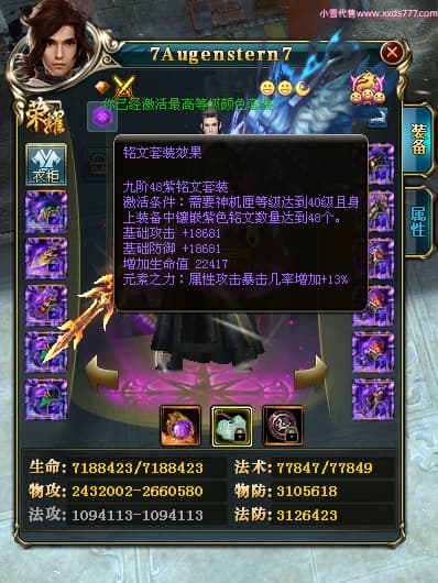 编号L24179 7Augenstern7 龙战王者 幽州 本国排名61名 6251W战力 人物黄金极品橙15X(9件混沌) 马黄金精良橙12X 人物紫龙印 马绿龙印 六等单双属性石头 已开启永久15星套
