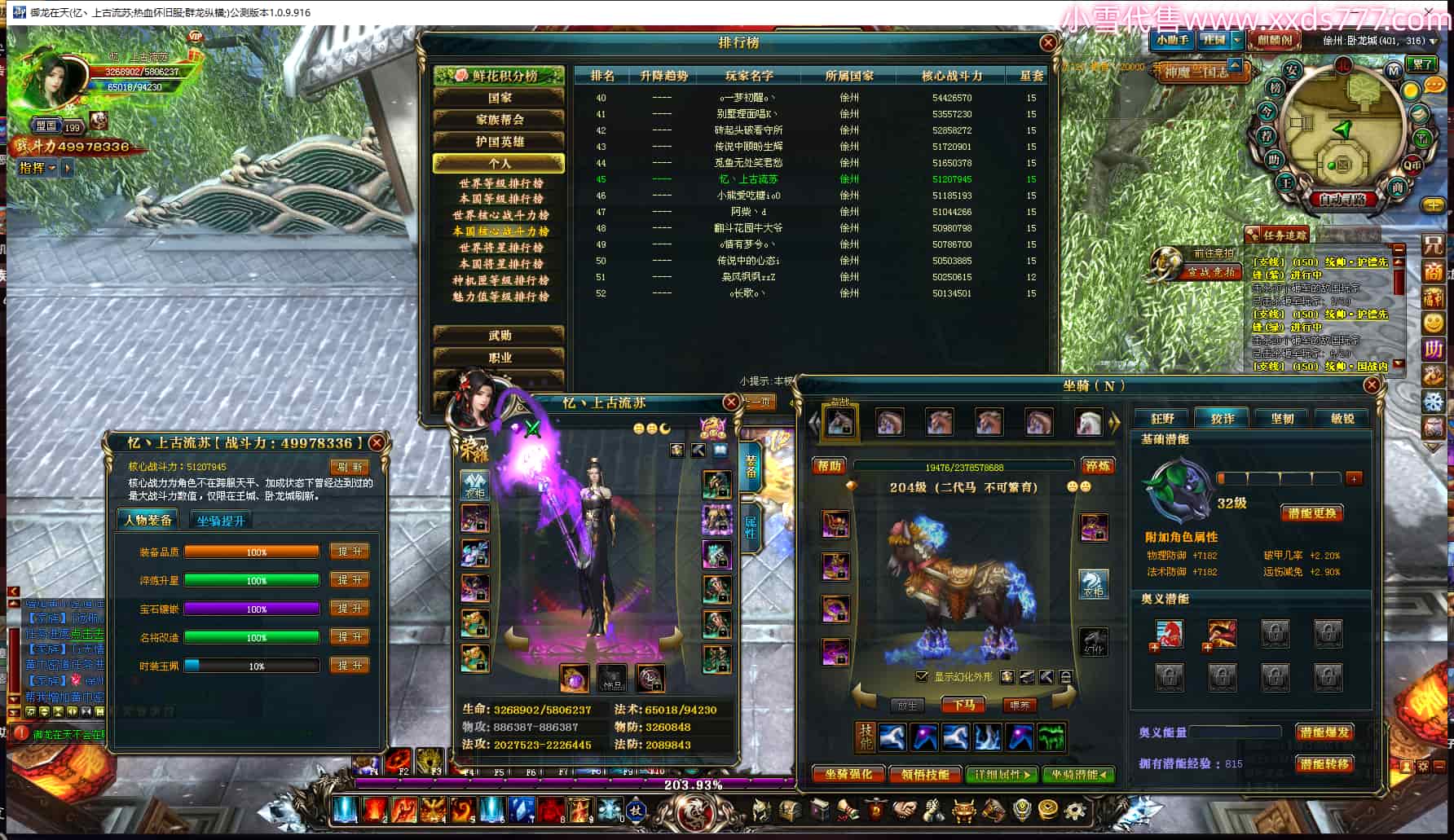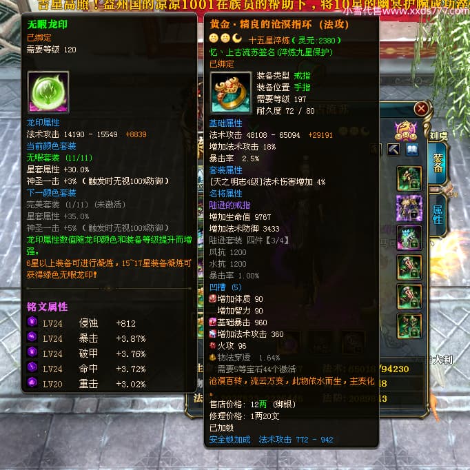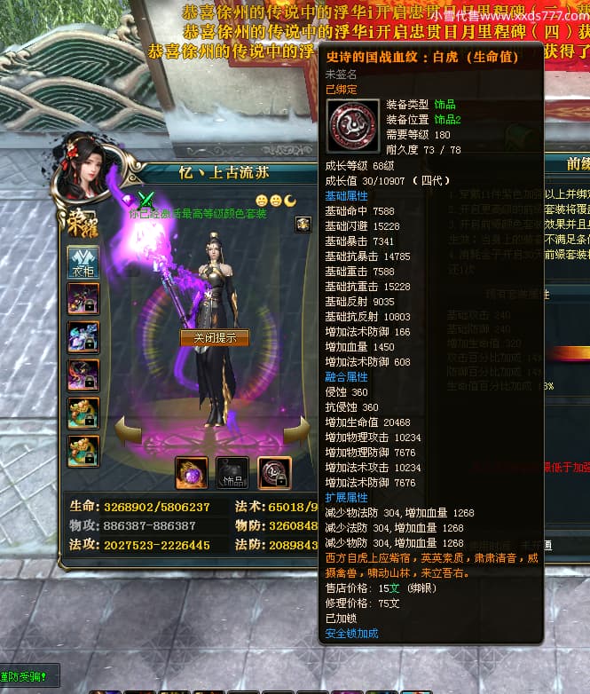 编号Q24183 忆丶上古流苏 群龙纵横 徐州 世界排名79名 5953W战力 人物黄金精良橙15X(1件18X6件混沌) 马黄金普通橙12X 人物绿龙印(1件紫龙印) 马黄龙印 六等单双属性石头 已开完永久15星套 可以转移百分百安全