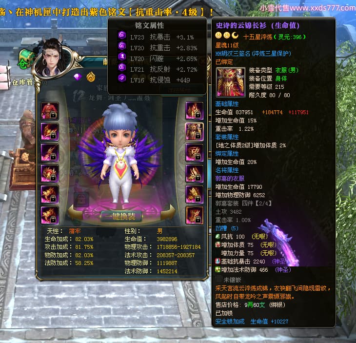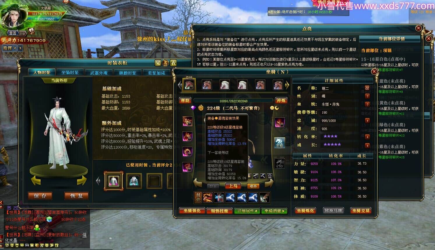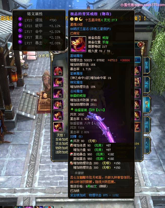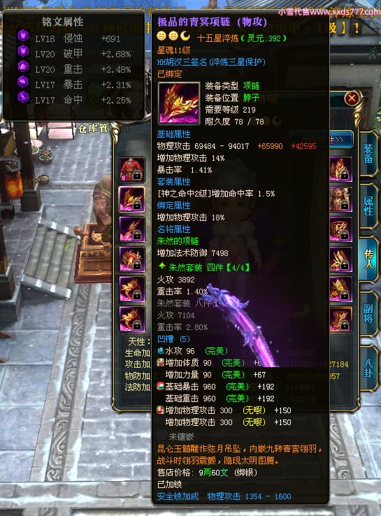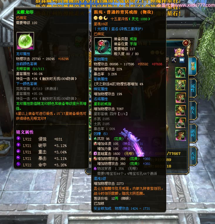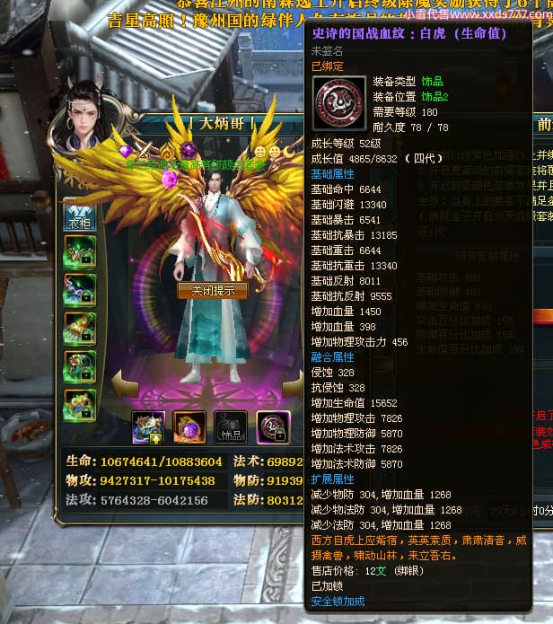 编号W24483 丨大炳哥丨 龙舞九州 徐州 本国排名26名 14176W战力 人物普通橙15X(4件混沌) 传人精良紫15X 副将精良紫12X 马史诗紫9X 精良紫14披风 人物星魂16级 传人星魂10级 副将星魂6级 马星魂9级 人物铭刻15级 点亮项链盔甲腰带14星其他16星 马铭刻13级 点亮10星 人物绿龙印 马黄龙印 五六等单双属性神圣完美无暇石头 蓝白孔