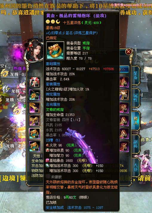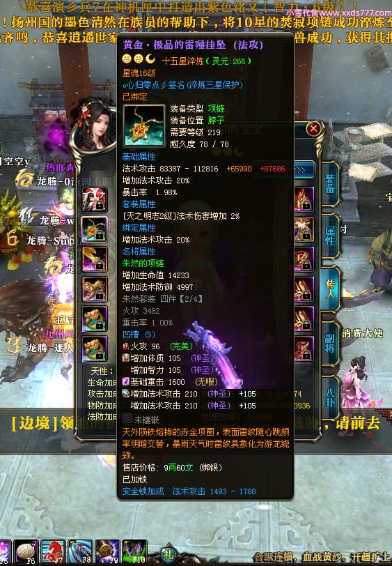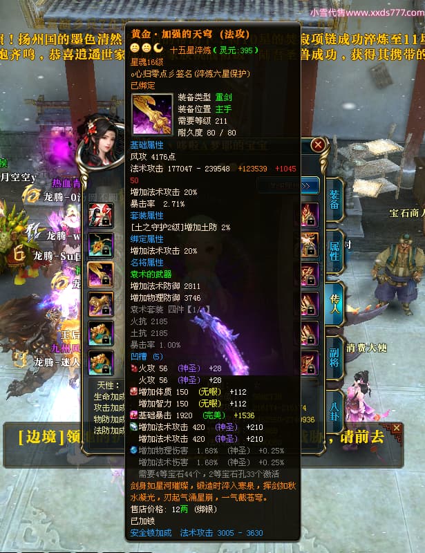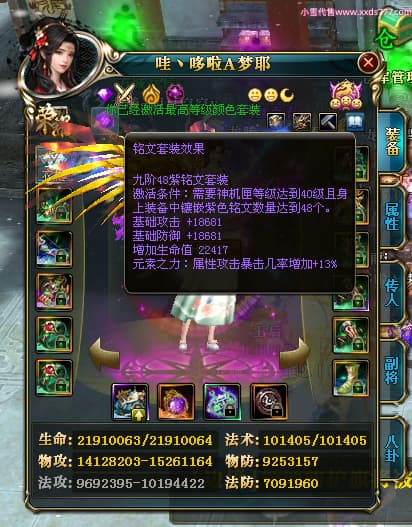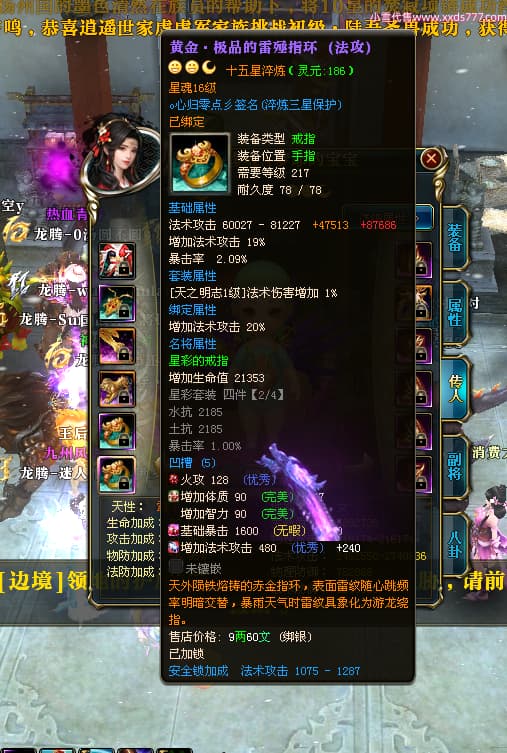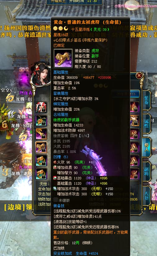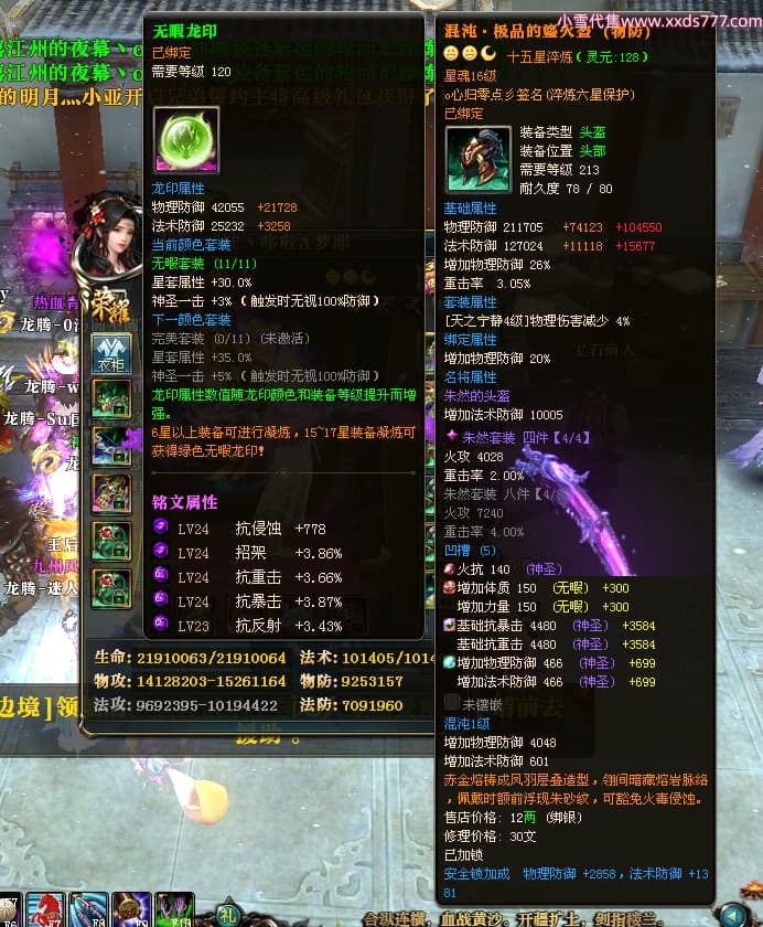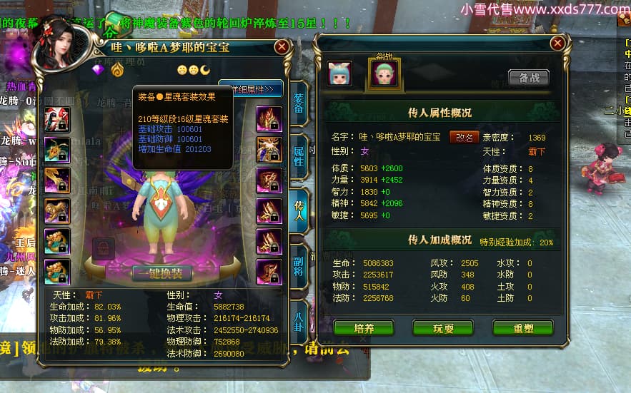 编号T24539 哇丶哆啦A梦耶 龙腾问鼎 江州 本国排名26名 21030W战力 人物黄金极品橙15X(8件混沌) 传人极品紫15X 副将史诗紫15X 马黄金普通橙12X 极品紫15披风 人物星魂16级 传人星魂16级 副将星魂6级 马星魂16级 人物铭刻15级 人物点亮16星 马铭刻13级 点亮12星 人绿龙印 马黄龙印 六等单双属性神圣完美无瑕石头 黄绿孔 已开完永久15星套 可以转移百分百安全