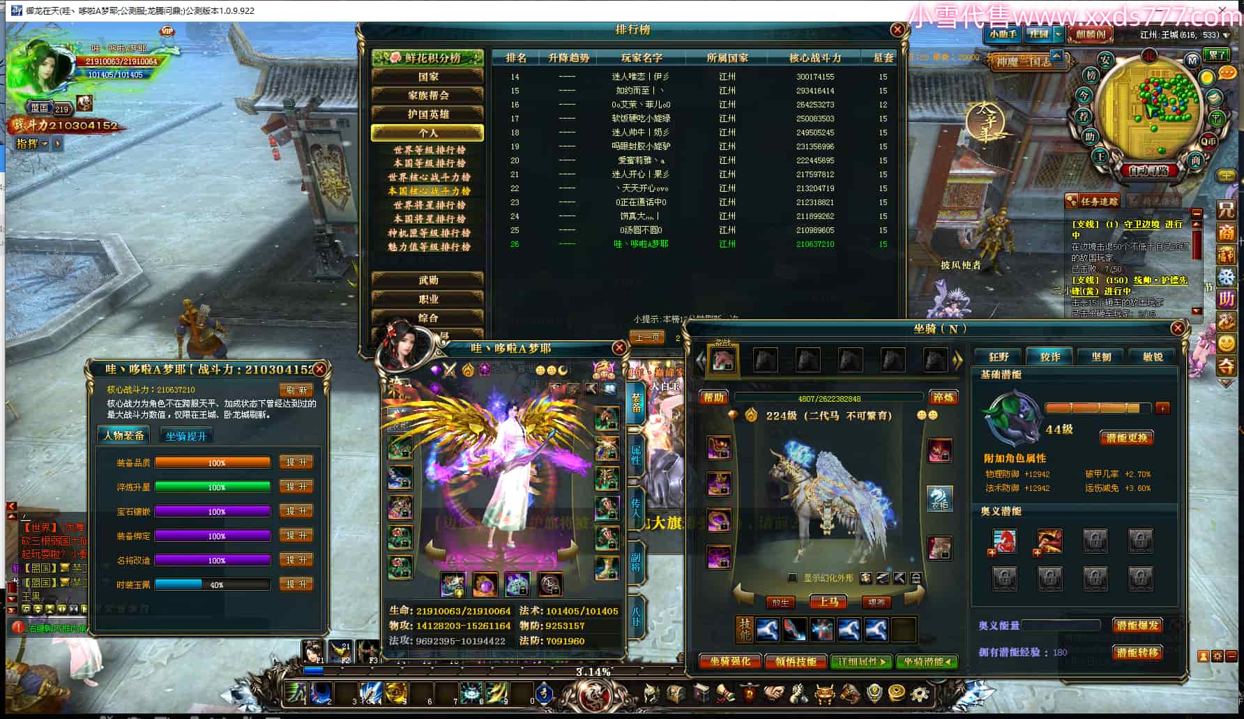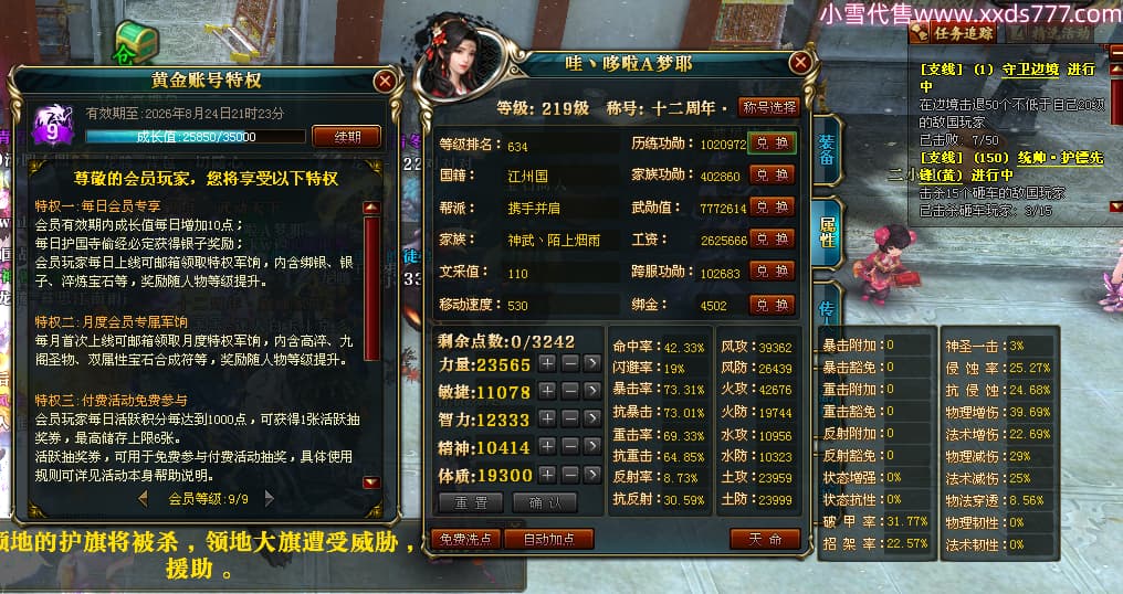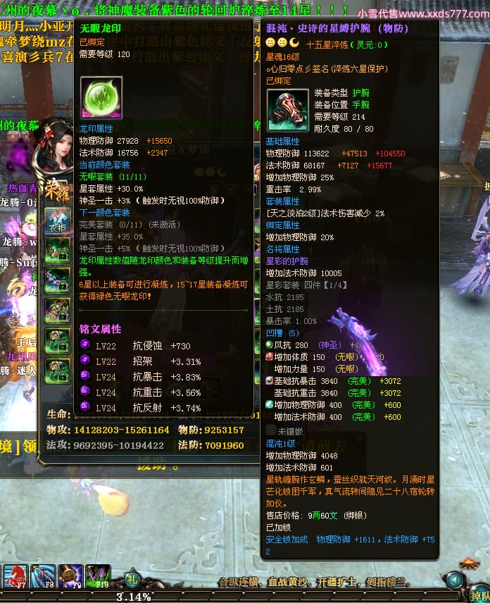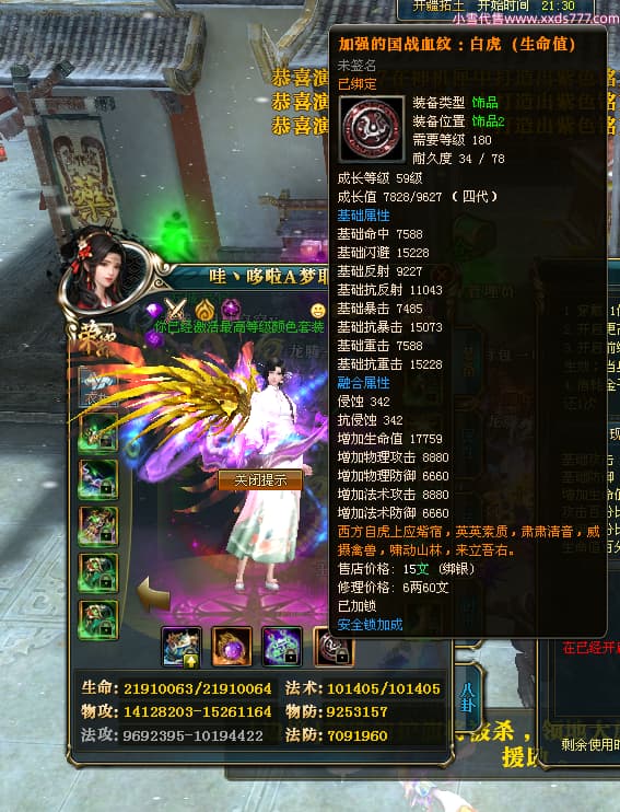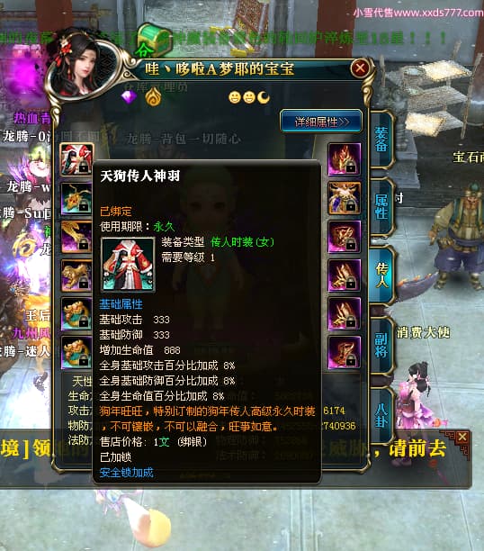 编号T24539 哇丶哆啦A梦耶 龙腾问鼎 江州 本国排名26名 21030W战力 人物黄金极品橙15X(8件混沌) 传人极品紫15X 副将史诗紫15X 马黄金普通橙12X 极品紫15披风 人物星魂16级 传人星魂16级 副将星魂6级 马星魂16级 人物铭刻15级 人物点亮16星 马铭刻13级 点亮12星 人绿龙印 马黄龙印 六等单双属性神圣完美无瑕石头 黄绿孔 已开完永久15星套 可以转移百分百安全