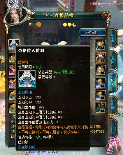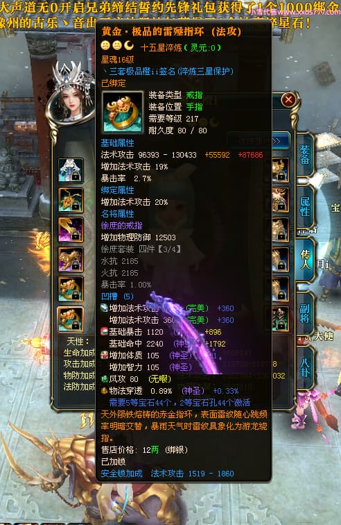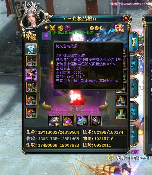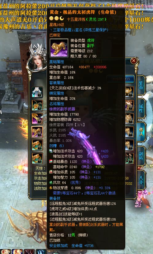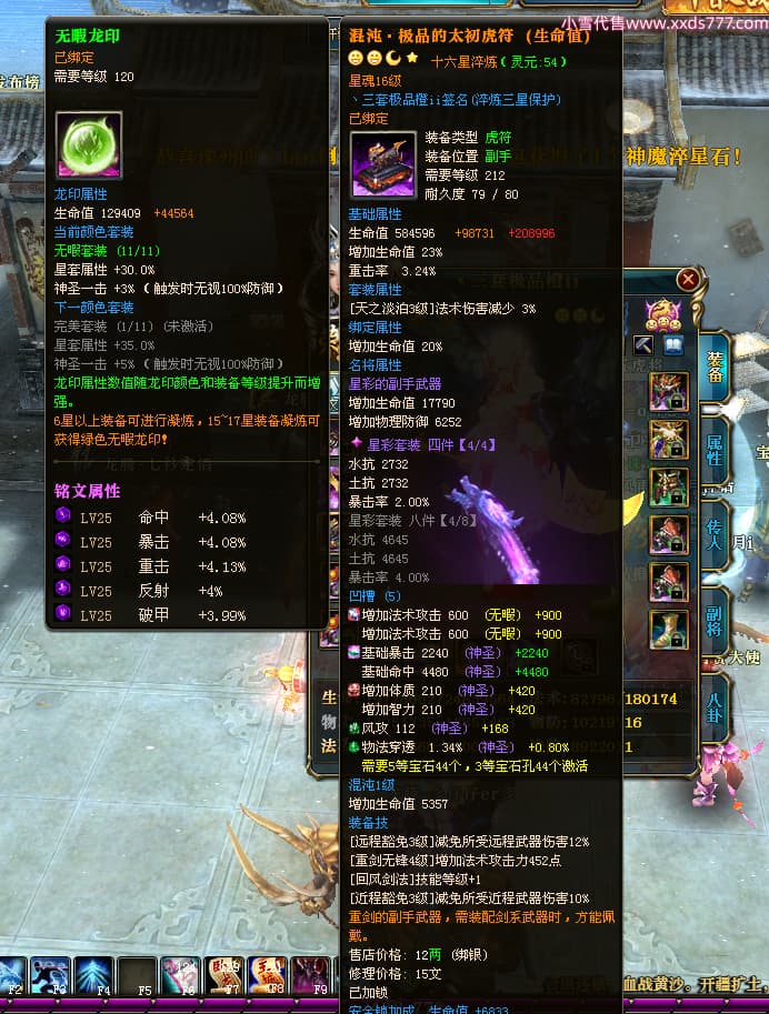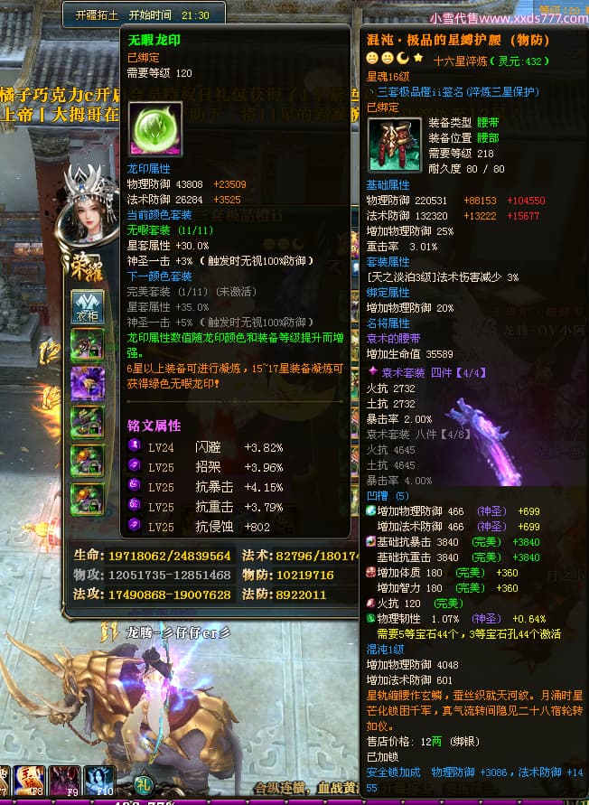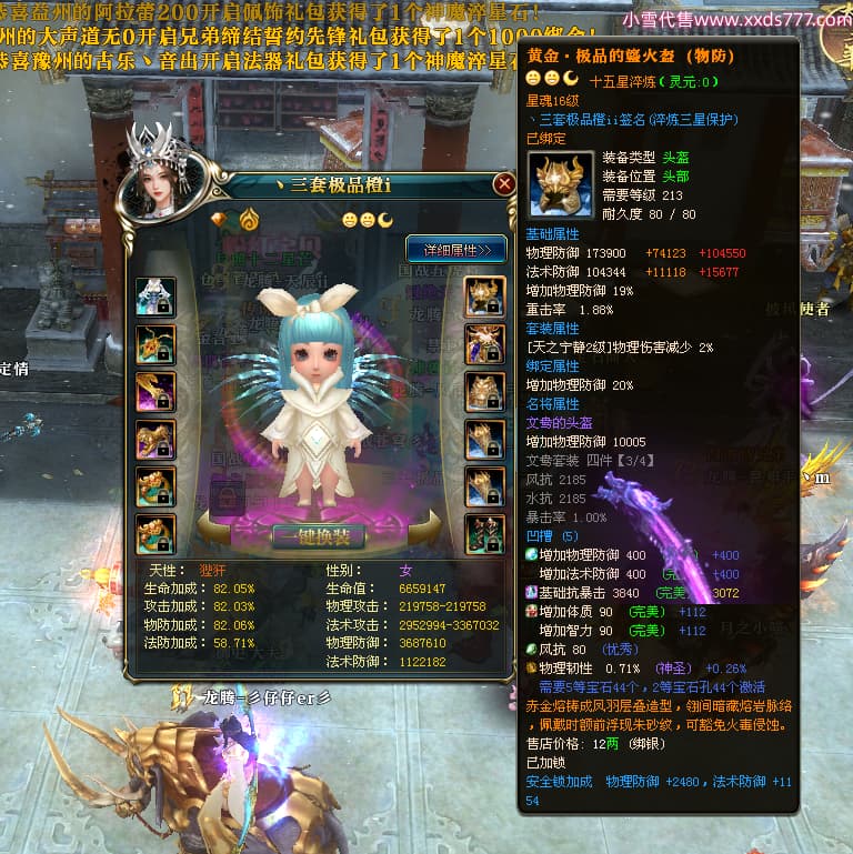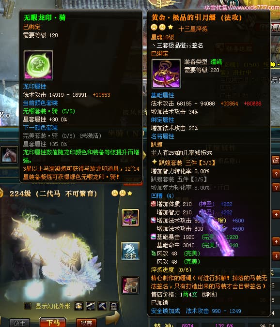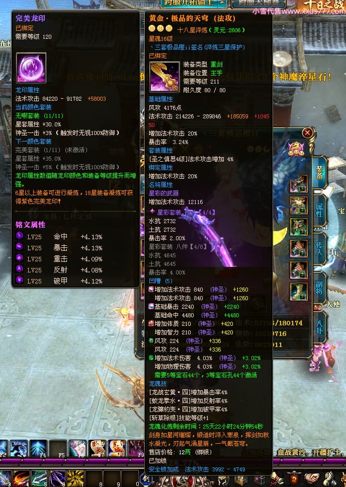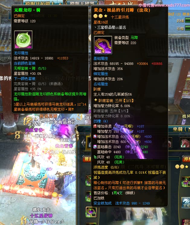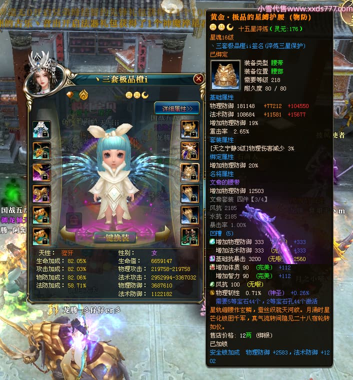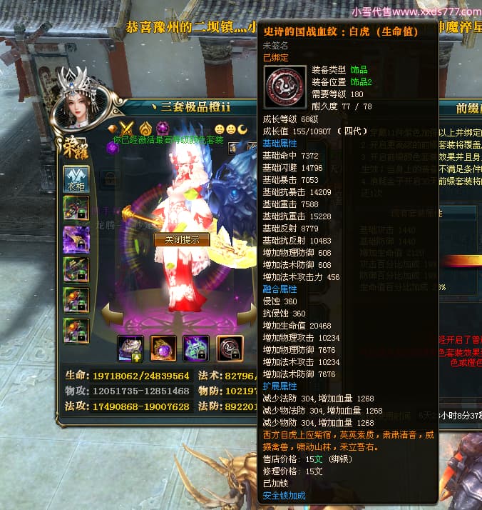 编号T24546 丶三套极品橙ii 龙腾问鼎 荆州 世界排名65名 27914W战力 人物黄金极品橙15X(1件18X8件混沌) 传人黄金极品橙15X 副将史诗紫15X 马黄金极品橙13X 极品紫15披风 人物星魂16级 传人星魂16级 副将星魂6级 马星魂16级 人物铭刻1件17级2件16级其余15级 点亮16星 马铭刻15级 点亮14星 人物绿龙印(1件紫龙印) 马绿龙印 六等单双属性完美无暇神圣石头 黄绿孔 可以转移百分百安全