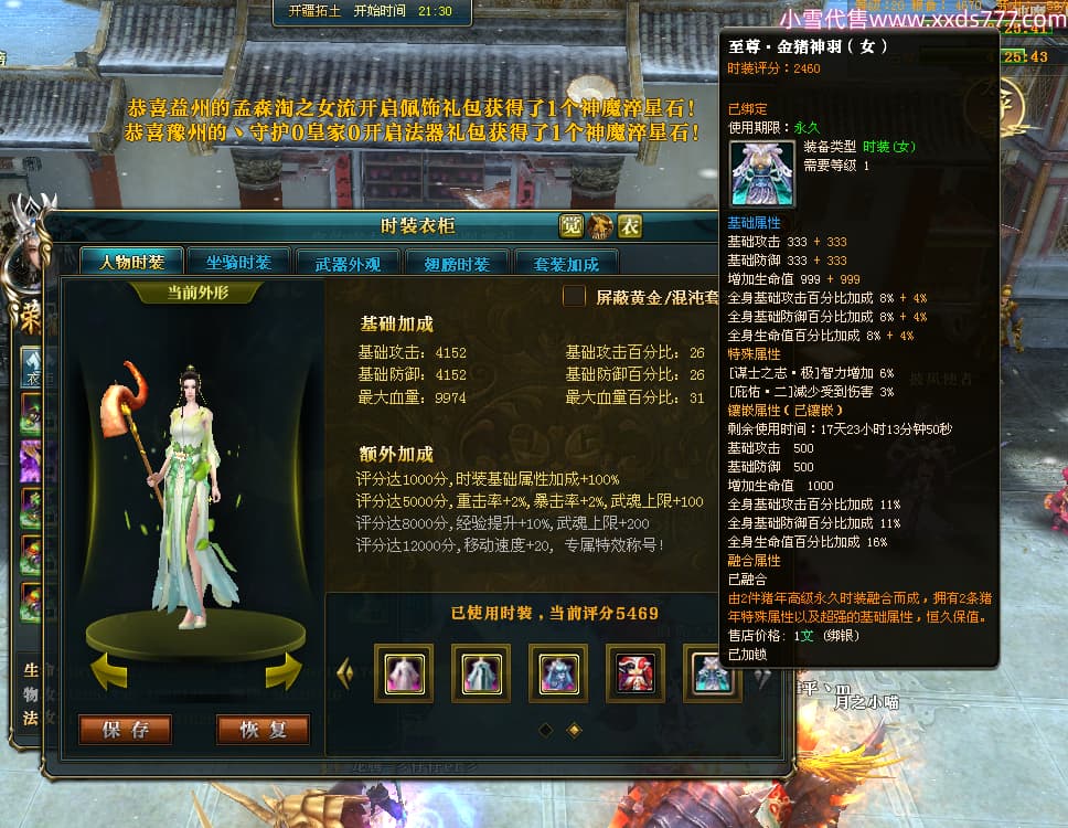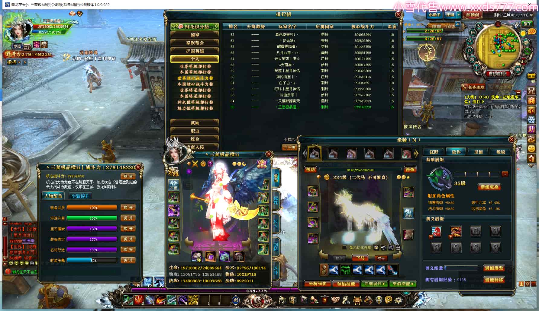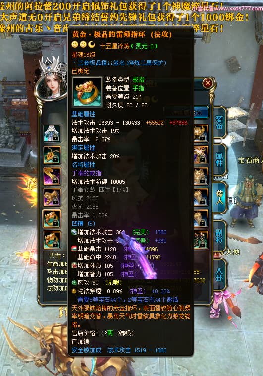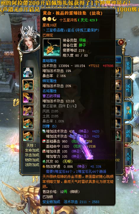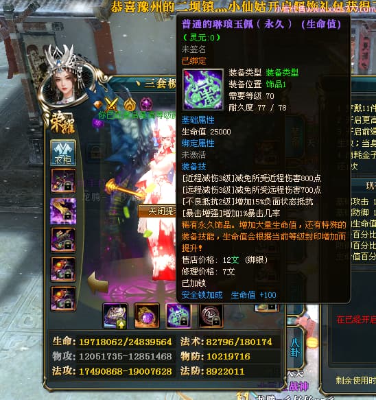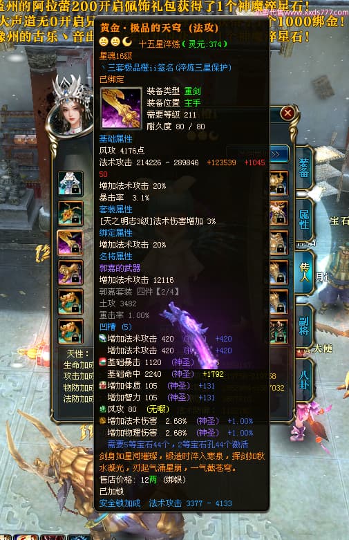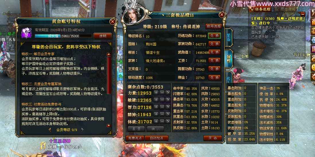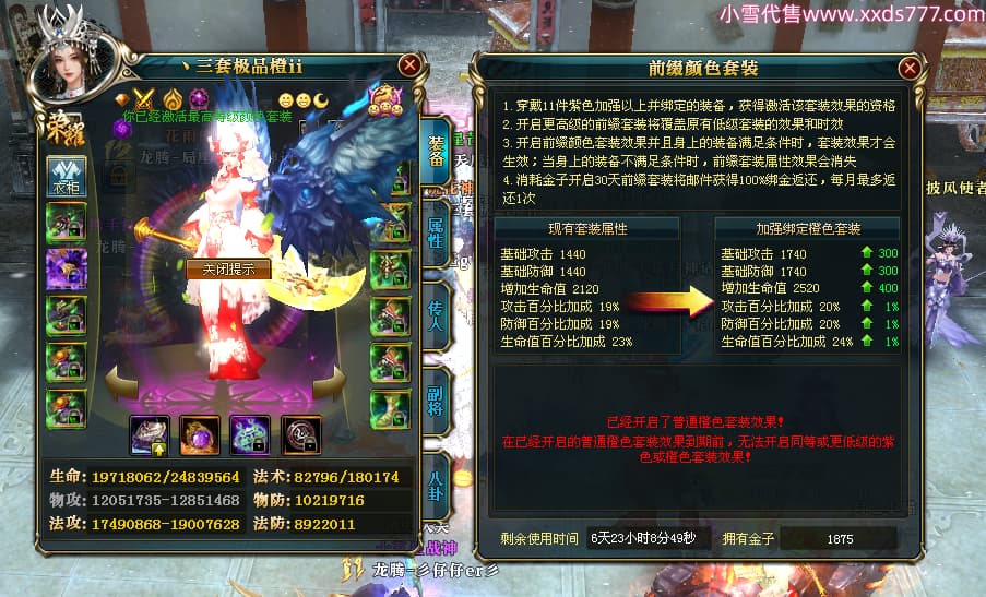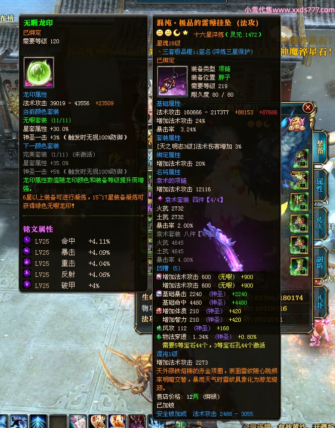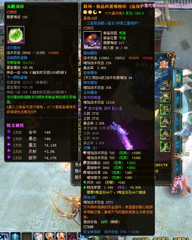 编号T24546 丶三套极品橙ii 龙腾问鼎 荆州 世界排名65名 27914W战力 人物黄金极品橙15X(1件18X8件混沌) 传人黄金极品橙15X 副将史诗紫15X 马黄金极品橙13X 极品紫15披风 人物星魂16级 传人星魂16级 副将星魂6级 马星魂16级 人物铭刻1件17级2件16级其余15级 点亮16星 马铭刻15级 点亮14星 人物绿龙印(1件紫龙印) 马绿龙印 六等单双属性完美无暇神圣石头 黄绿孔 可以转移百分百安全
