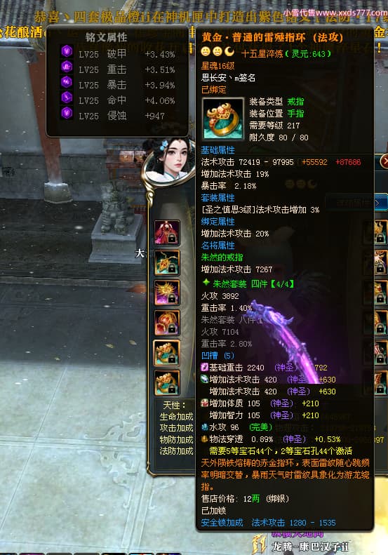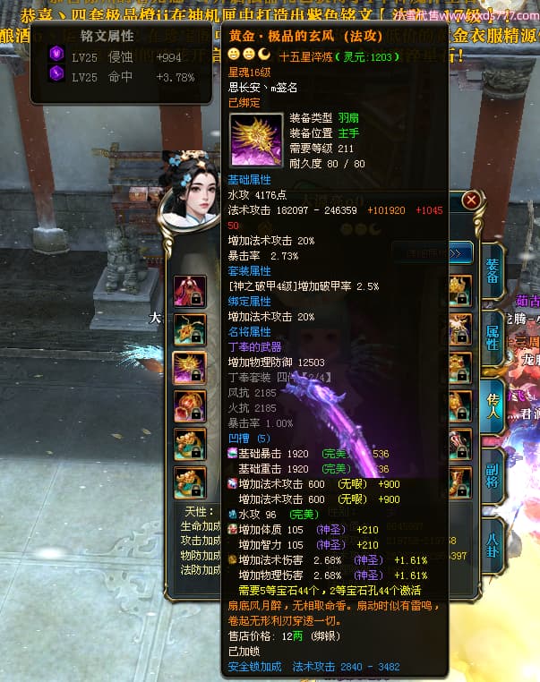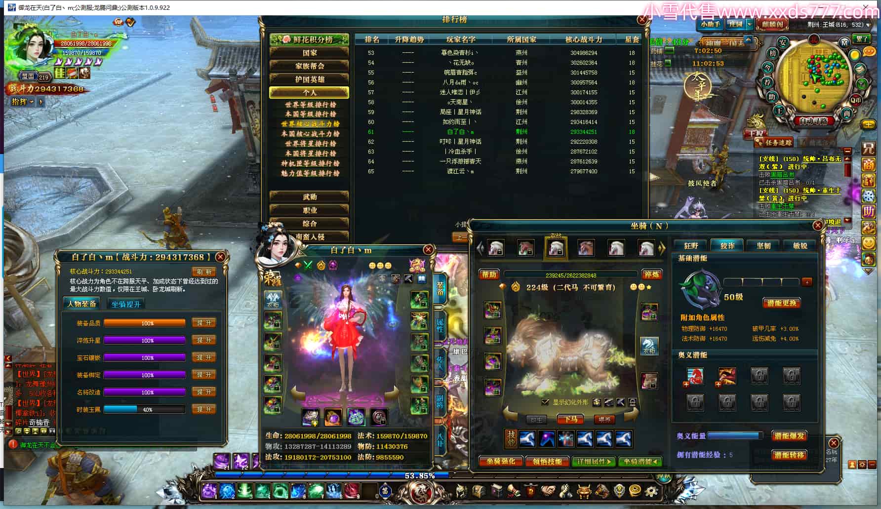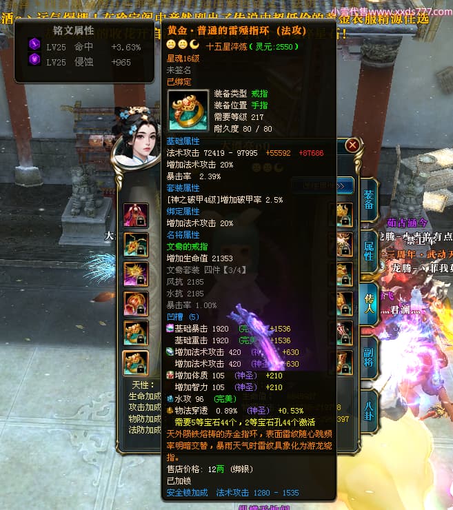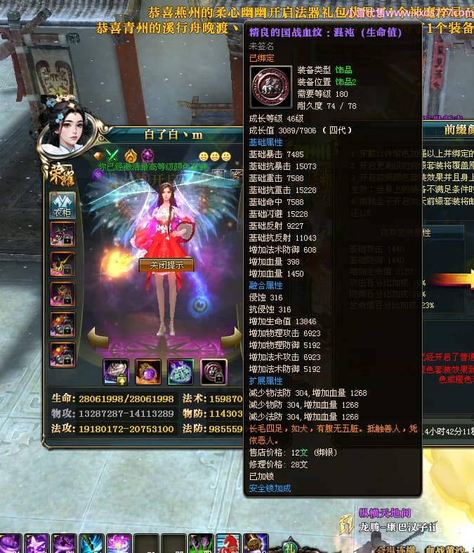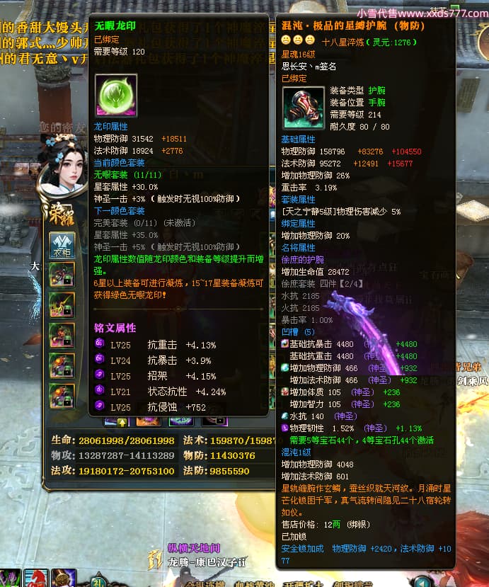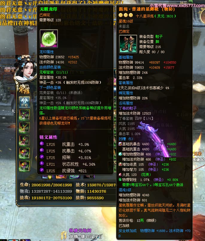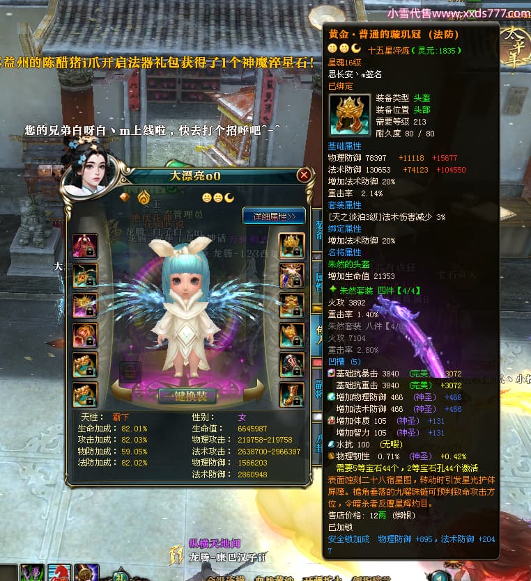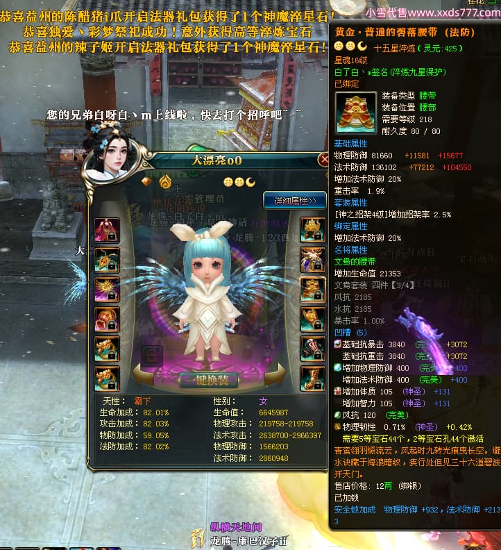 编号T24558 白了白丶m 龙腾问鼎 荆州 世界排名61名 29431W战力 人物黄金极品橙18X(8件混沌) 传人黄金普通橙15X 副将史诗紫12X 马黄金极品橙13X(双潜能50级14级) 极品紫16披风 人物星魂16级 传人星魂16级 副将星魂7级 马星魂16级 人物铭刻7件18级1件17级其余16级 点亮5件18星16星 马铭刻13级 点亮14星 人物绿龙印 马绿龙印 六等单双属性完美无暇神圣石头 绿孔 已开完永久15星套 可以转移百分百安全