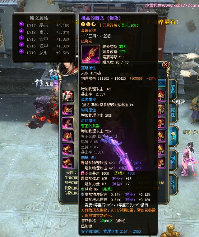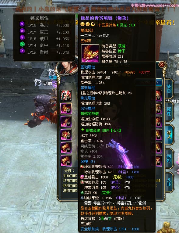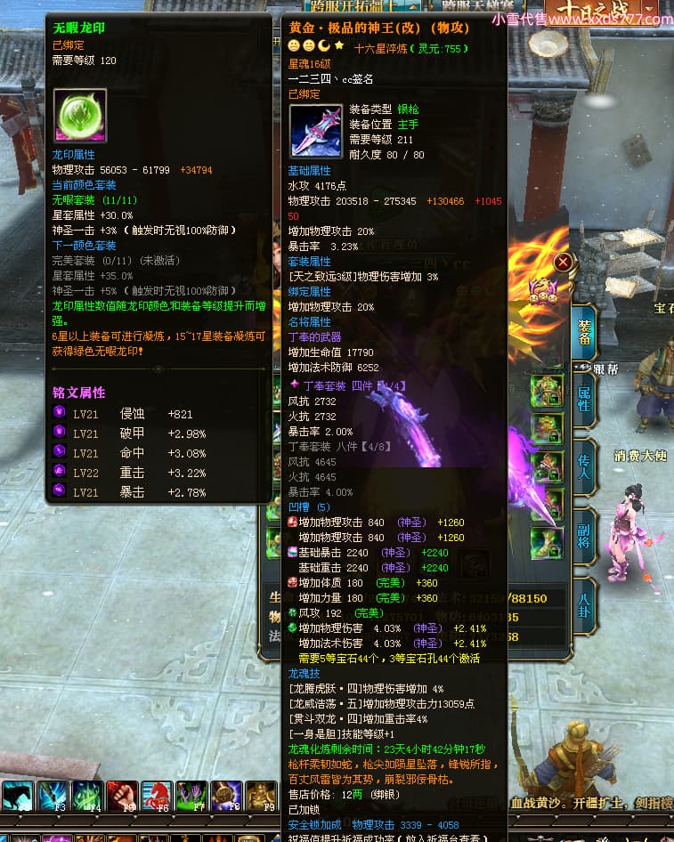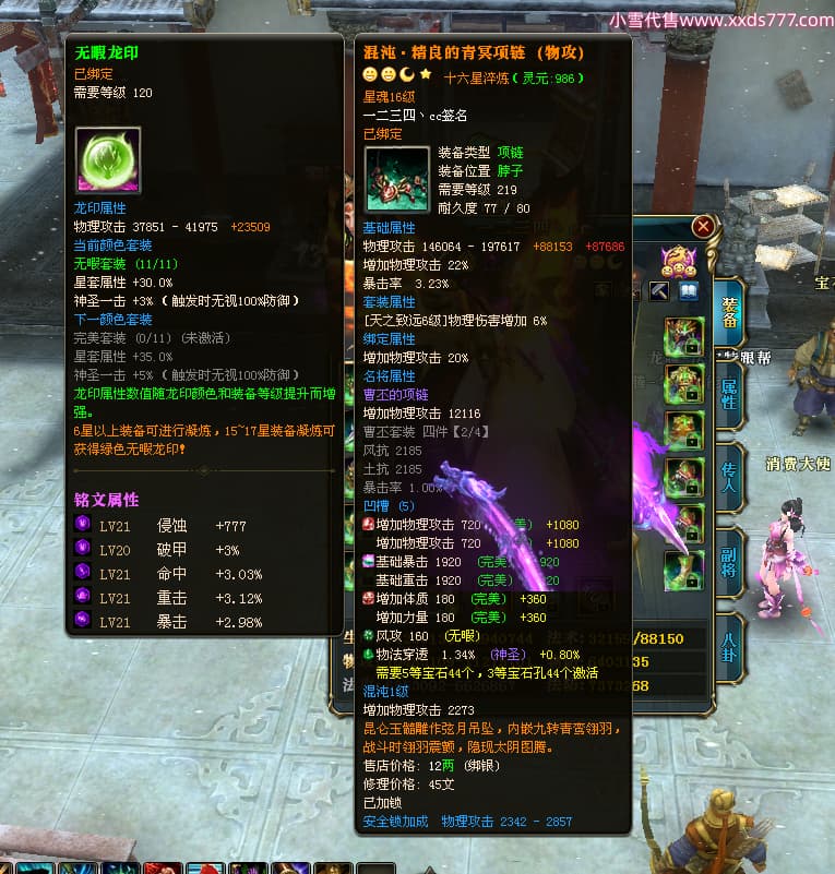 编号T24576 一二三四丶cc 龙腾问鼎 幽州 本国排名第29名 16824W战力 人物黄金普通橙15X(5件混沌) 传人极品紫15X 副将精良紫12X 马史诗紫12X 精良紫15披风 人物星魂16级 传人星魂9级 副将星魂6级 马星魂10级 人物铭刻15级 点亮16星 马铭刻12级 点亮12星 人物绿龙印 马黄龙印 五六等单双属性神圣完美无瑕石头 黄绿孔 已开7次永久15星套