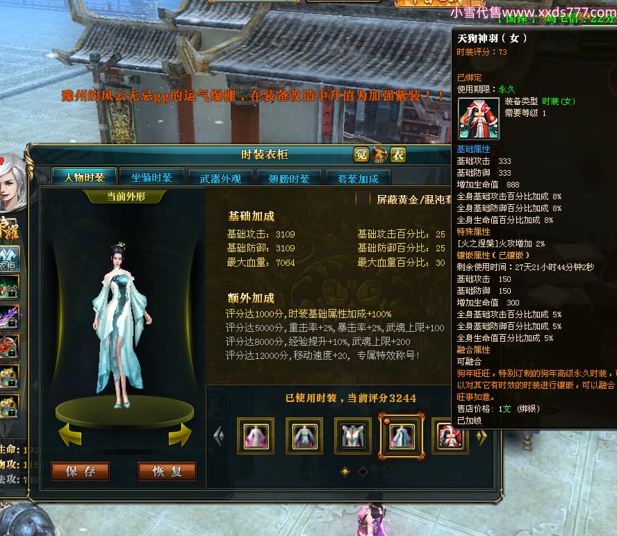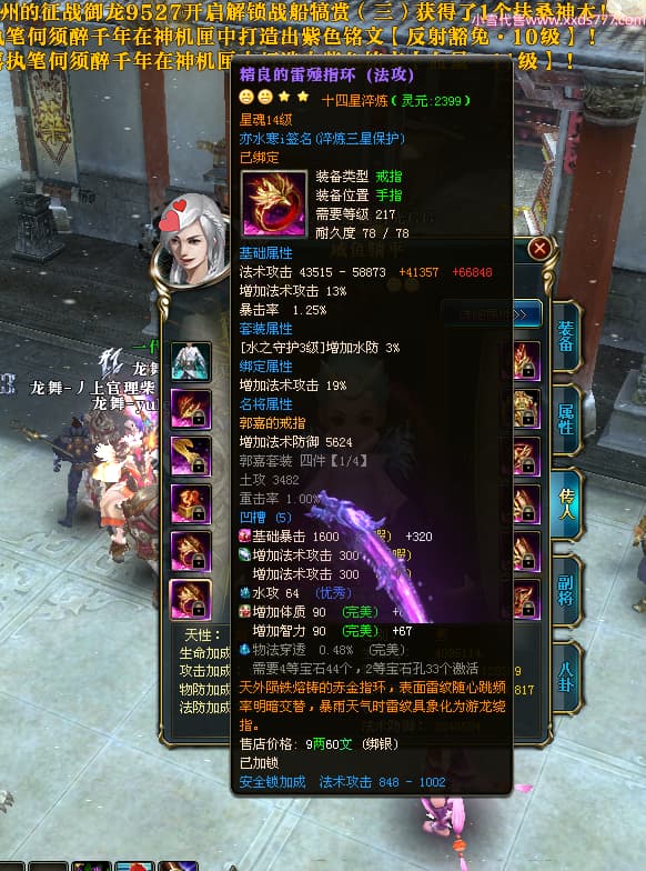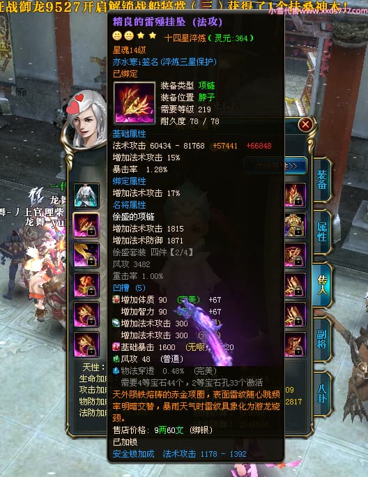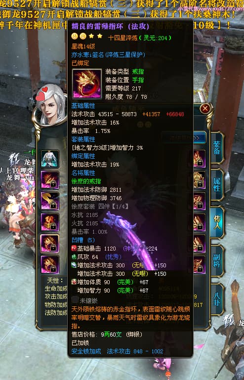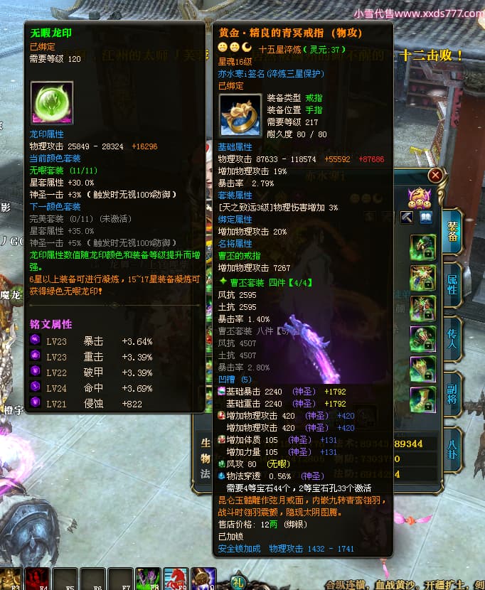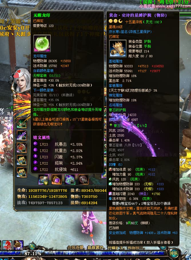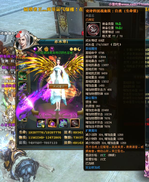 编号W24587 亦水寒i 龙舞九州 扬州 本国排名19名 17338W战力 人物黄金史诗紫15X(5件混沌) 传人精良紫12X 副将精良紫12X 马史诗紫12X 精良紫15披风 人物星魂16级 传人星魂14级 副将星魂6级 马星魂13级 人物铭刻15级 人物点亮4件16星其余14星 马铭刻12级 点亮12星 人物绿龙印 马黄龙印 五六等单双属性完美无暇神圣石头 蓝黄孔 已开2次永久15星套