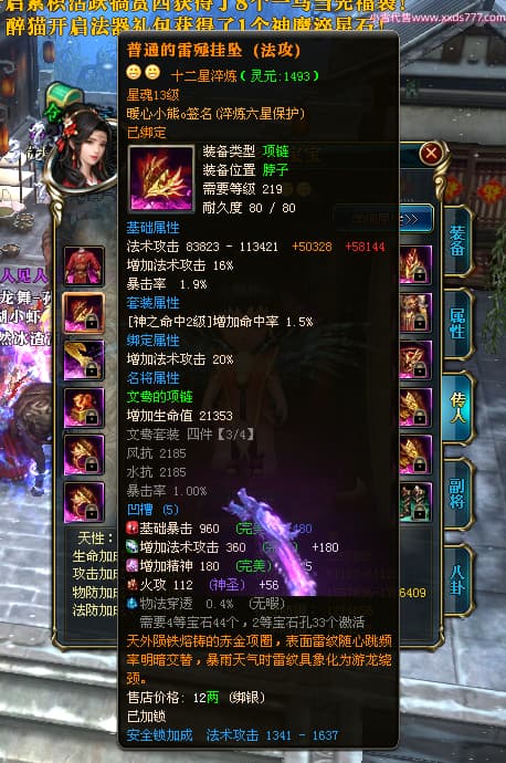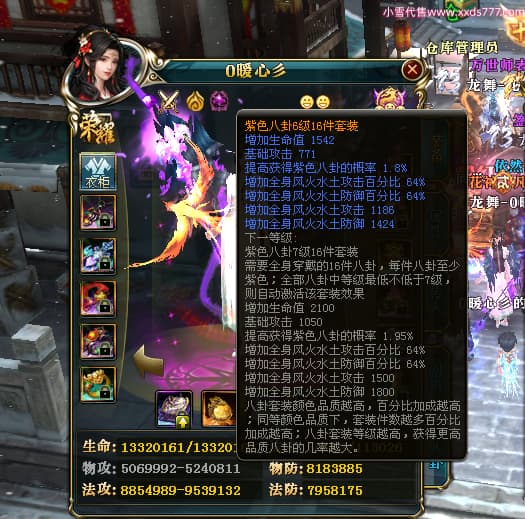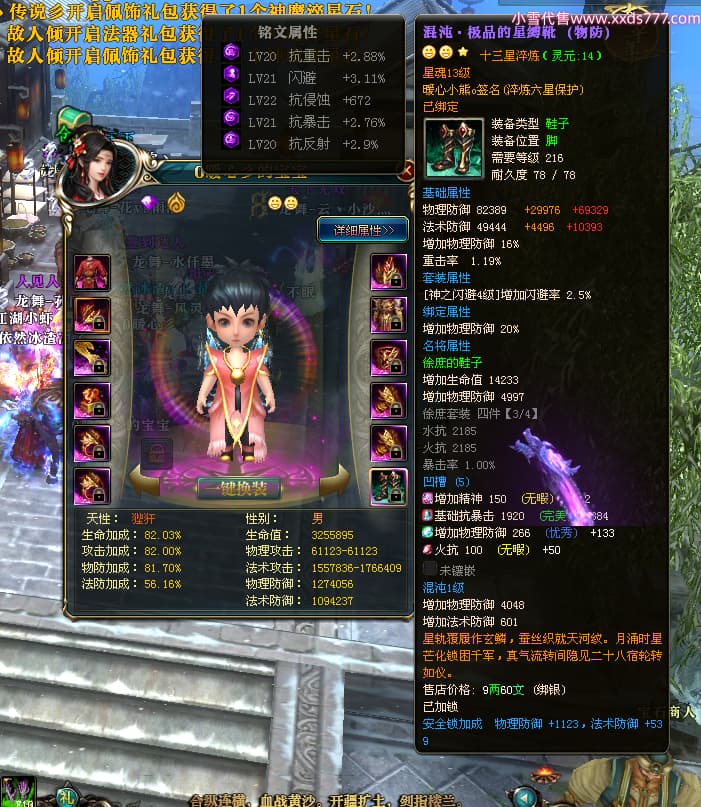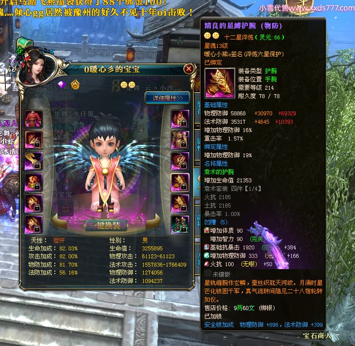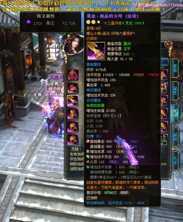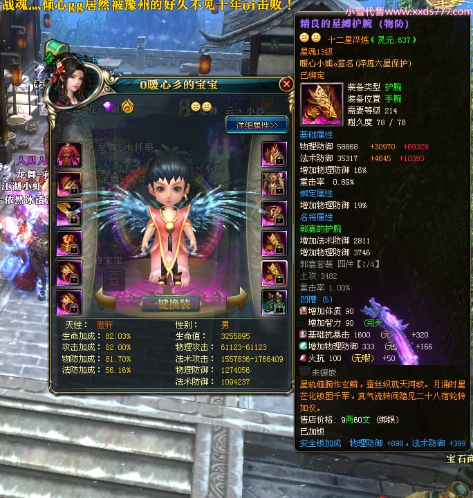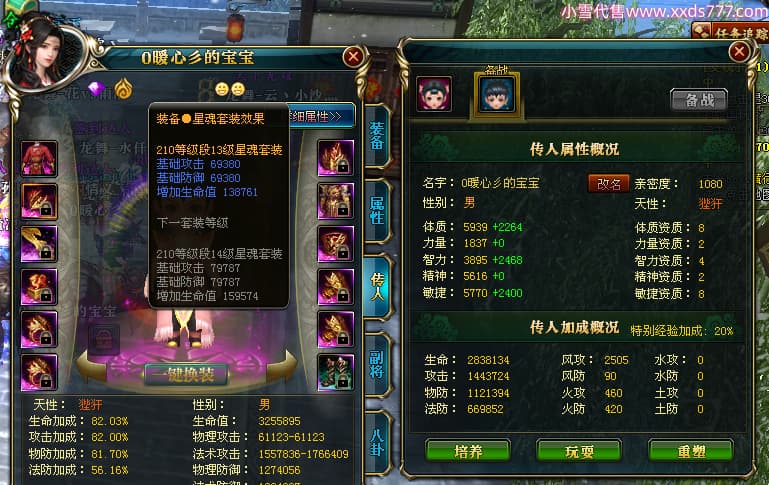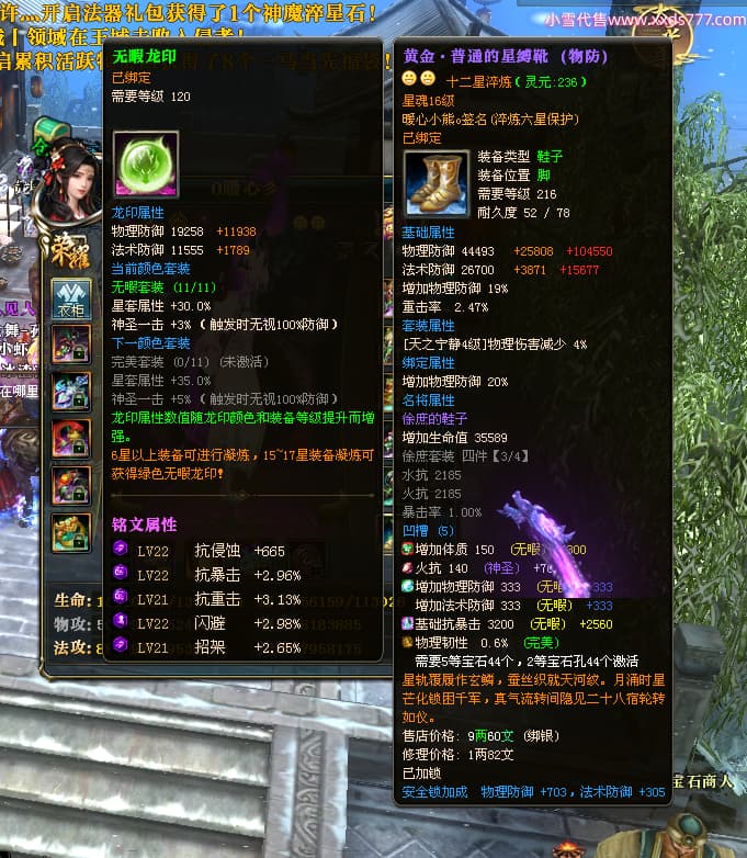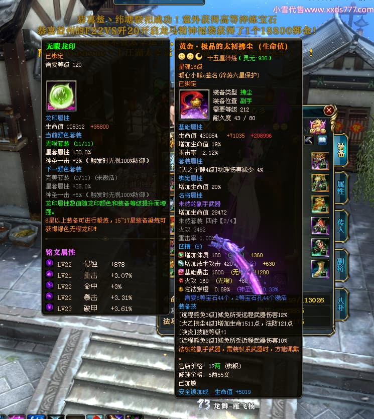 编号W24675 0暖心彡 龙舞九州 江州 本国排名64名 13773W战力 人物黄金史诗紫12X(1件18X4件15X5件混沌) 传人精良紫12XX 马普通橙10X 精良紫15披风 人物星魂16级 传人星魂13级 副将星魂6级 马星魂11级 人物铭刻15级 点亮7件14星其余12星 马铭刻15级 点亮10星 人物绿龙印 马黄龙印 六等单双属性神圣完美无暇石头 蓝黄孔 花榜号