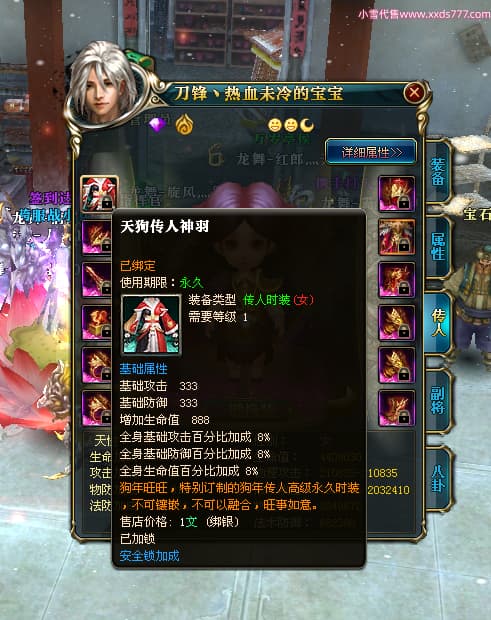 2:代挂账号截图里面的流通金,银子,道具等日常消耗会发生变化,均不作为账号详细参考,文字及截图可能会有误差,请老板以最终确认交易前为准(补充:除了游戏角色能转移的外 账號都有可能被找回风险 我们只担保交易换绑流程跟交易资金 不担保100%不会找回 我们会尽量避免找回并协助买家后期处理)支持买家购买找回包赔服务
