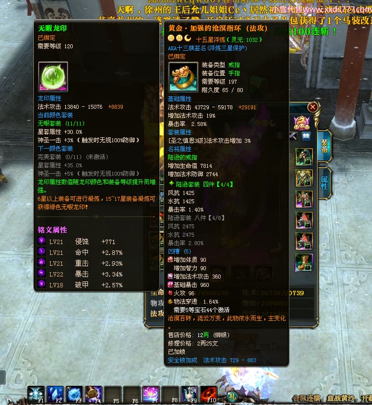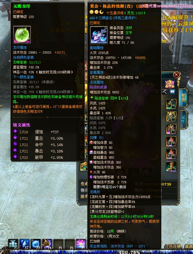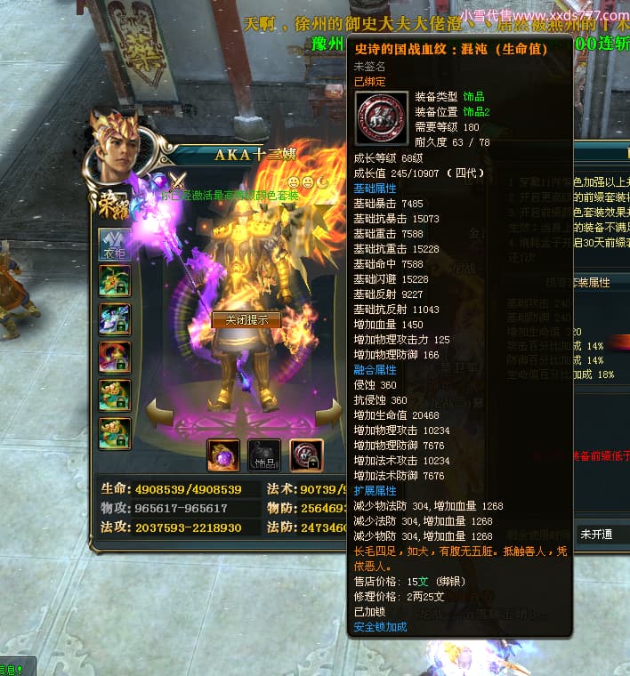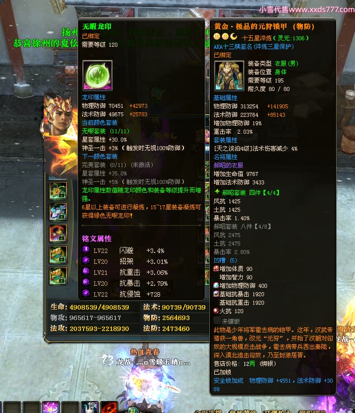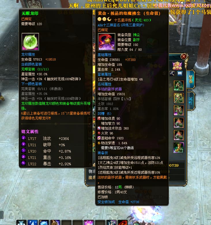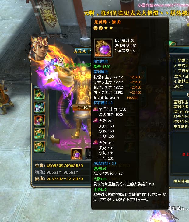 编号L24731 AKA十三姨 龙战王者 徐州 本国排名20名 4623战力 人物黄金加强橙15X(4件混沌) 马普通橙11X 人物绿龙印 马黄龙印 六等单双属性石头 已开完永久15星套