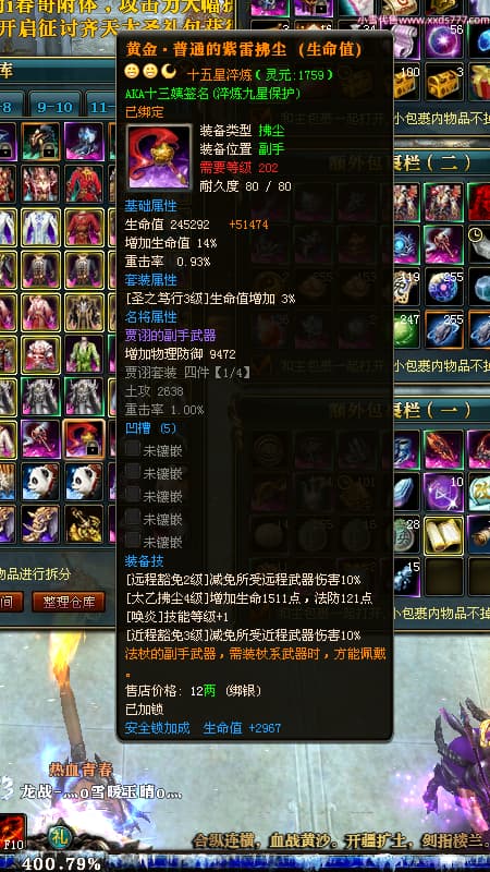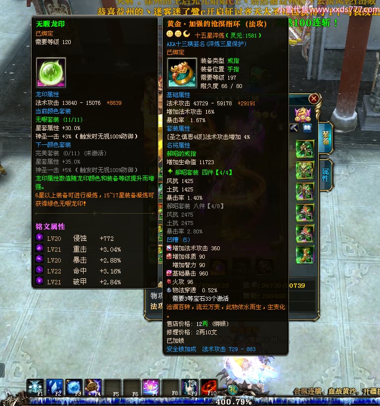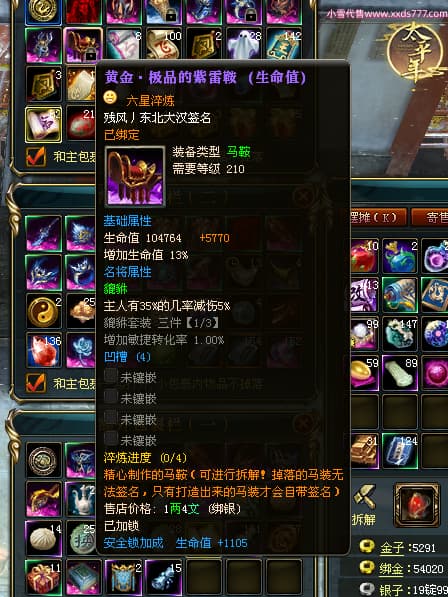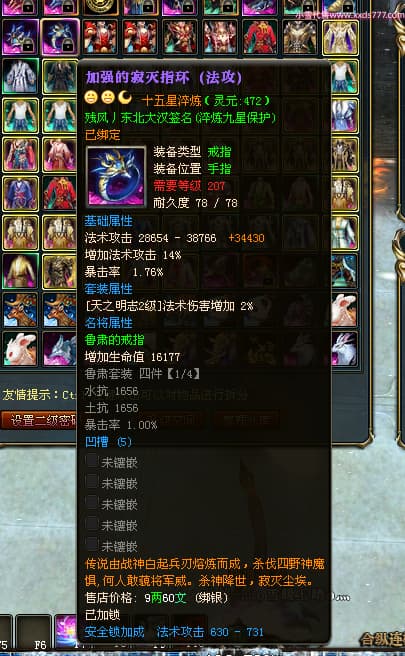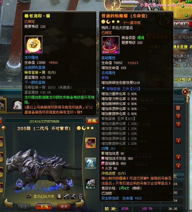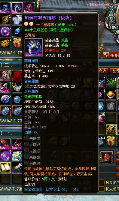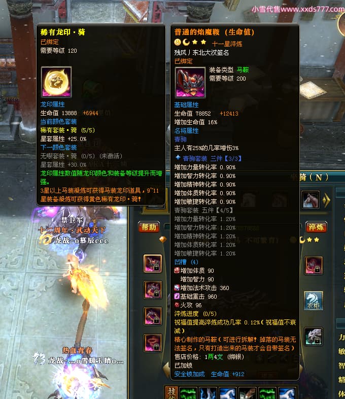编号L24731 AKA十三姨 龙战王者 徐州 本国排名20名 4623战力 人物黄金加强橙15X(4件混沌) 马普通橙11X 人物绿龙印 马黄龙印 六等单双属性石头 已开完永久15星套