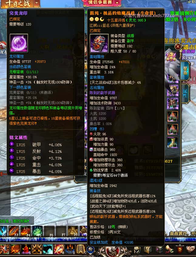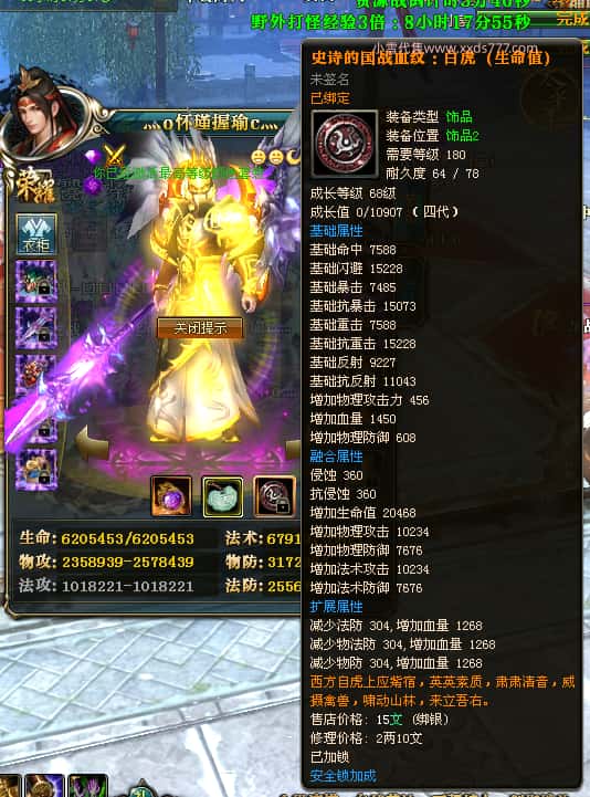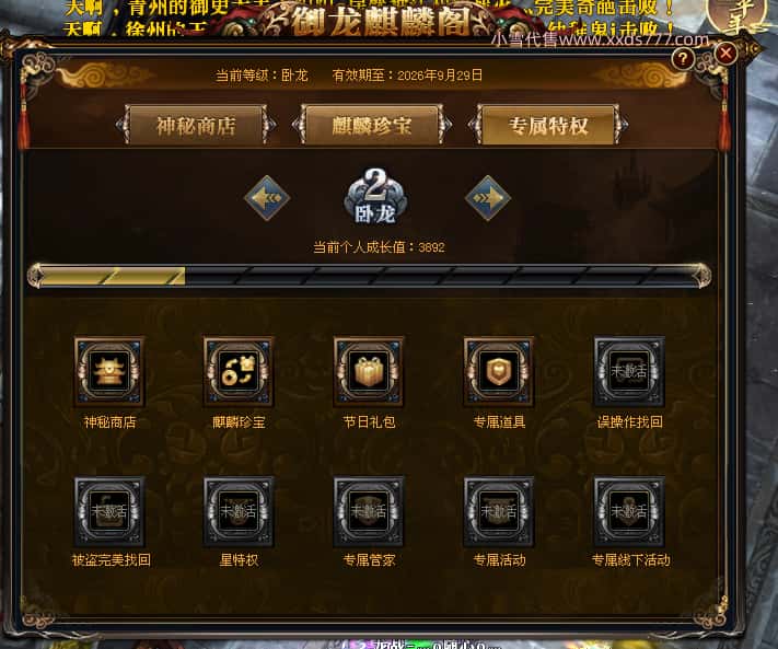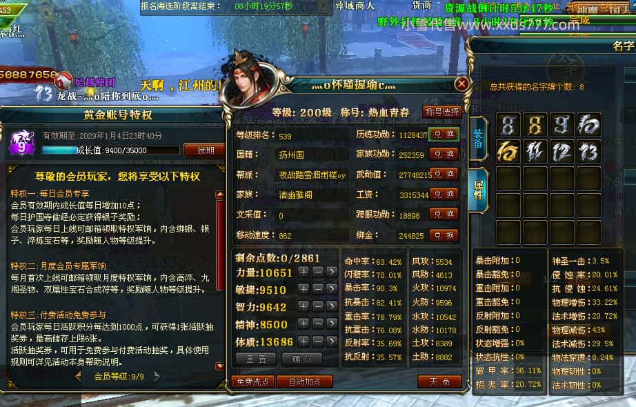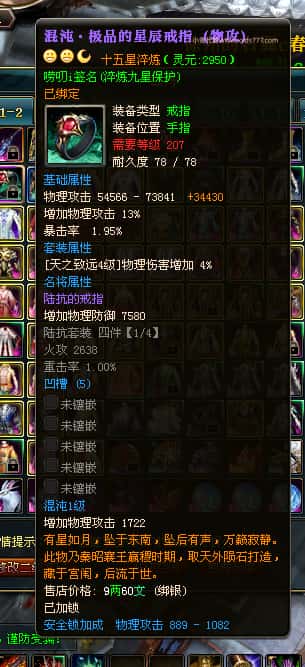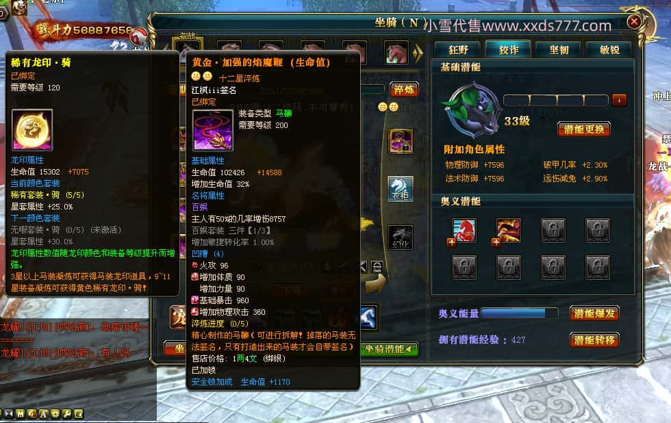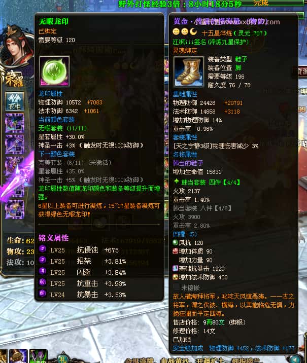 编号L24775 灬o怀瑾握瑜c灬 龙战王者 扬州 世界排名第77名 5688W战力 人物黄金极品橙15X(鞋子黄金普通橙) 马黄金加强橙12X 龙魂292级 人物8件紫+3件绿龙印 马黄龙印 6666等单双属性石头 已开完永久15星套