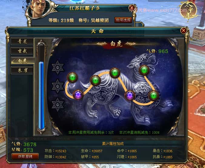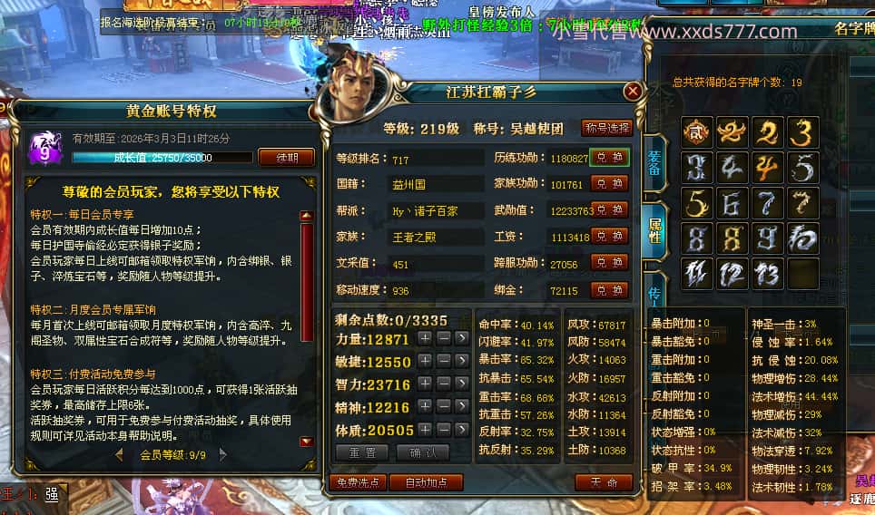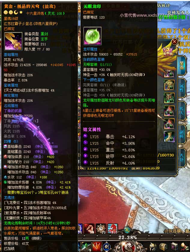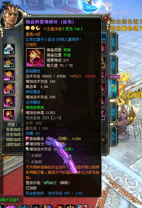 编号Z24779 江苏扛霸子彡 逐鹿天下 益州 本国排名第12名 20600W战力 人物黄金普通橙15X(8件混沌) 传人极品紫15X(8件黄金) 副将普通紫15X 马史诗紫12X(1件黄金) 极品紫15披风 人物星魂16级 传人13级 副将6级 马星魂16星 人物铭刻(项链/主手/副手/盔甲16级,剩下的15级) 点亮16星 马铭刻12级 点亮12星 人物绿龙印 马黄龙印 五六等单双属性神圣完美无瑕石头 紫绿黄孔