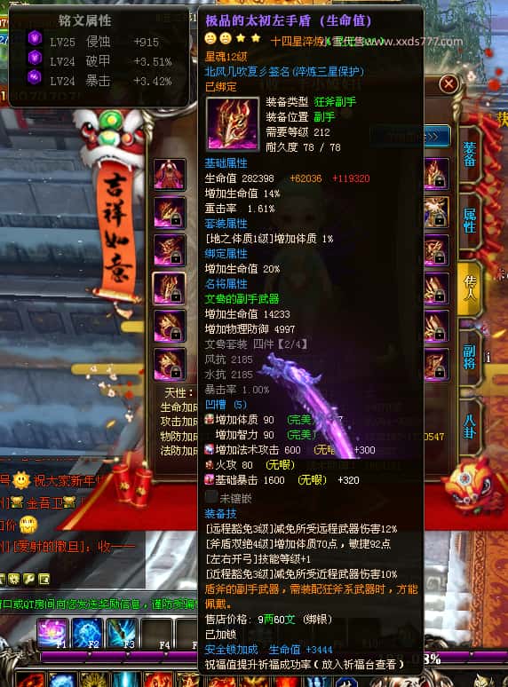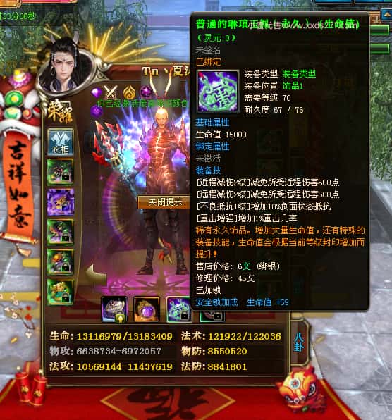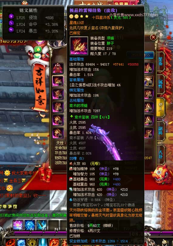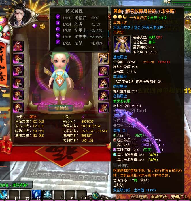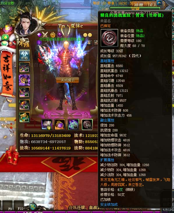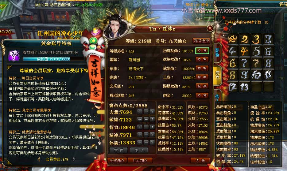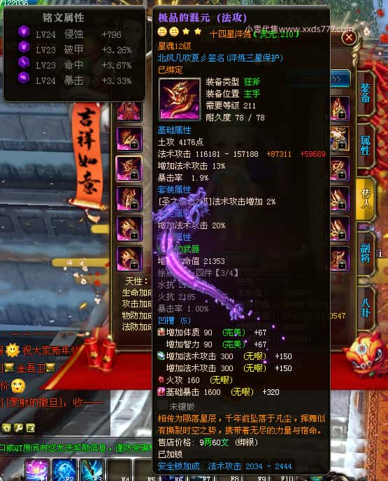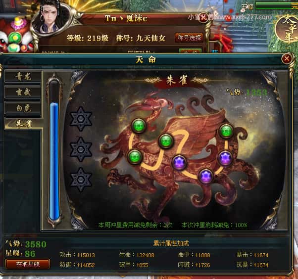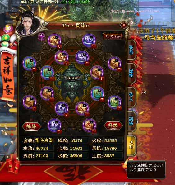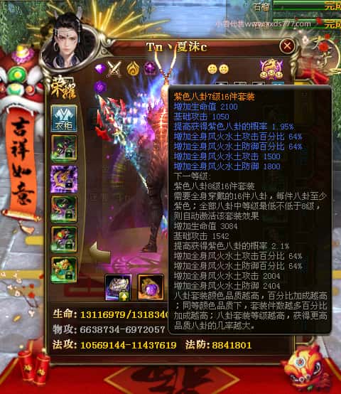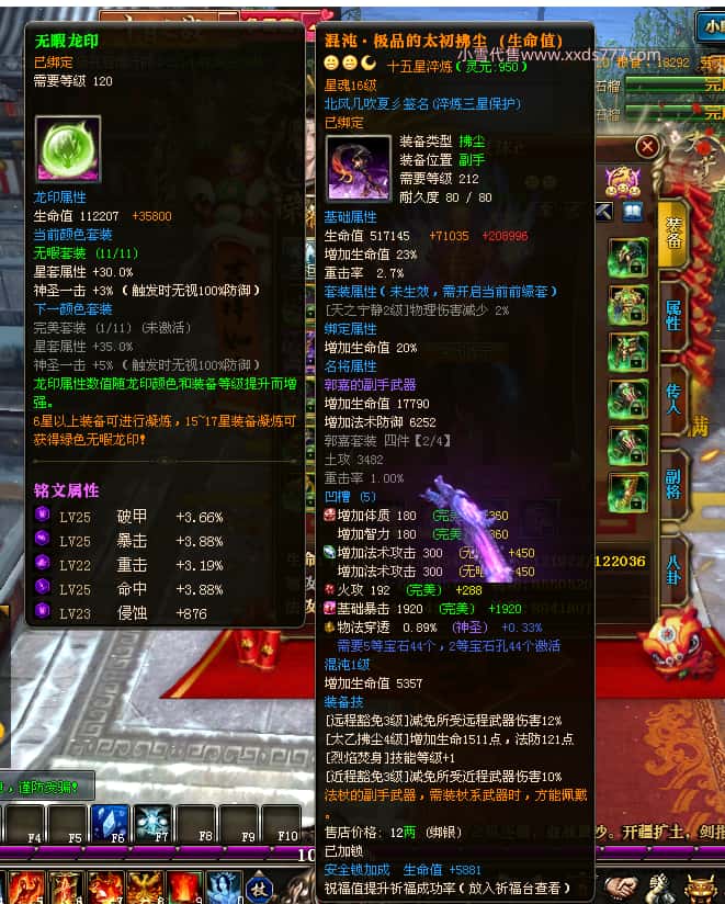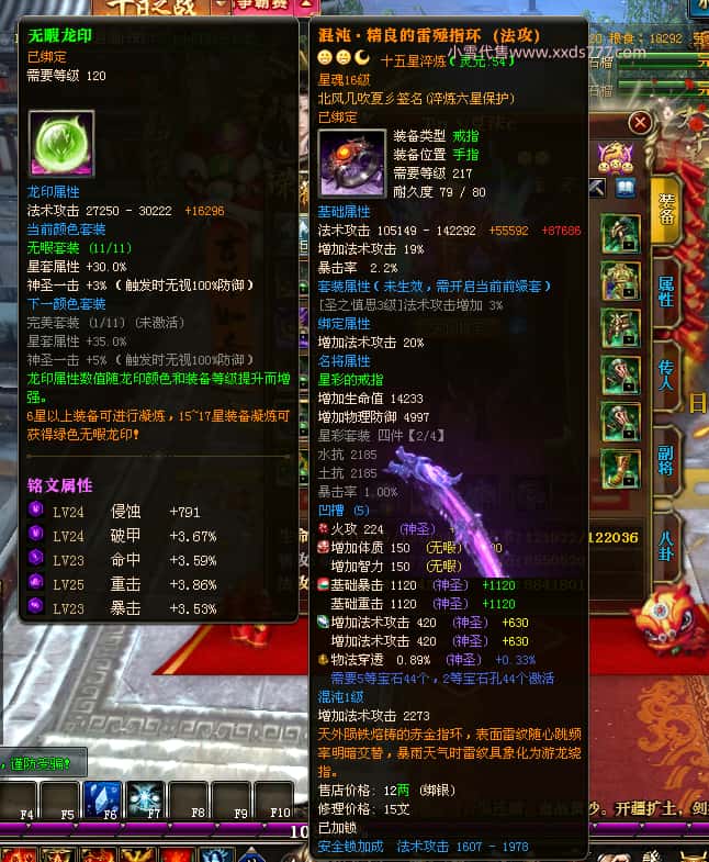 编号Z24786 Tn丶夏沫c 逐鹿天下 荆州 本国排名第27名 16073W战力 人物黄金普通橙15X(7件混沌) 传人精良紫12X 副将精良紫12X 马史诗紫12X 精良紫15X披风 人物星魂16级 传人11级 副将6级 马星魂11级 人物铭刻15级 点亮(主手/副手/盔甲16星,剩下的14星) 马铭刻12级 点亮12星 人物铭刻1件紫+10件绿龙印 马黄龙印 五六等单双属性神圣完美无瑕石头 绿黄孔