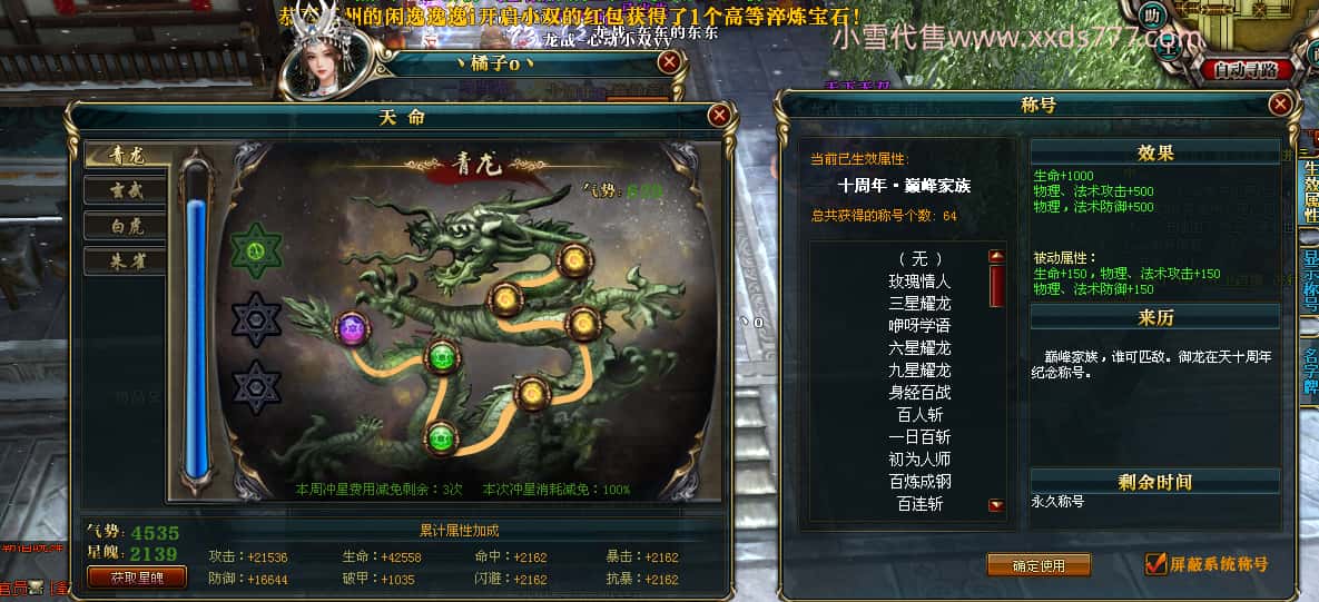 编号L24816 丶橘子o丶 龙战王者 幽州本国第72名 4684W战力 人物黄金普通紫15X 普通橙马10X 人物绿龙印 马黄龙 六等单双属性石头