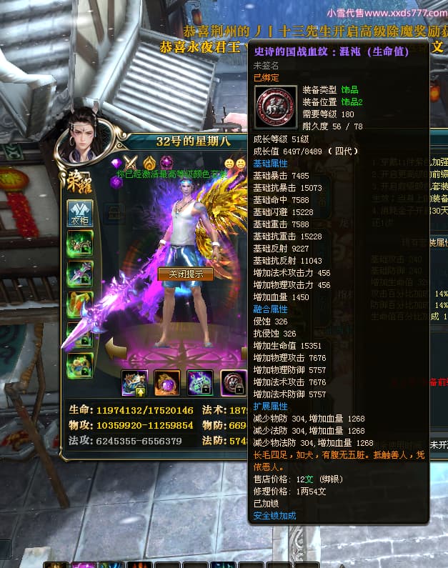 编号X24640 风月无边醉青衫 龙啸风云 荆州 本国排名60...¥4999