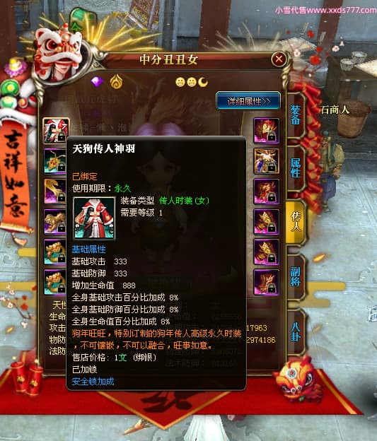 2:代挂账号截图里面的流通金,银子,道具等日常消耗会发生变化,均不作为账号详细参考,文字及截图可能会有误差,请老板以最终确认交易前为准(补充:除了游戏角色能转移的外 账號都有可能被找回风险 我们只担保交易换绑流程跟交易资金 不担保100%不会找回 我们会尽量避免找回并协助买家后期处理)支持买家购买找回包赔服务