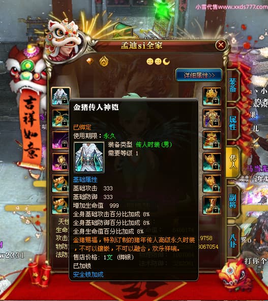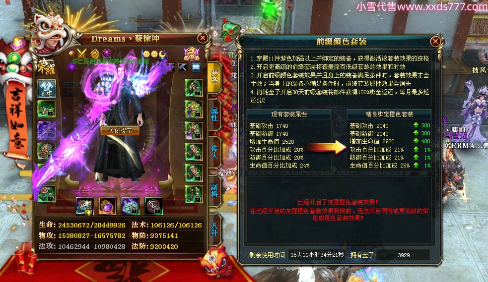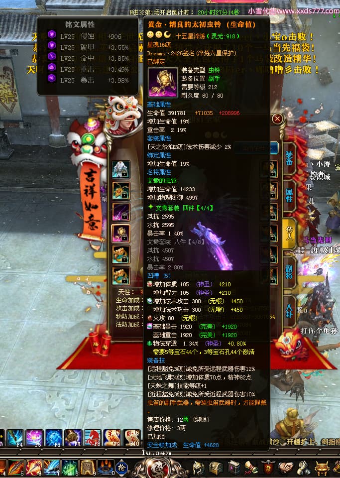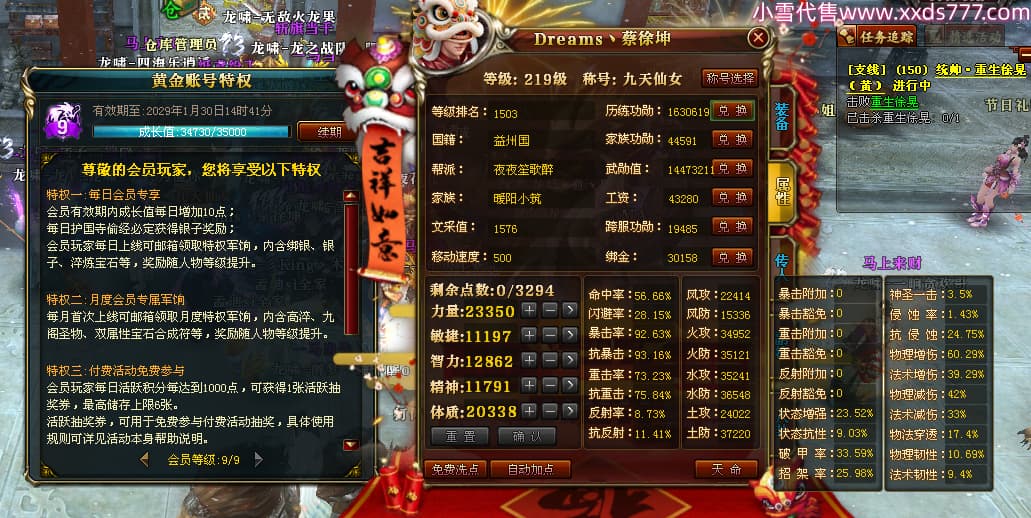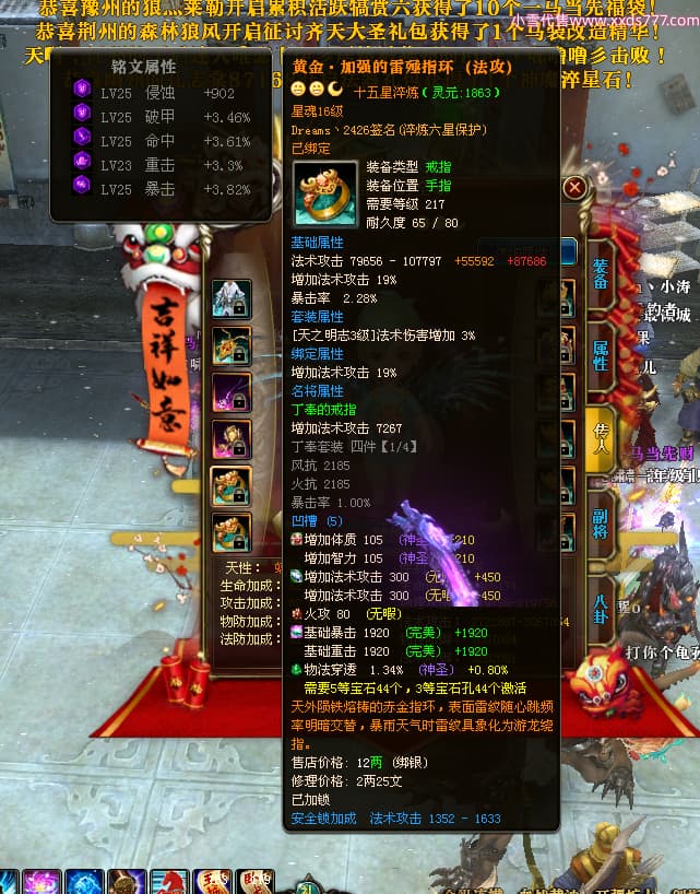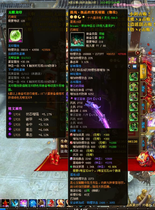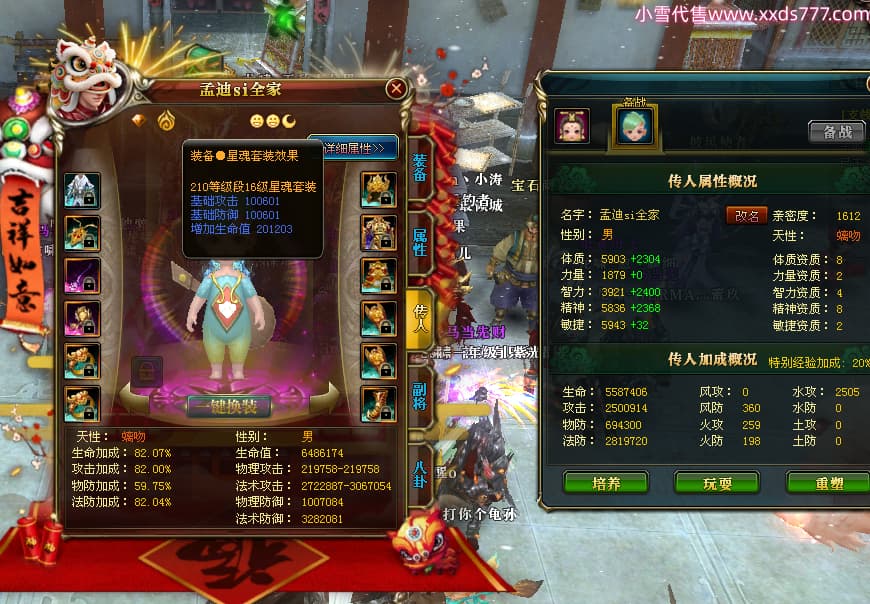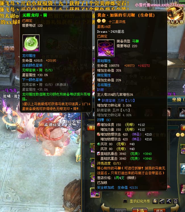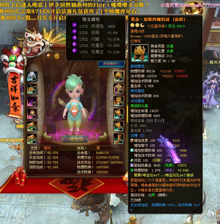 编号X24852 Dreams丶蔡徐坤 龙啸风云 益州 世界排名56名 26899W战力 人物黄金精良橙16X(1件17X9件混沌) 传人黄金普通橙15X 副将史诗紫15X 马黄金加强橙12X 极品紫16披风 人物星魂16级 传人星魂16级 副将星魂9级 马星魂16级 人物铭刻1件17级7件16级其余15级 人物点亮16星 马铭刻12级 点亮12星 人物绿龙印(1件紫龙印) 马绿龙印 六等单双属性神圣完美优秀石头 黄绿孔