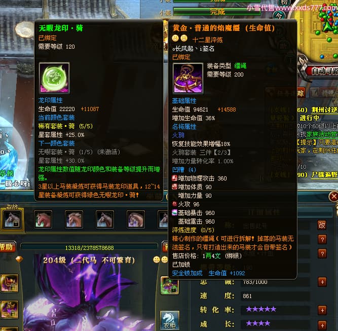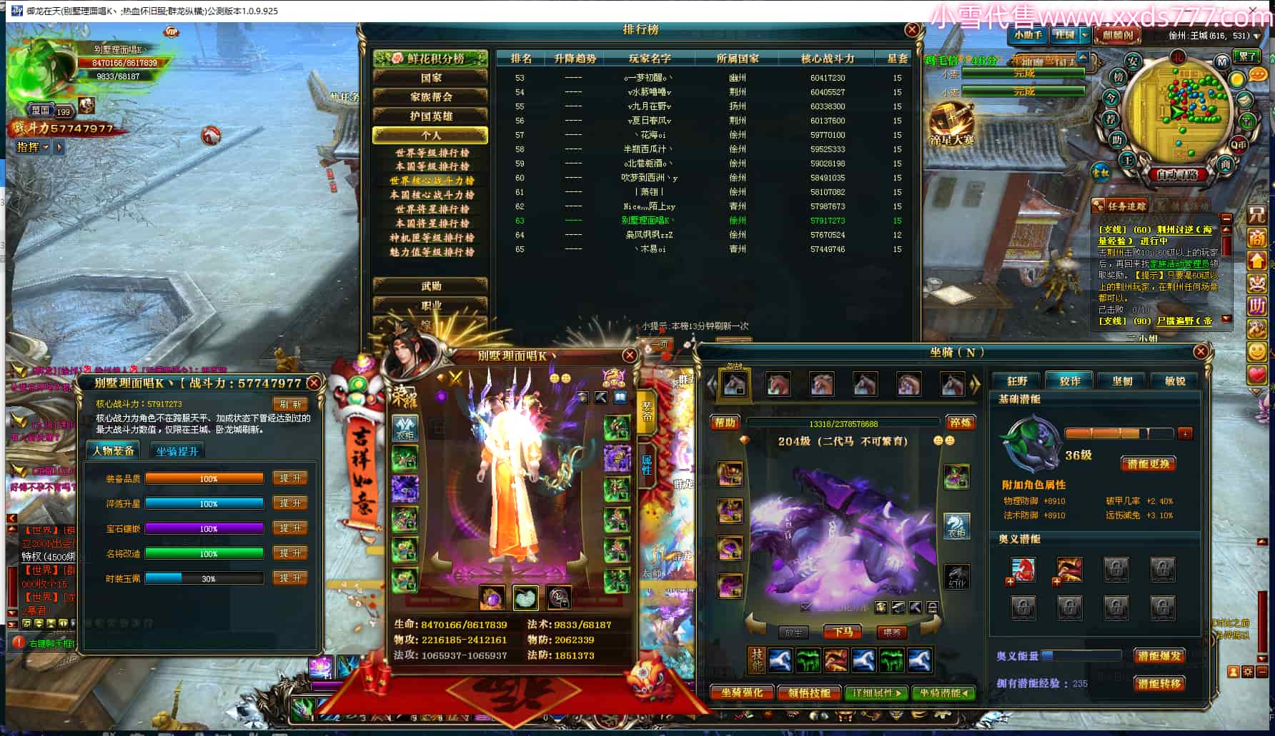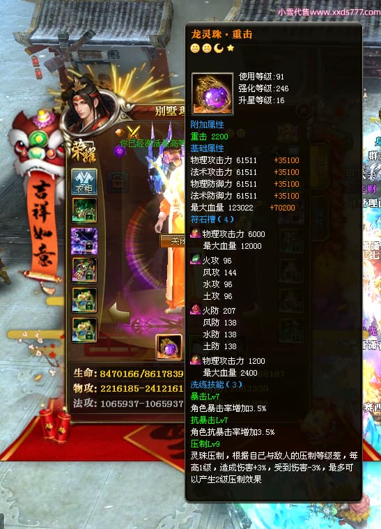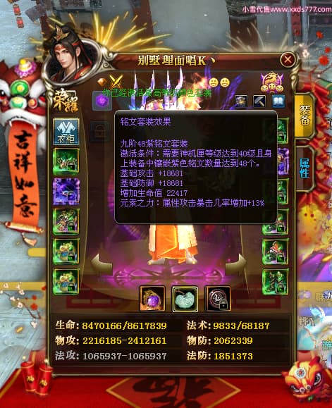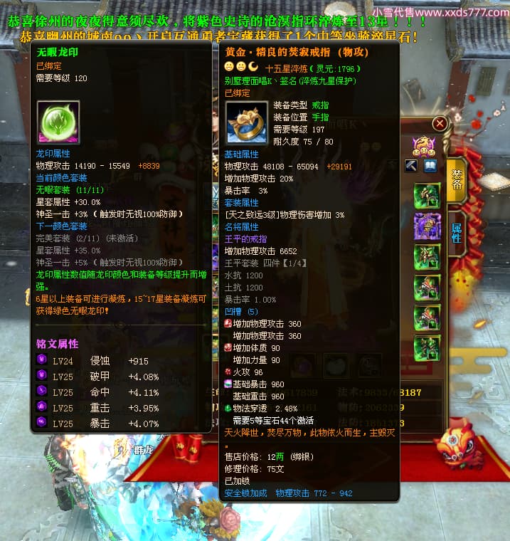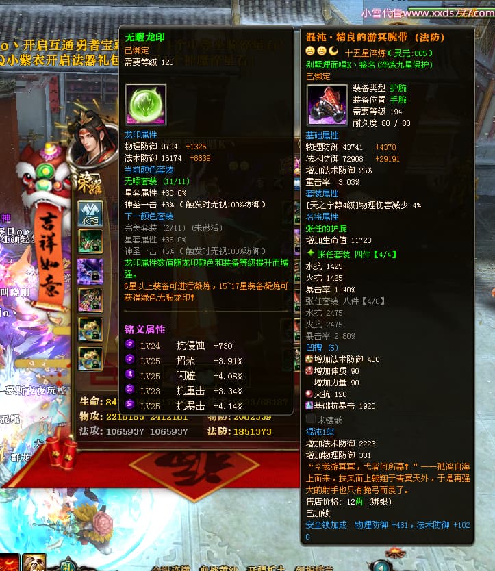 编号Q24856 别墅理面唱K丶 群龙纵横 徐州 世界排名63名 5774W战力 人物黄金加强橙12X(1件18X7件15X7件混沌) 马黄金普通橙12X 人物绿龙印(2件紫龙印) 马黄龙印 六等单双属性石头 已开完永久15星套 可以转移百分百安全