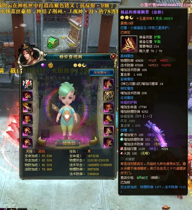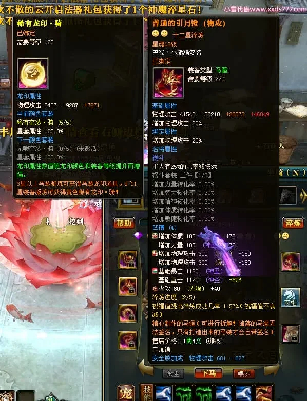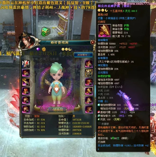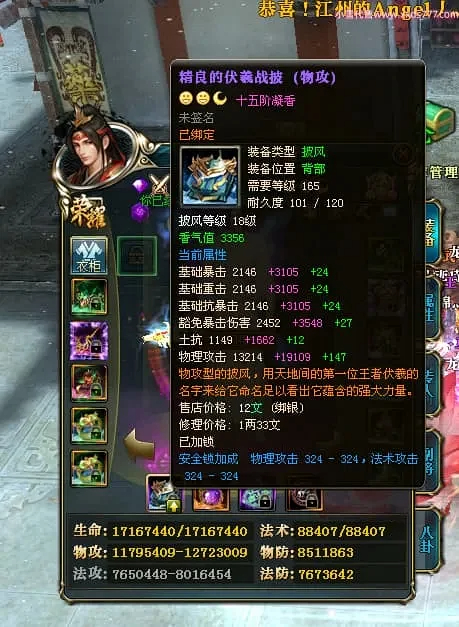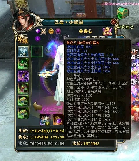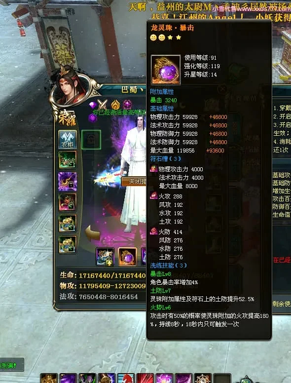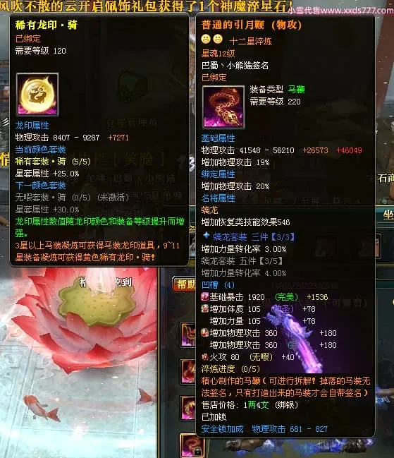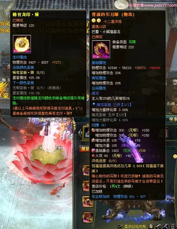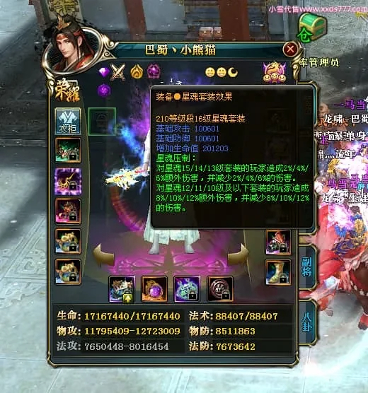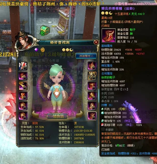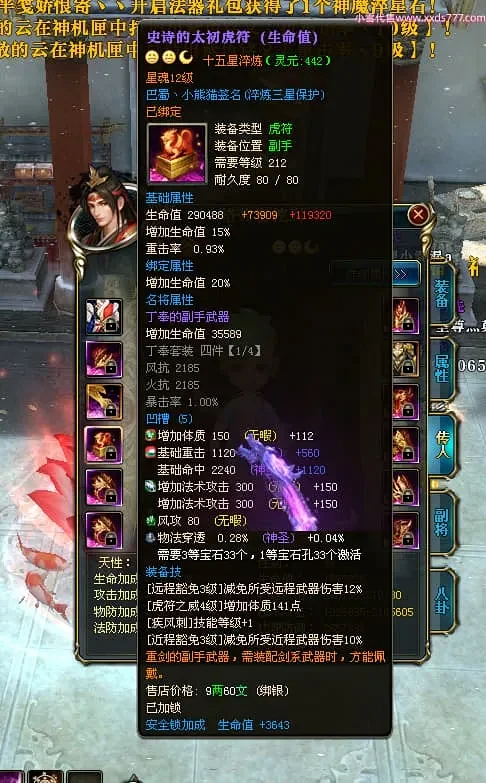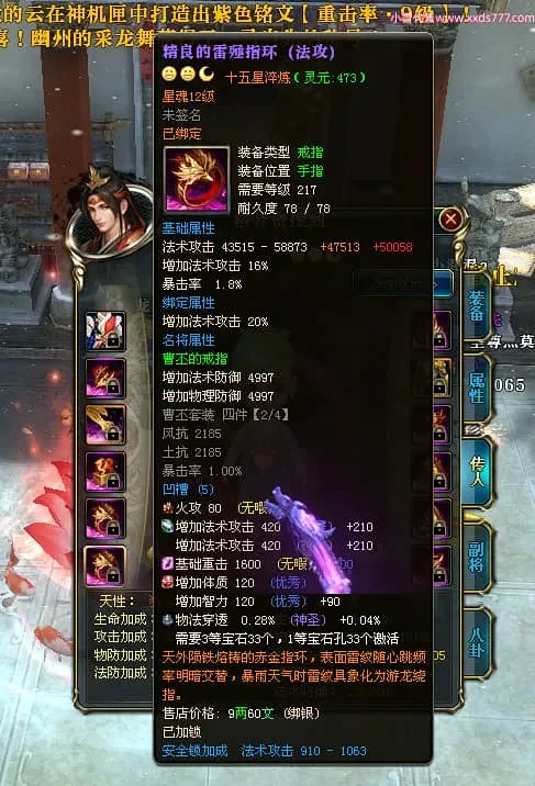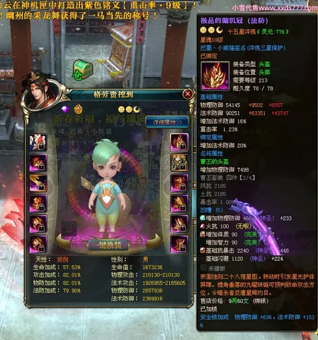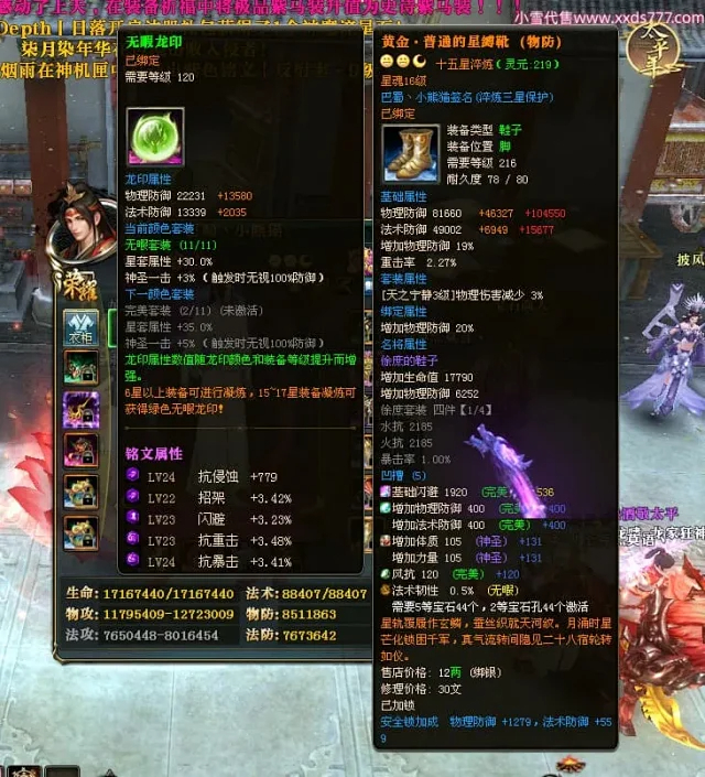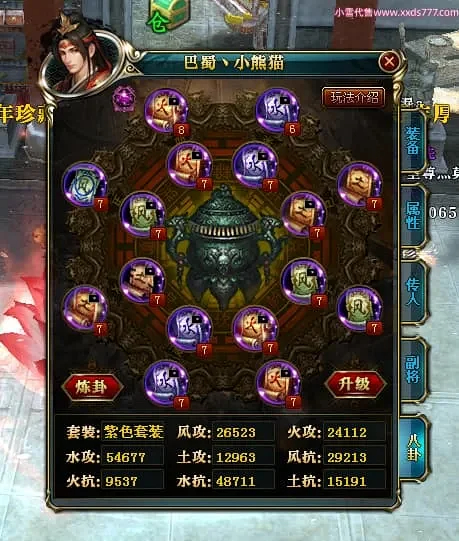 编号X24697 巴蜀丶小熊猫 龙啸风云 江州 本国排名39名 18055W战力 人物黄金普通橙15X(5件混沌) 传人精良紫15X 副将精良紫12X 马普通橙12X 精良紫15披风 人物星魂16级 传人星魂10级 副将星魂6级 马星魂12级 人物铭刻15级 人物点亮16星 马铭刻4件14级其余12级 点亮12星 人绿龙印(2件紫龙印) 马黄龙印 五六等单双属性神圣完美优秀石头 黄蓝孔 已开5次永久15星套