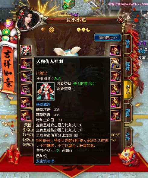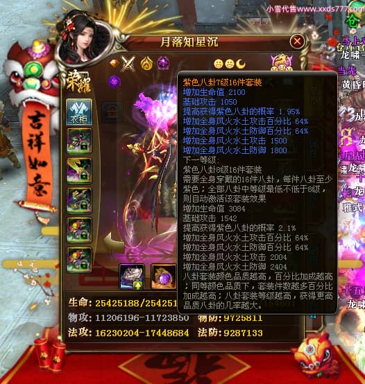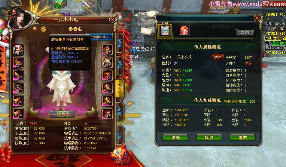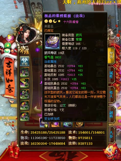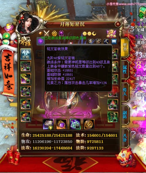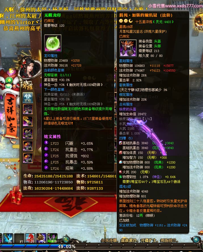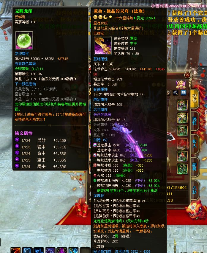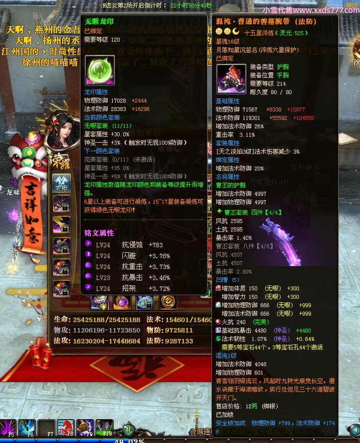 编号X24871 月落知星沉 龙啸风云 扬州 世界排名57名 26702W战力 人物黄金普通橙15X(9件混沌) 传人普通橙15X 副将史诗紫15X 马加强橙13X 极品紫16披风 人物星魂16级 传人星魂16级 副将星魂6级 马星魂16级 人物铭刻1件16级其余15级 点亮16星 马铭刻2件15级其余14级 点亮14星 人物绿龙印 马黄龙印 六等单双属性神圣完美无暇石头 黄绿孔 已开完永久15星套 已开完永久18星套