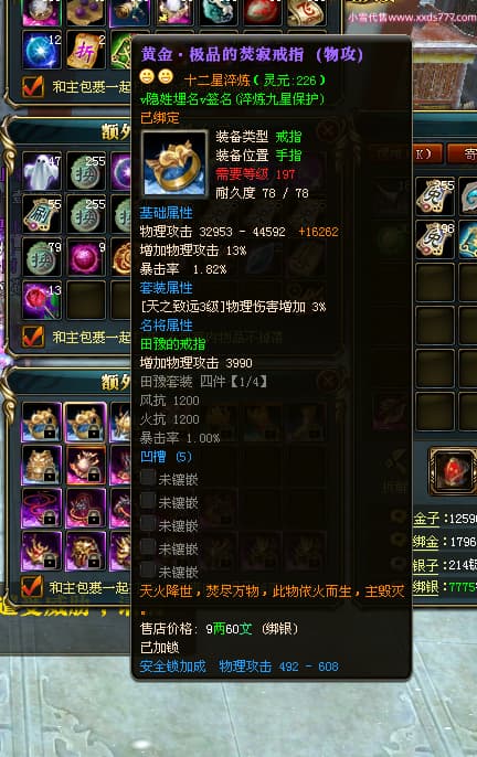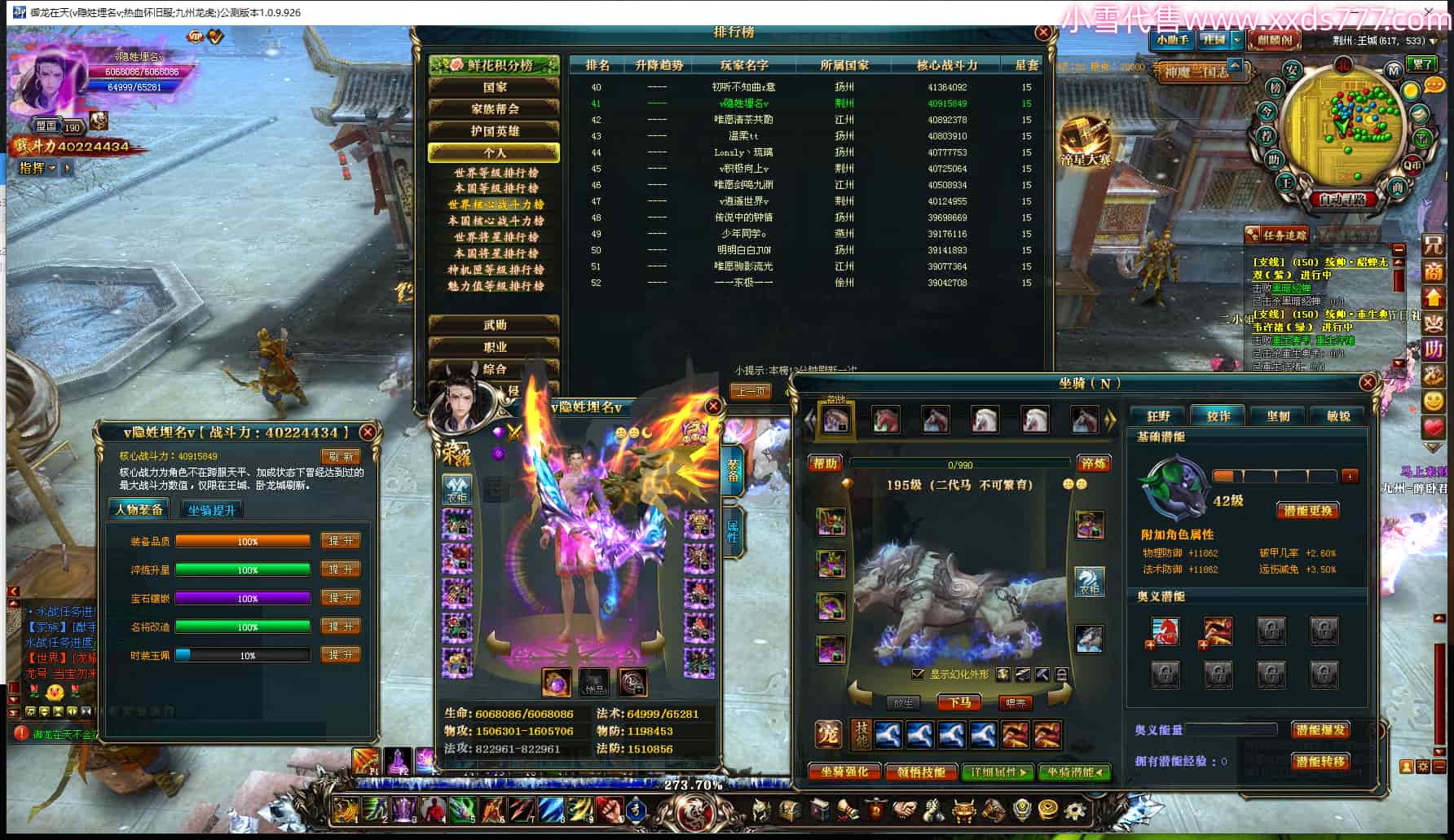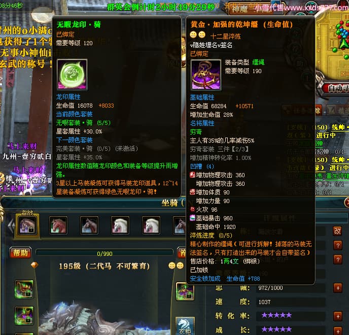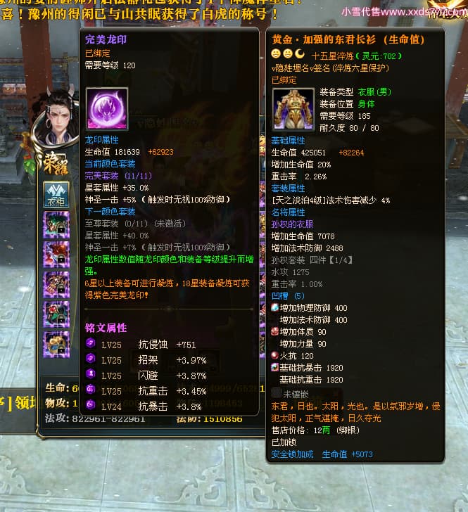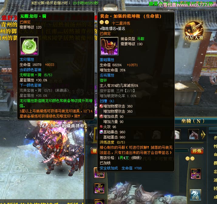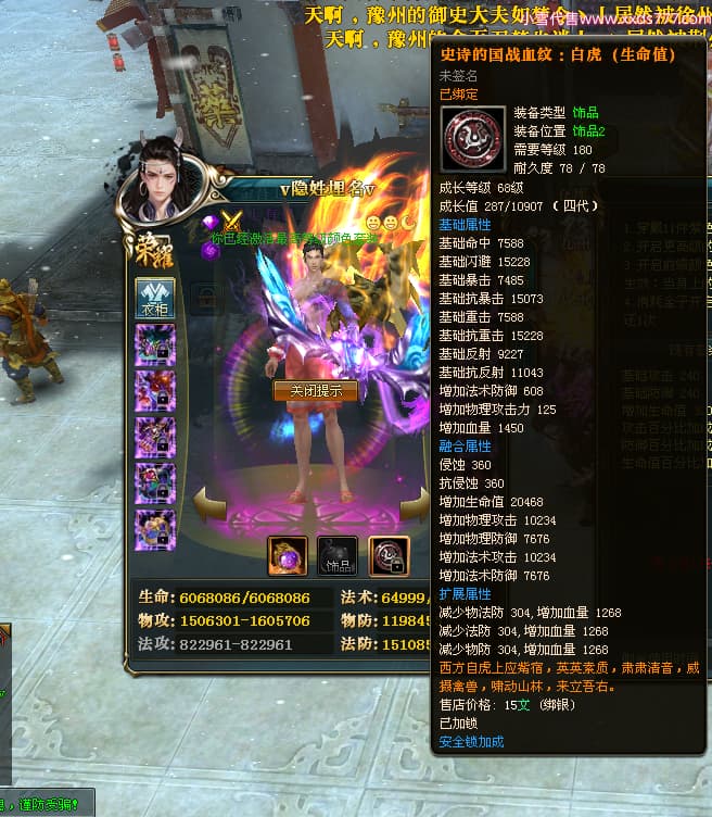 编号J24886 v隐姓埋名v 九州龙虎 荆州 世界排名41名 4022W战力 人物黄金极品橙15X(8件混沌) 马黄金加强橙12X 人物紫龙印 马绿龙印 六等单双属性石头 已开完永久15星套 可以转移百分百安全