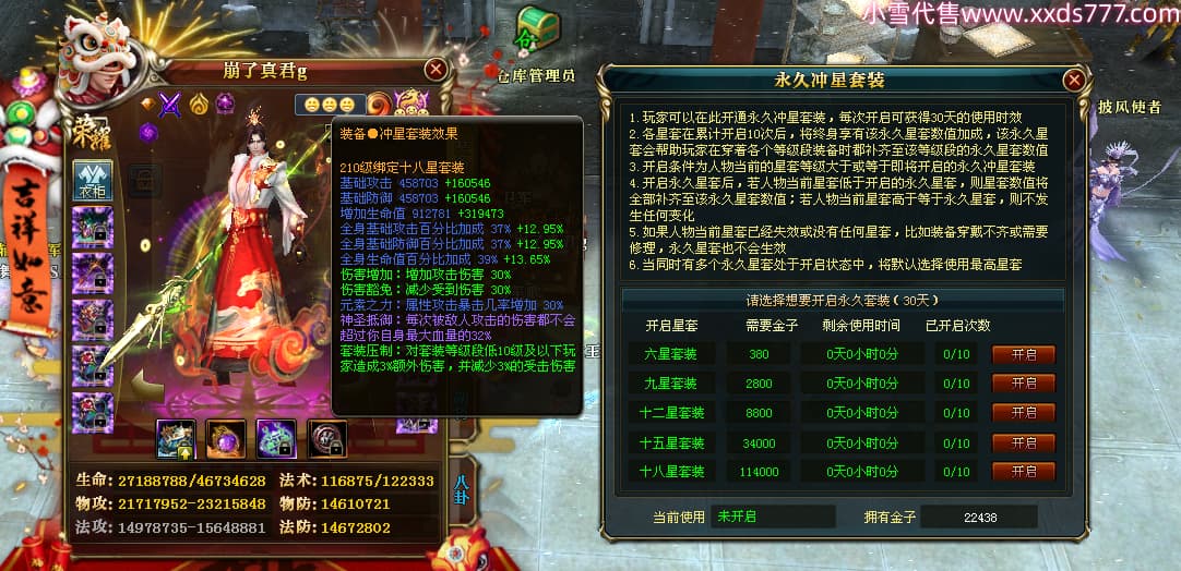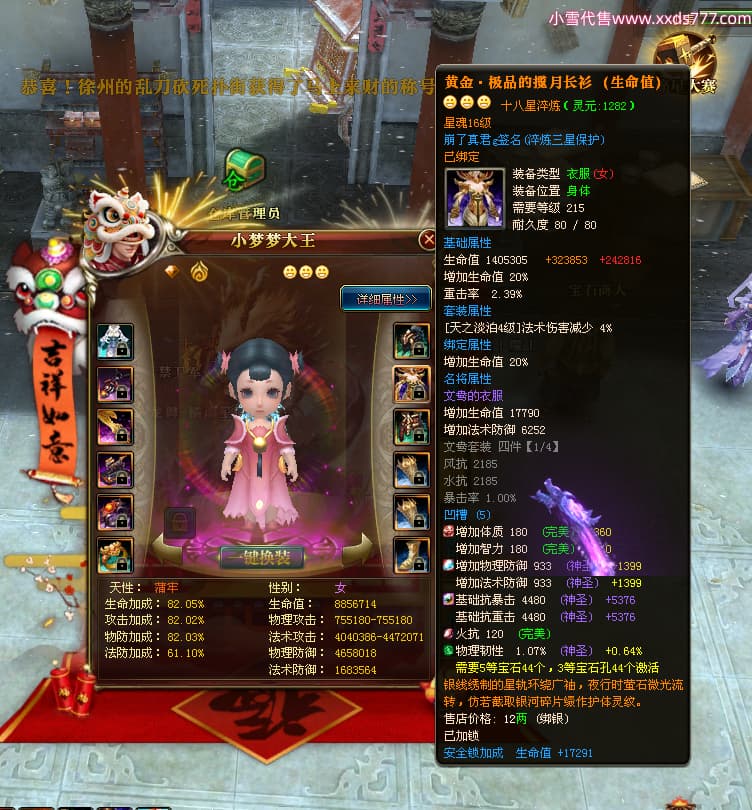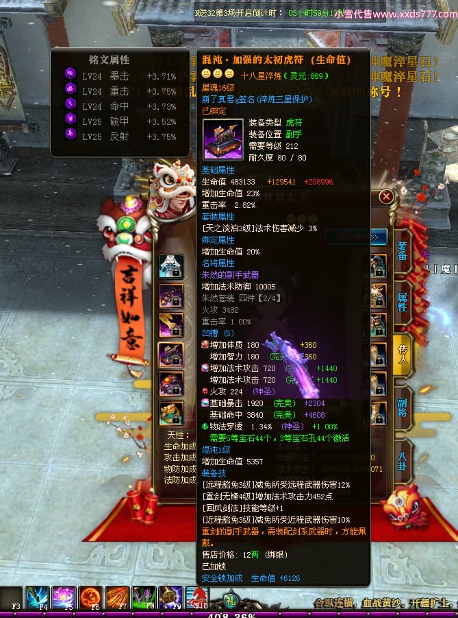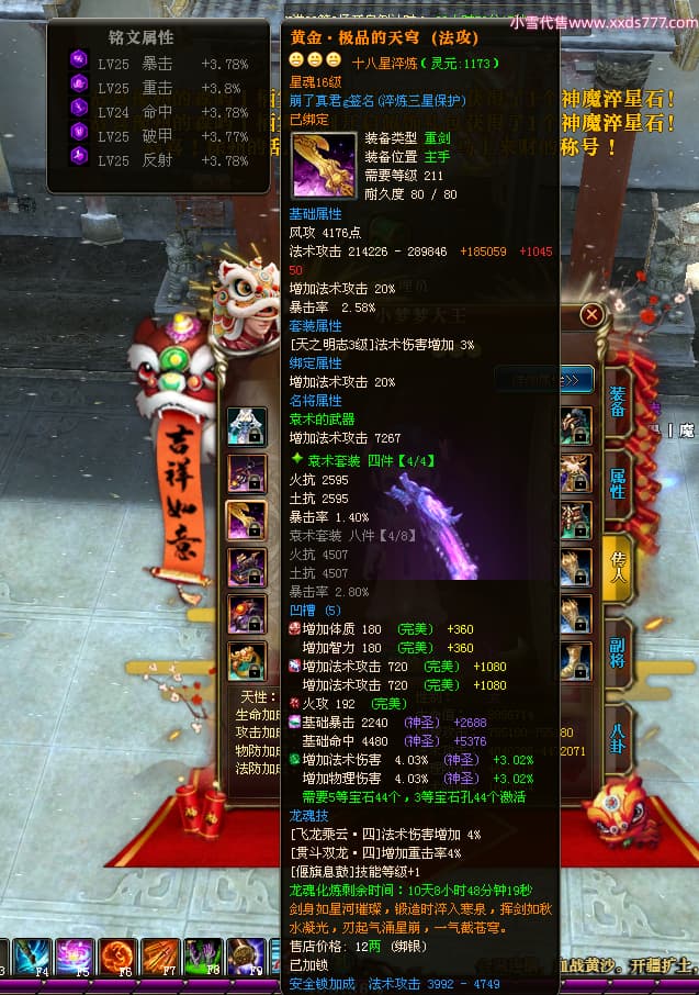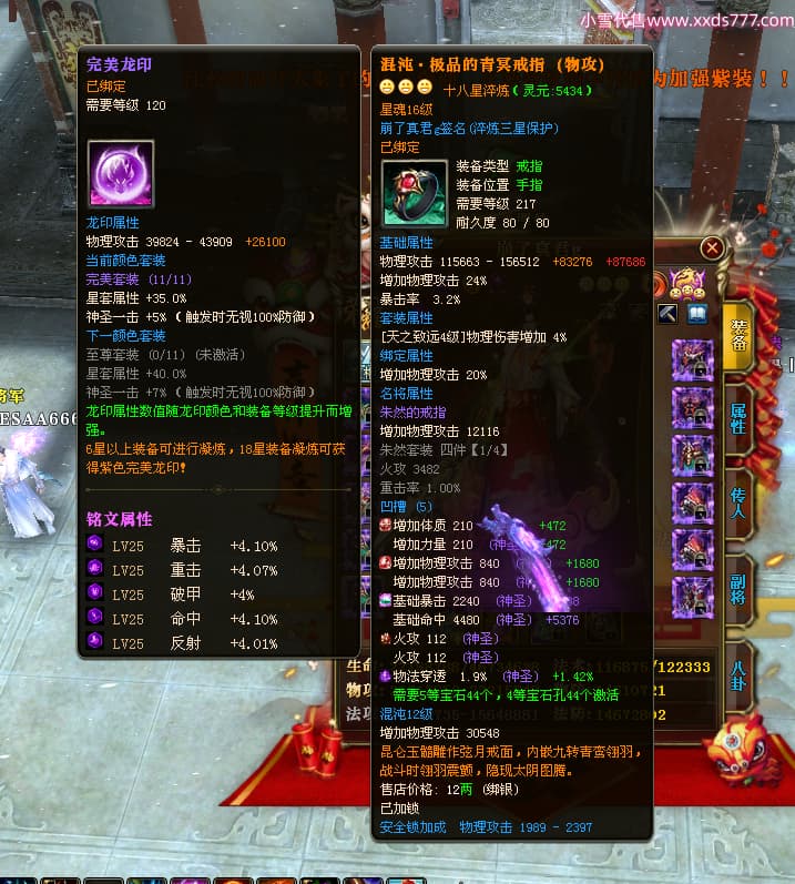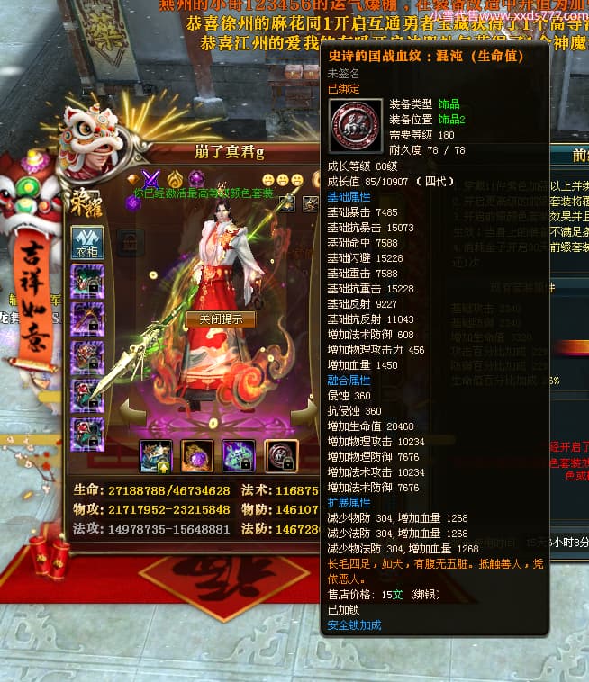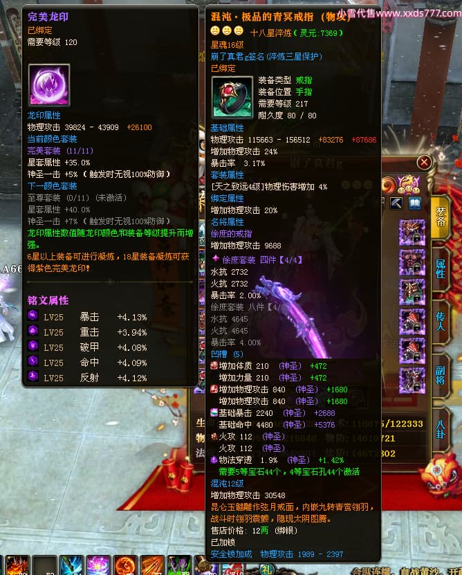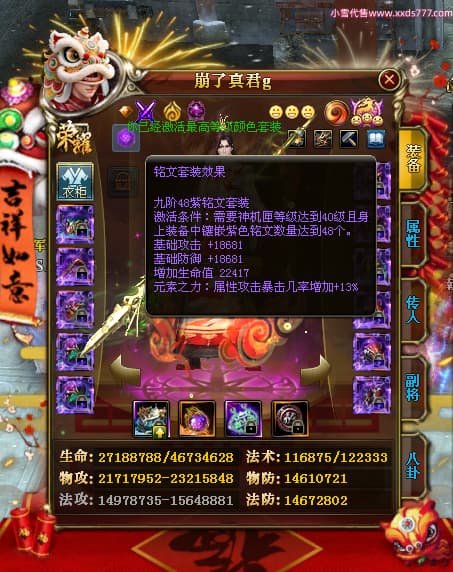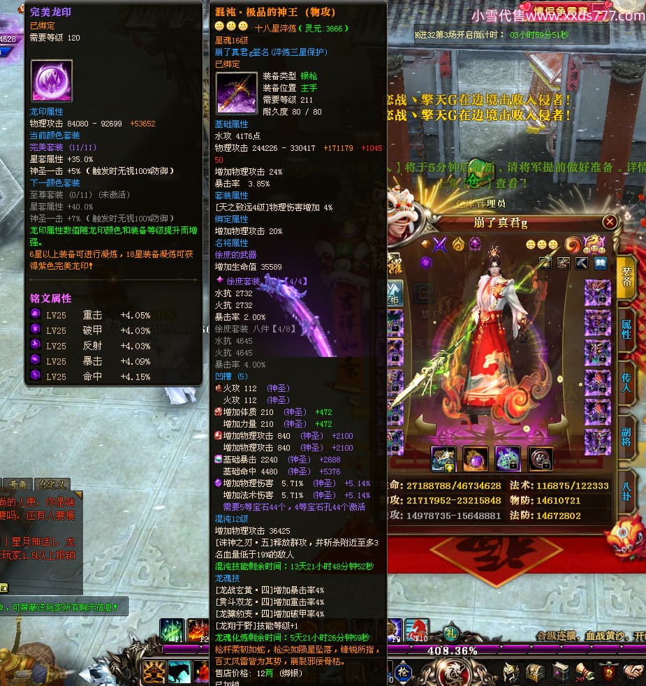 编号W24898 崩了真君g 龙舞九州 益州 世界排名9名 44166W战力 人物混沌极品橙18X 传人黄金普通橙18X(5件混沌) 副将黄金极品橙18X 马混沌极品橙14X(双潜能57级56级) 史诗紫16披风 人物星魂16级 传人星魂16级 副将星魂16级 马星魂16级 人物铭刻18级 点亮18星 马铭刻1件18级其余15级 点亮14星 人物紫龙印 马绿龙印 六等单双属性神圣石头 绿紫孔
