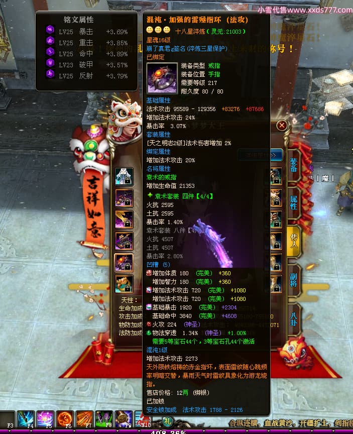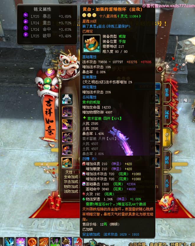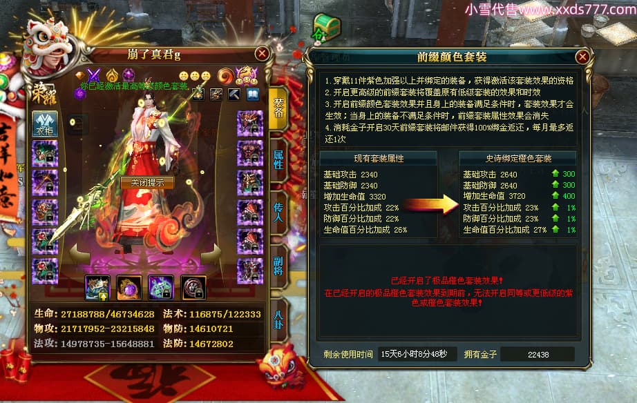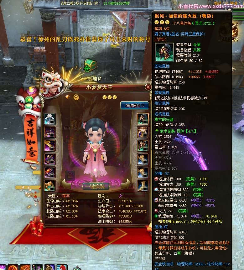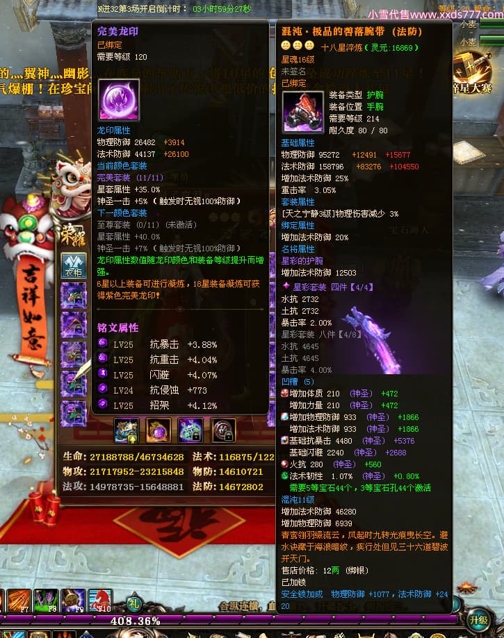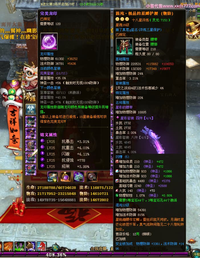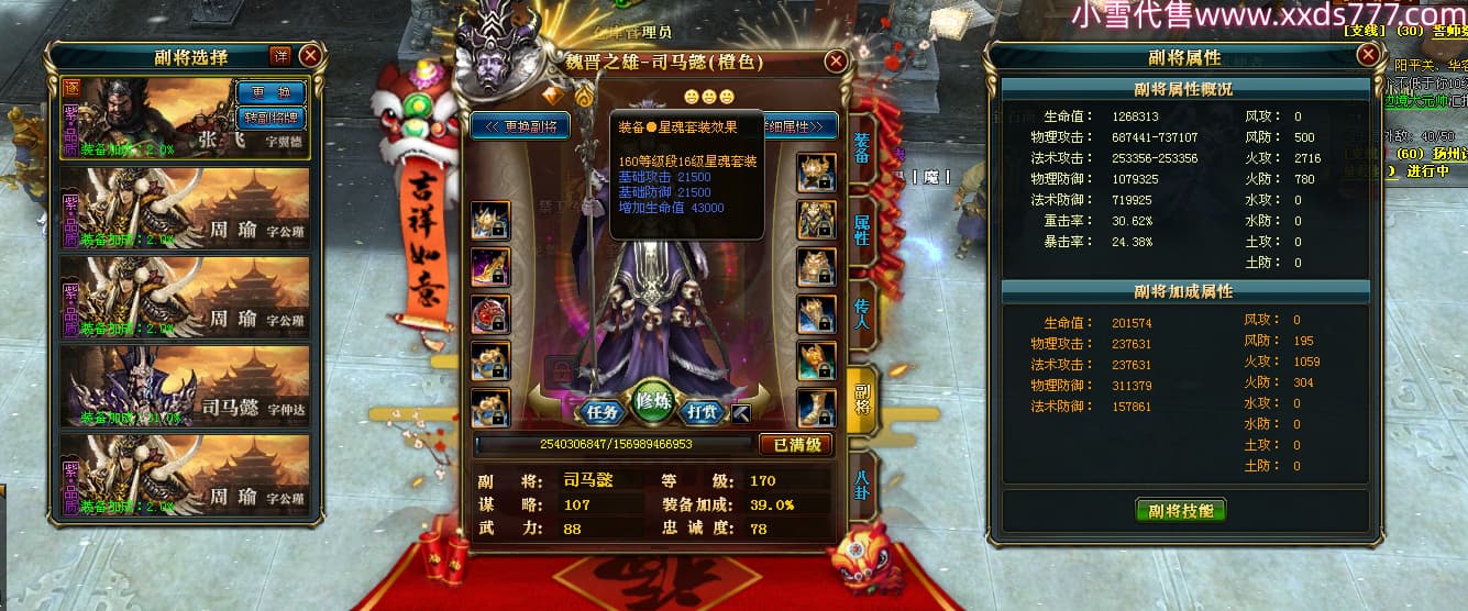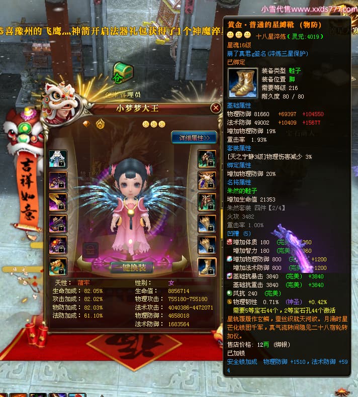 编号W24898 崩了真君g 龙舞九州 益州 世界排名9名 44166W战力 人物混沌极品橙18X 传人黄金普通橙18X(5件混沌) 副将黄金极品橙18X 马混沌极品橙14X(双潜能57级56级) 史诗紫16披风 人物星魂16级 传人星魂16级 副将星魂16级 马星魂16级 人物铭刻18级 点亮18星 马铭刻1件18级其余15级 点亮14星 人物紫龙印 马绿龙印 六等单双属性神圣石头 绿紫孔