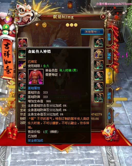 2:代挂账号截图里面的流通金,银子,道具等日常消耗会发生变化,均不作为账号详细参考,文字及截图可能会有误差,请老板以最终确认交易前为准(补充:除了游戏角色能转移的外 账號都有可能被找回风险 我们只担保交易换绑流程跟交易资金 不担保100%不会找回 我们会尽量避免找回并协助买家后期处理)支持买家购买找回包赔服务