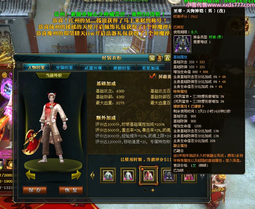 编号X24511 风软星眠i 龙啸风云 江州 本国排名20名 ...¥25000