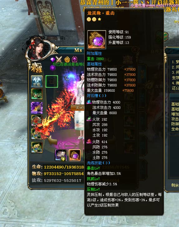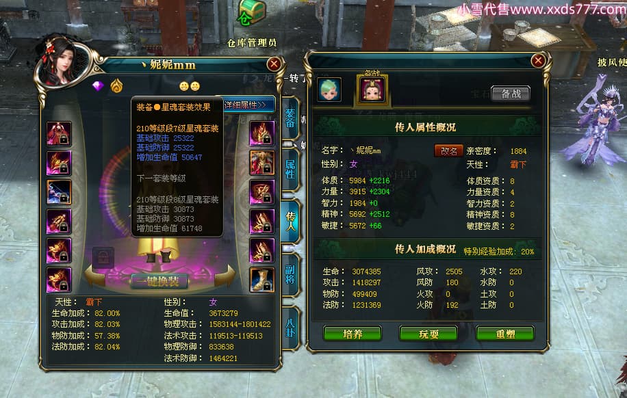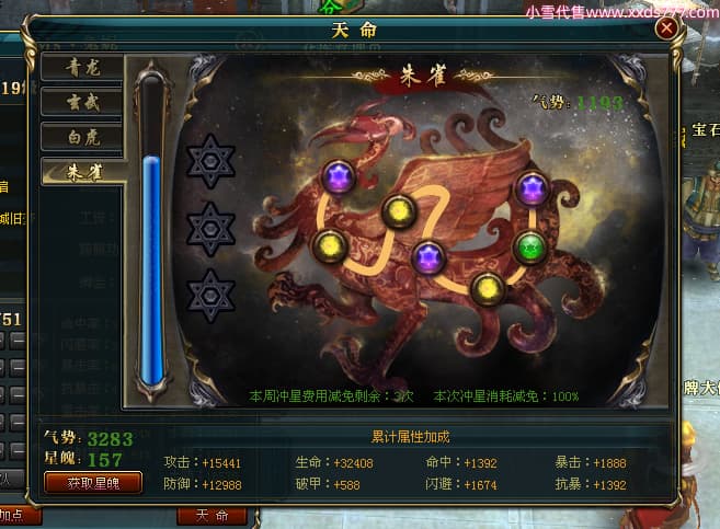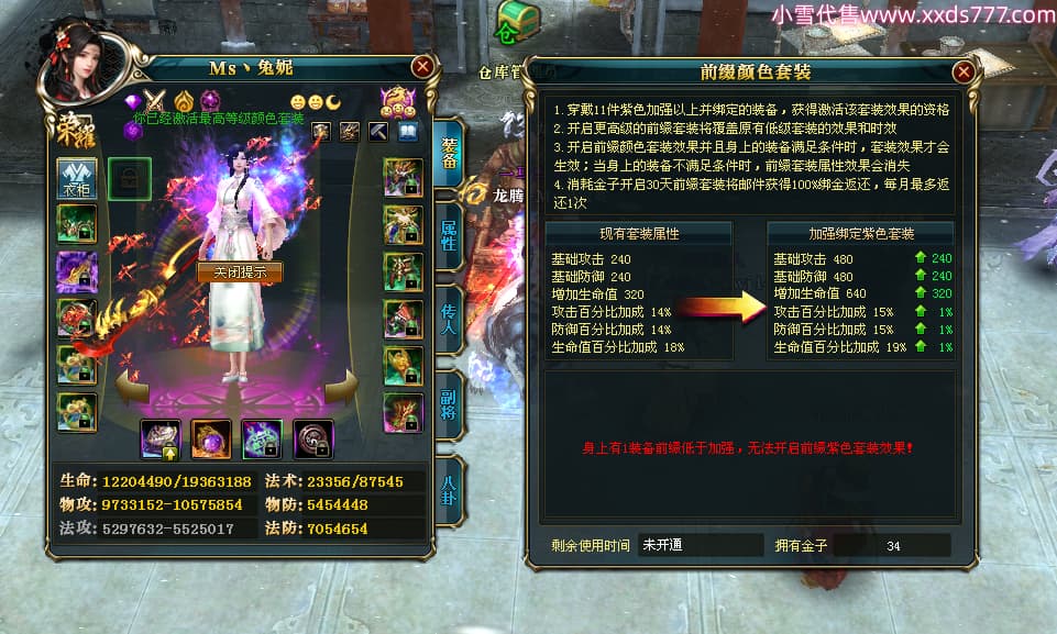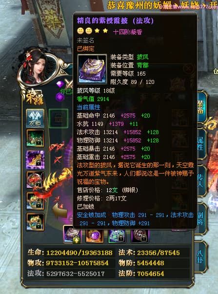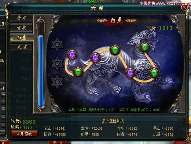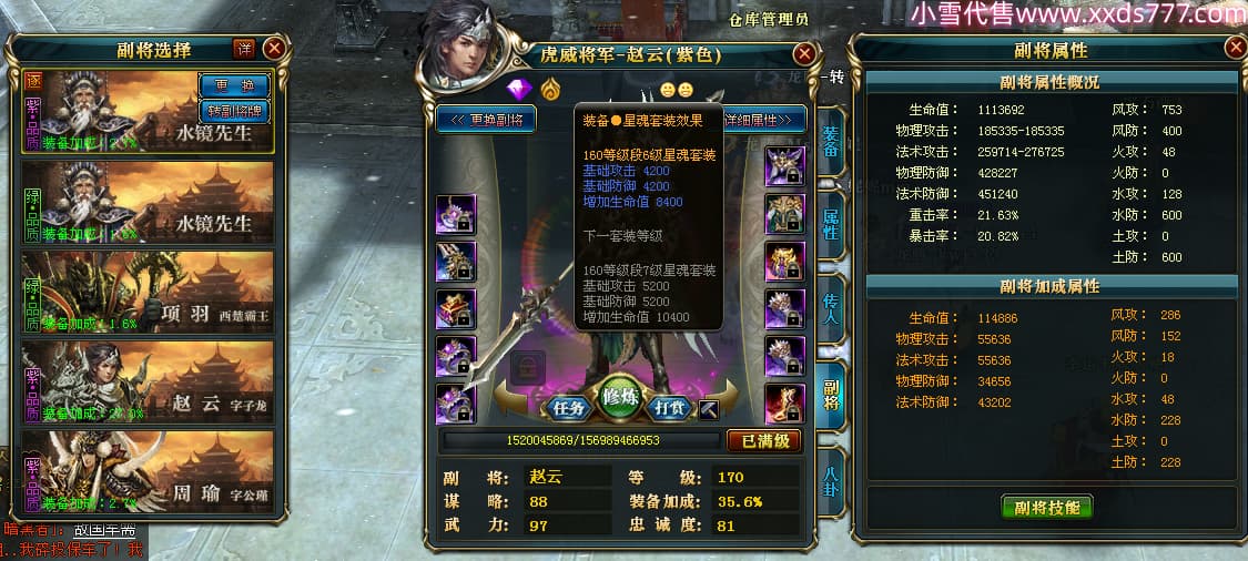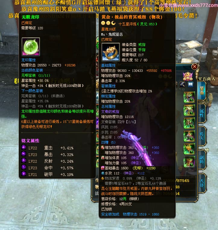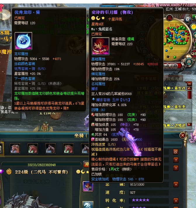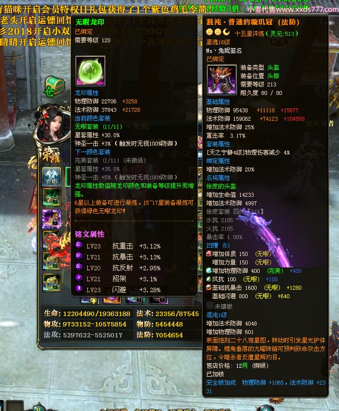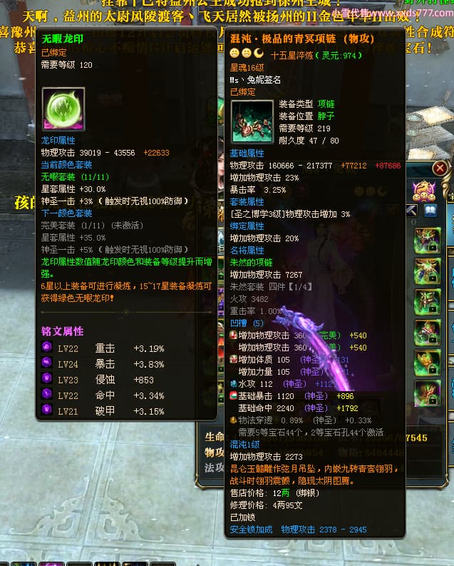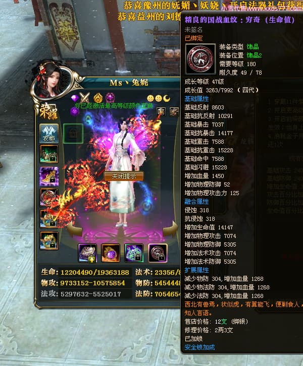 编号T24920 Ms丶兔妮 龙腾问鼎 江州 本国排名46名 14965W战力 人物黄金普通橙15X(5件混沌) 传人史诗紫12X 副将精良紫12X 马史诗紫10X 精良紫14披风 人物星魂16级 传人星魂7级 副将星魂6级 马星魂8级 人物铭刻15级 点亮4件16星其余14星 马铭刻3件13级其余12级 点亮12星 人物绿龙印(1件紫龙印) 马蓝龙印(1件黄龙印) 六等单双属性完美神圣石头 黄蓝孔