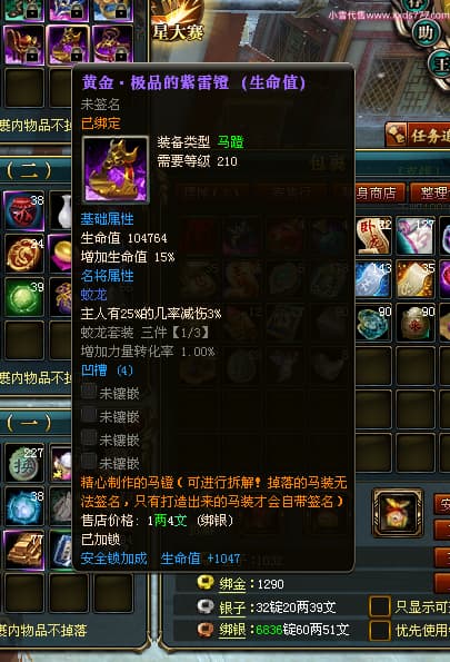 2:代挂账号截图里面的流通金,银子,道具等日常消耗会发生变化,均不作为账号详细参考,文字及截图可能会有误差,请老板以最终确认交易前为准(补充:除了游戏角色能转移的外 账號都有可能被找回风险 我们只担保交易换绑流程跟交易资金 不担保100%不会找回 我们会尽量避免找回并协助买家后期处理)支持买家购买找回包赔服务