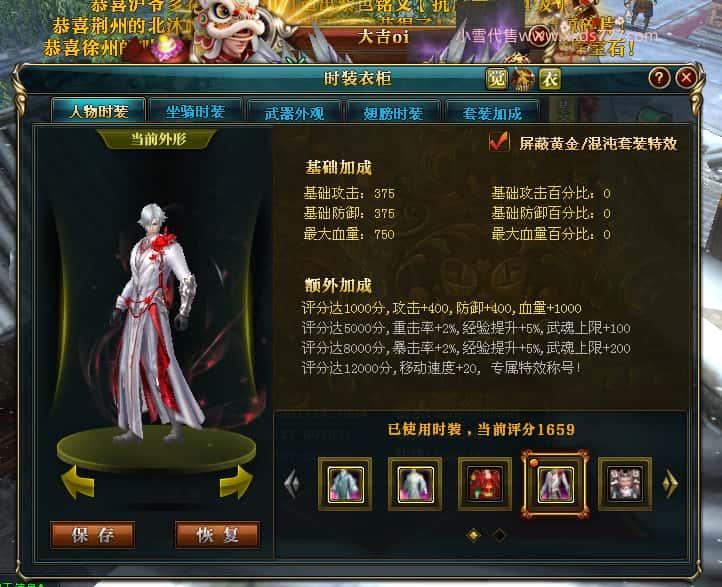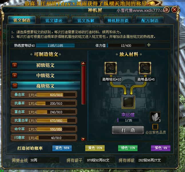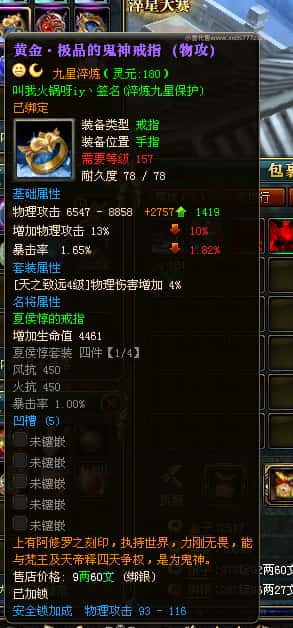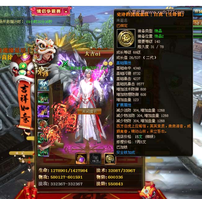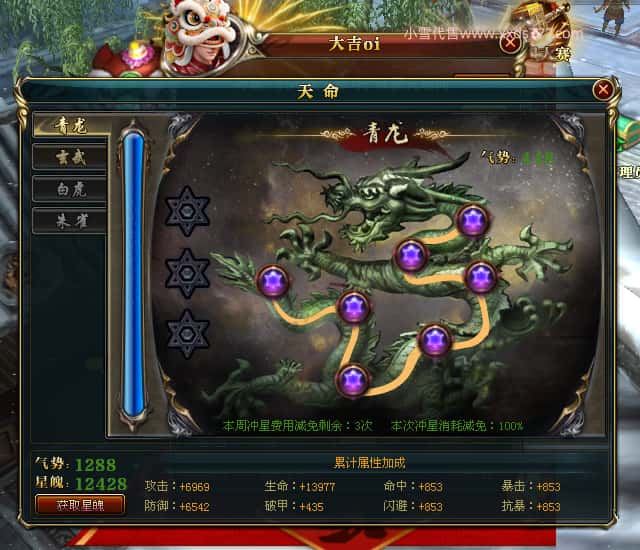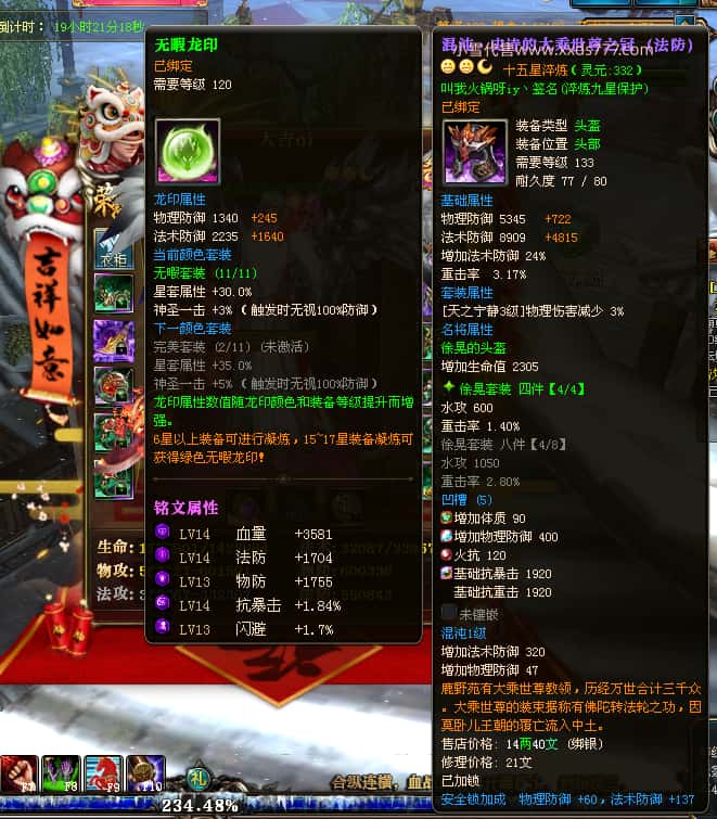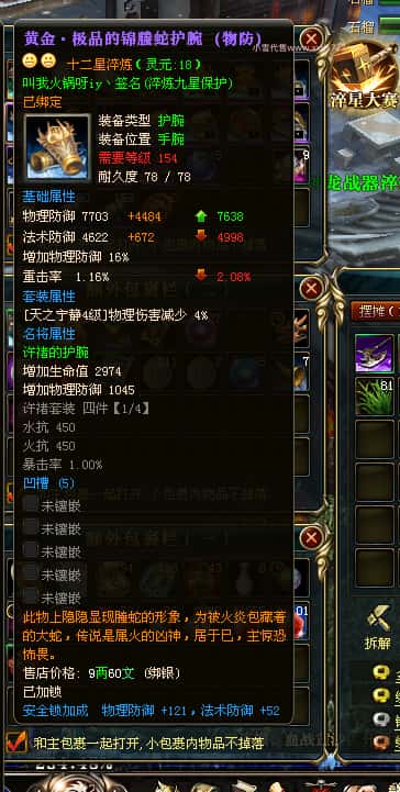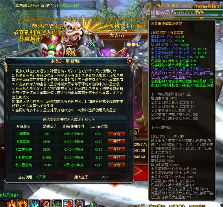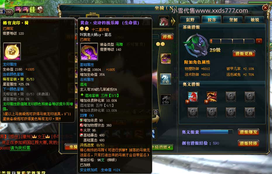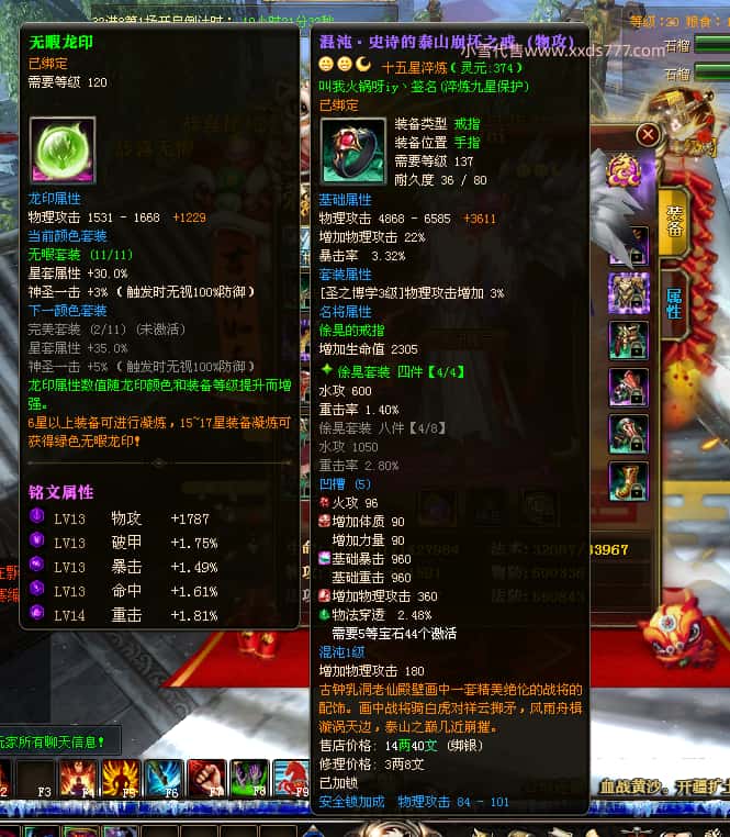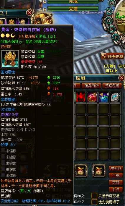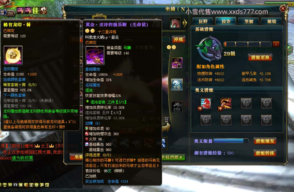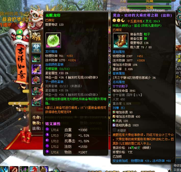 编号J24932 大吉oi 金蛇揽月 豫州 世界排第8名 1126W战力 人物黄金史诗紫15X(8件混沌) 马黄金史诗紫12X 龙魂190级 人物2件紫+9件绿龙印 马黄龙印 6666等单双属性石头 已开3次永久15星套 可以转移百分百安全