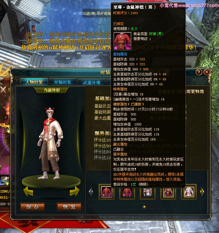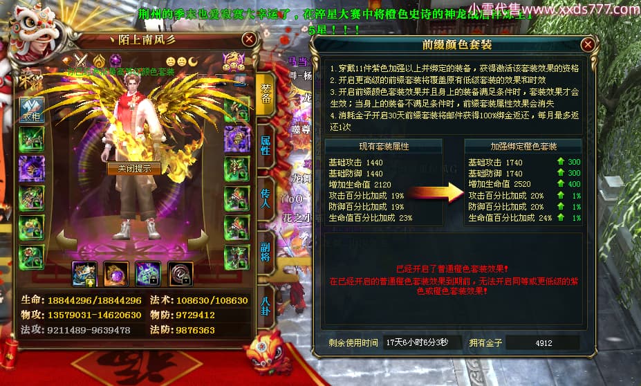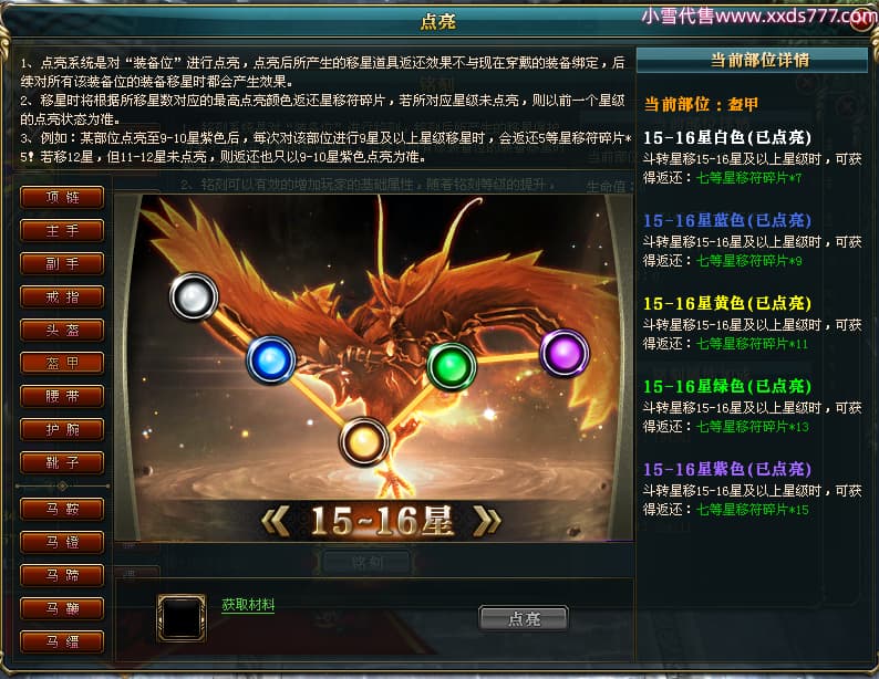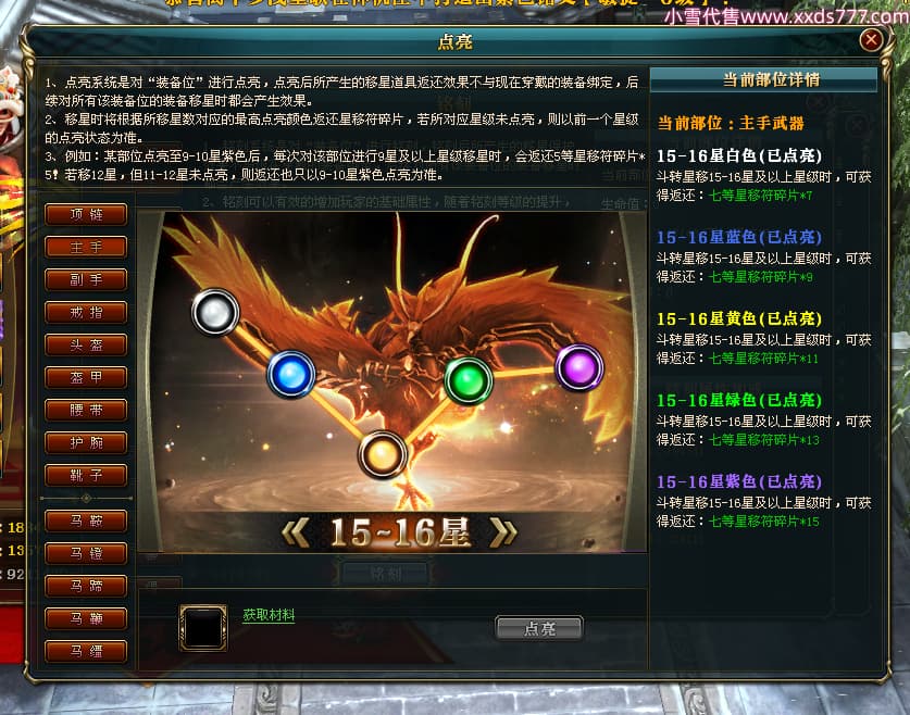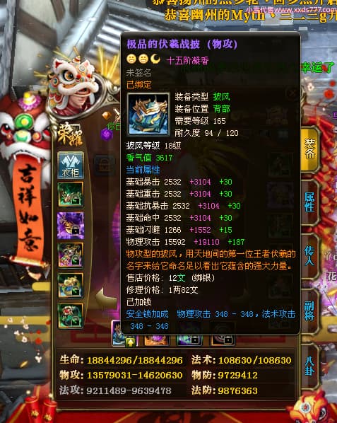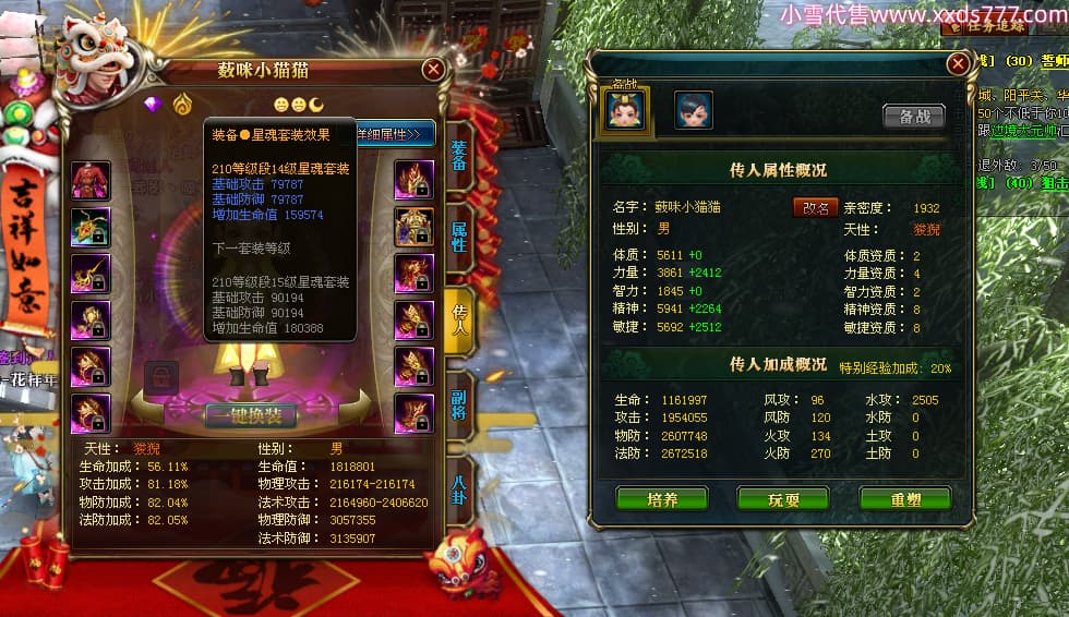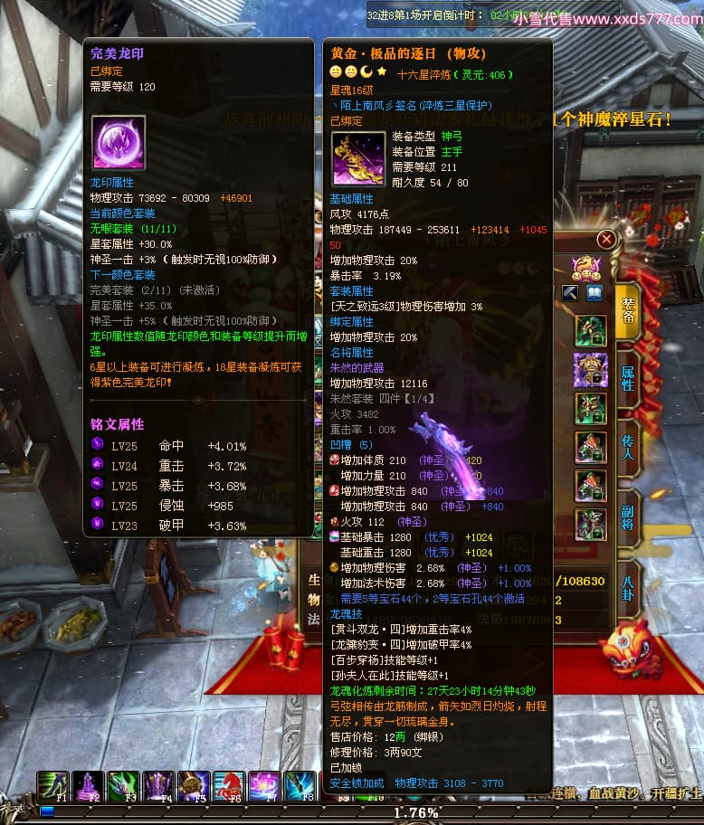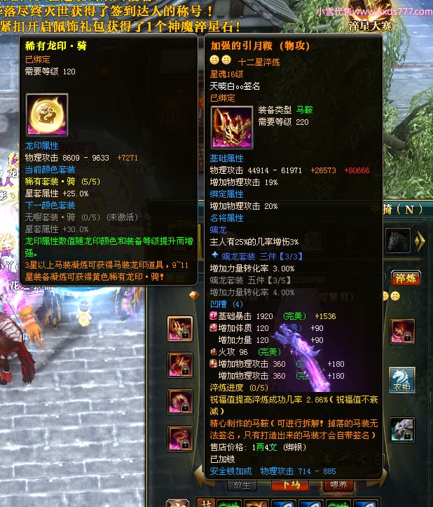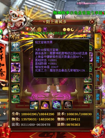 编号W24945 丶陌上南风彡 龙舞九州 扬州 本国排名10名 21056W战力 人物黄金极品橙15X(8件混沌) 传人极品紫15X 副将极品紫12X 马加强橙12X 极品紫15披风 人物星魂16级 传人星魂14级 副将星魂6级 马星魂16级 人物铭刻2件16级其余15级 点亮16星 马铭刻14级 点亮12星 人物绿龙印(2件紫龙印) 马黄龙印 六等单双属性神圣完美无暇石头 黄蓝孔
