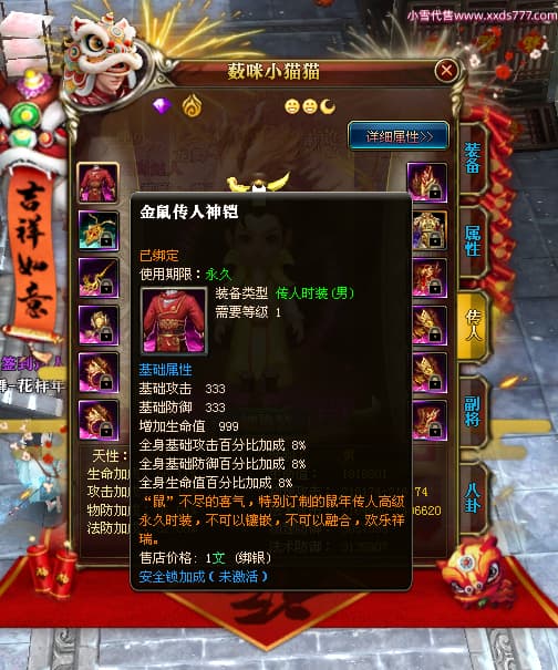2:代挂账号截图里面的流通金,银子,道具等日常消耗会发生变化,均不作为账号详细参考,文字及截图可能会有误差,请老板以最终确认交易前为准(补充:除了游戏角色能转移的外 账號都有可能被找回风险 我们只担保交易换绑流程跟交易资金 不担保100%不会找回 我们会尽量避免找回并协助买家后期处理)支持买家购买找回包赔服务