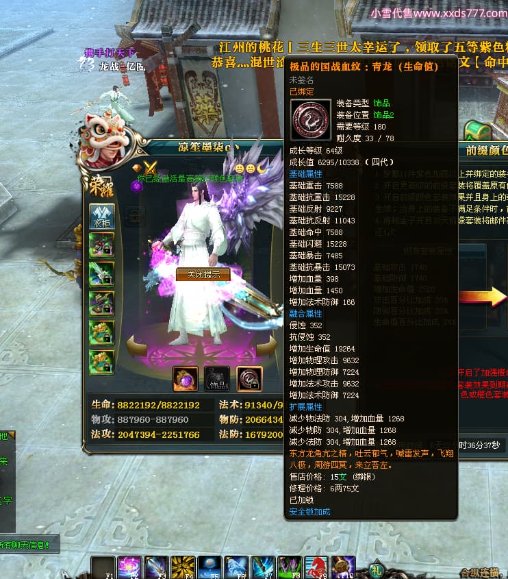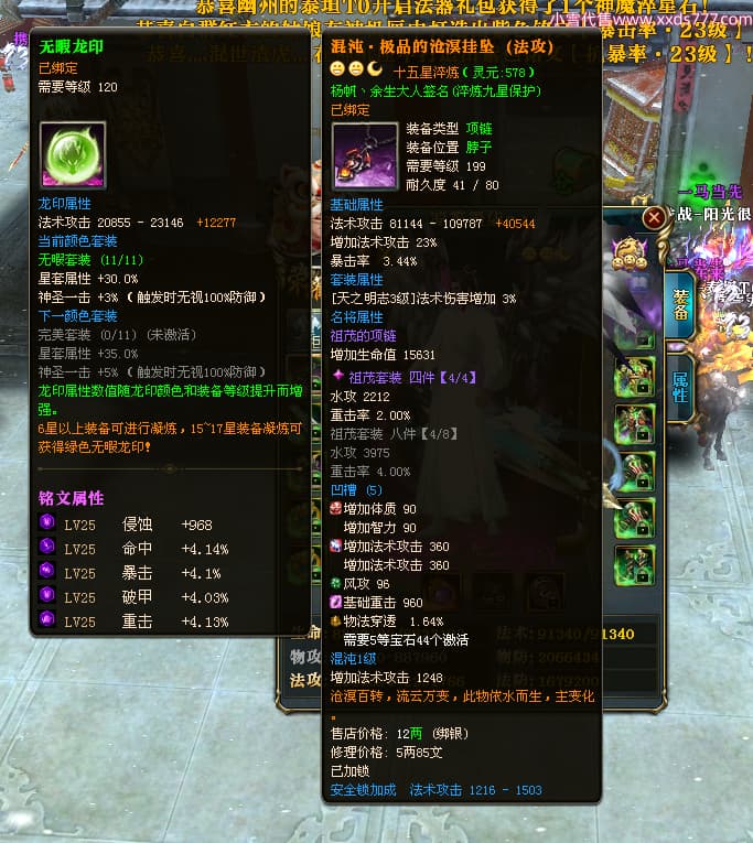 编号L24947 凉笙墨柒c丶 龙战王者 幽州 本国排名31名 5654战力 人物黄金加强橙15X(1件18X7件混沌) 马黄金加强橙11X 人物绿龙印 马黄龙印 六等单双属性石头 已开5次永久15星套 可以转移百分百安全