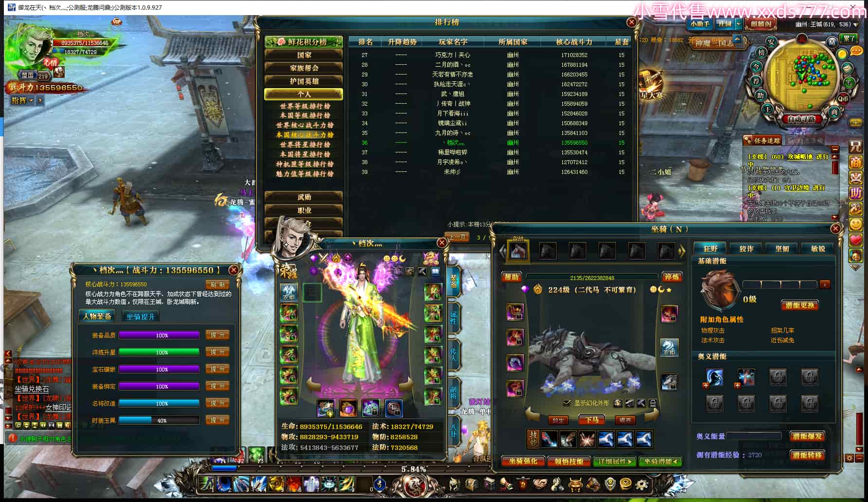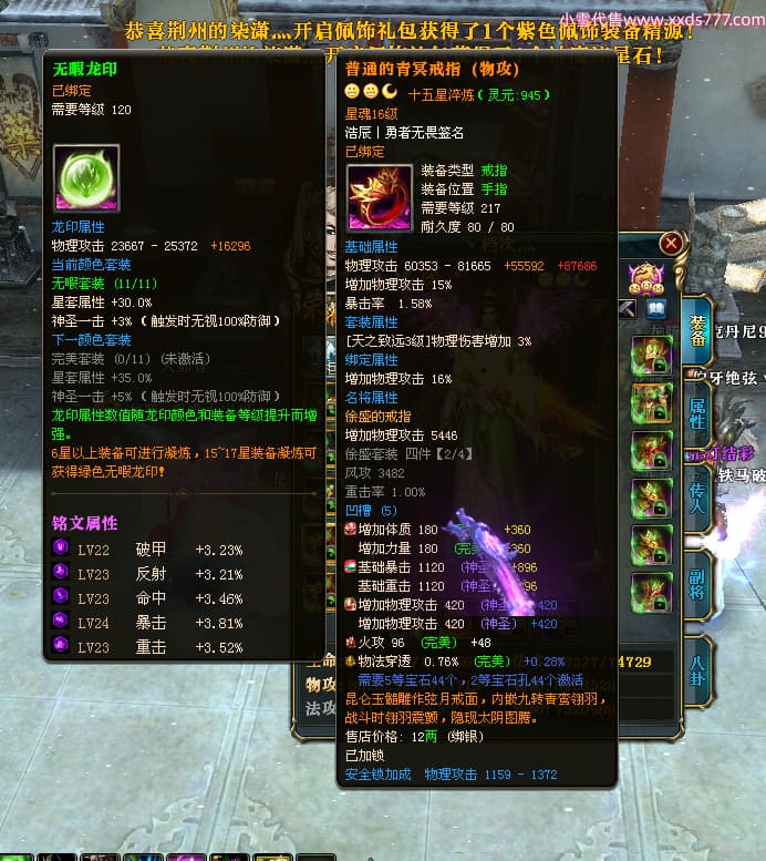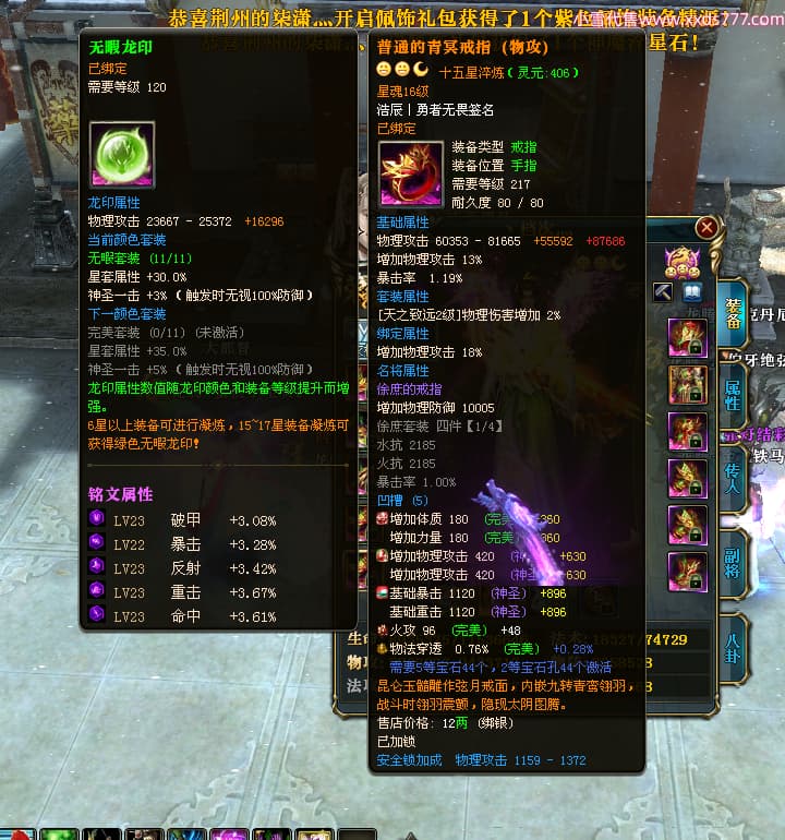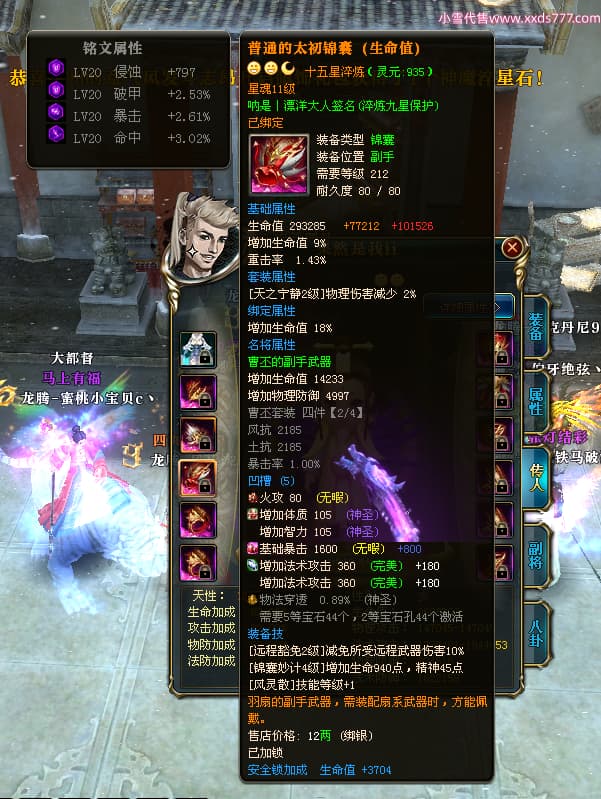 编号T24954 丶档次灬 龙腾问鼎 幽州 本国排名36名 13559W战力 人物史诗紫15X 传人史诗紫12X 副将精良紫12X 马史诗紫10X 精良紫15披风 人物星魂16级 传人星魂11级 副将星魂6级 马星魂10级 人物铭刻15级 人物点亮16星 马铭刻12级 点亮2件12星其余10星 人物绿龙印 马黄龙印 六等单双属性神圣完美无暇石 黄蓝孔 已开启永久15星套 可以转移百分百安全