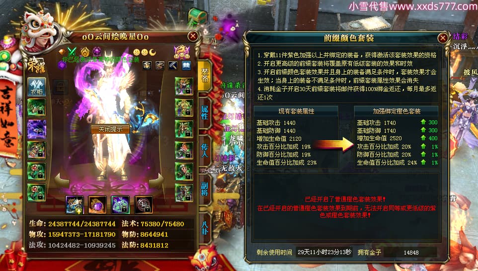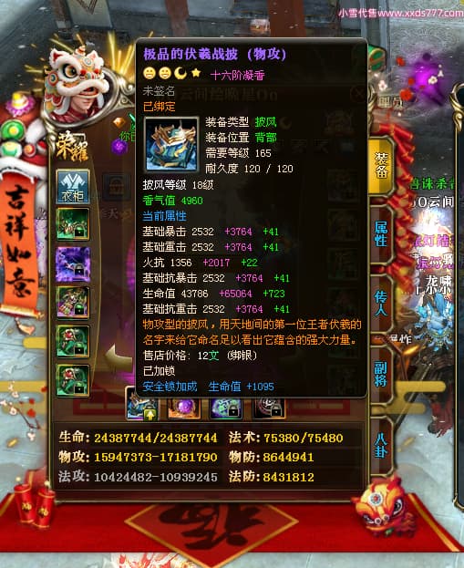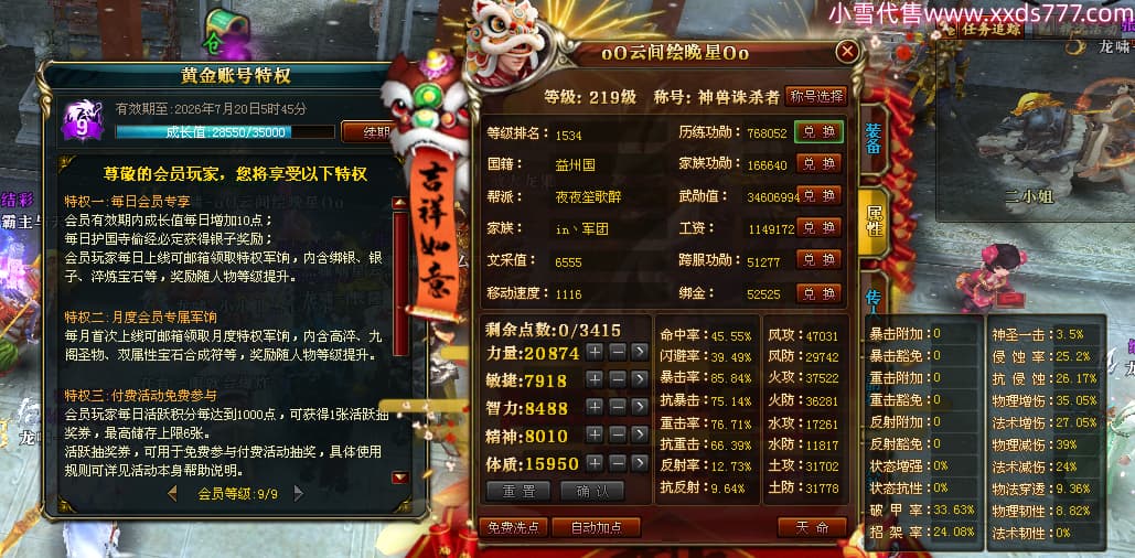 2:代挂账号截图里面的流通金,银子,道具等日常消耗会发生变化,均不作为账号详细参考,文字及截图可能会有误差,请老板以最终确认交易前为准(补充:除了游戏角色能转移的外 账號都有可能被找回风险 我们只担保交易换绑流程跟交易资金 不担保100%不会找回 我们会尽量避免找回并协助买家后期处理)支持买家购买找回包赔服务