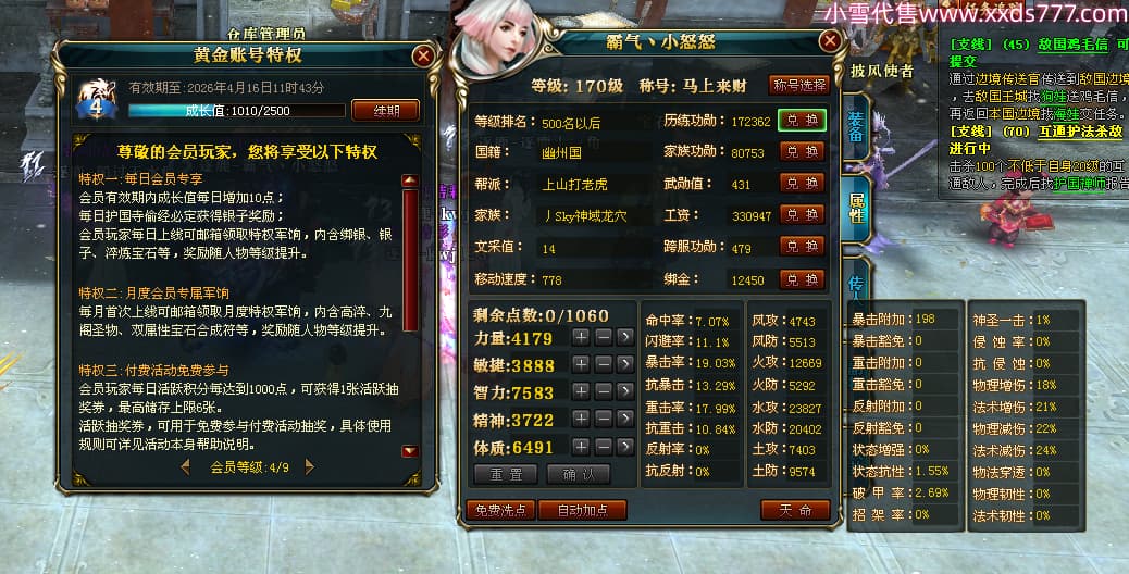 2:代挂账号截图里面的流通金,银子,道具等日常消耗会发生变化,均不作为账号详细参考,文字及截图可能会有误差,请老板以最终确认交易前为准(补充:除了游戏角色能转移的外 账號都有可能被找回风险 我们只担保交易换绑流程跟交易资金 不担保100%不会找回 我们会尽量避免找回并协助买家后期处理)支持买家购买找回包赔服务