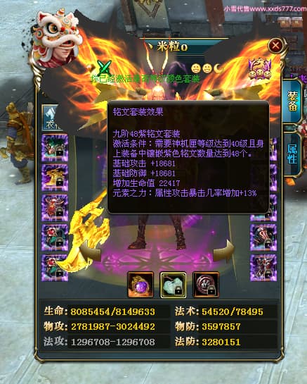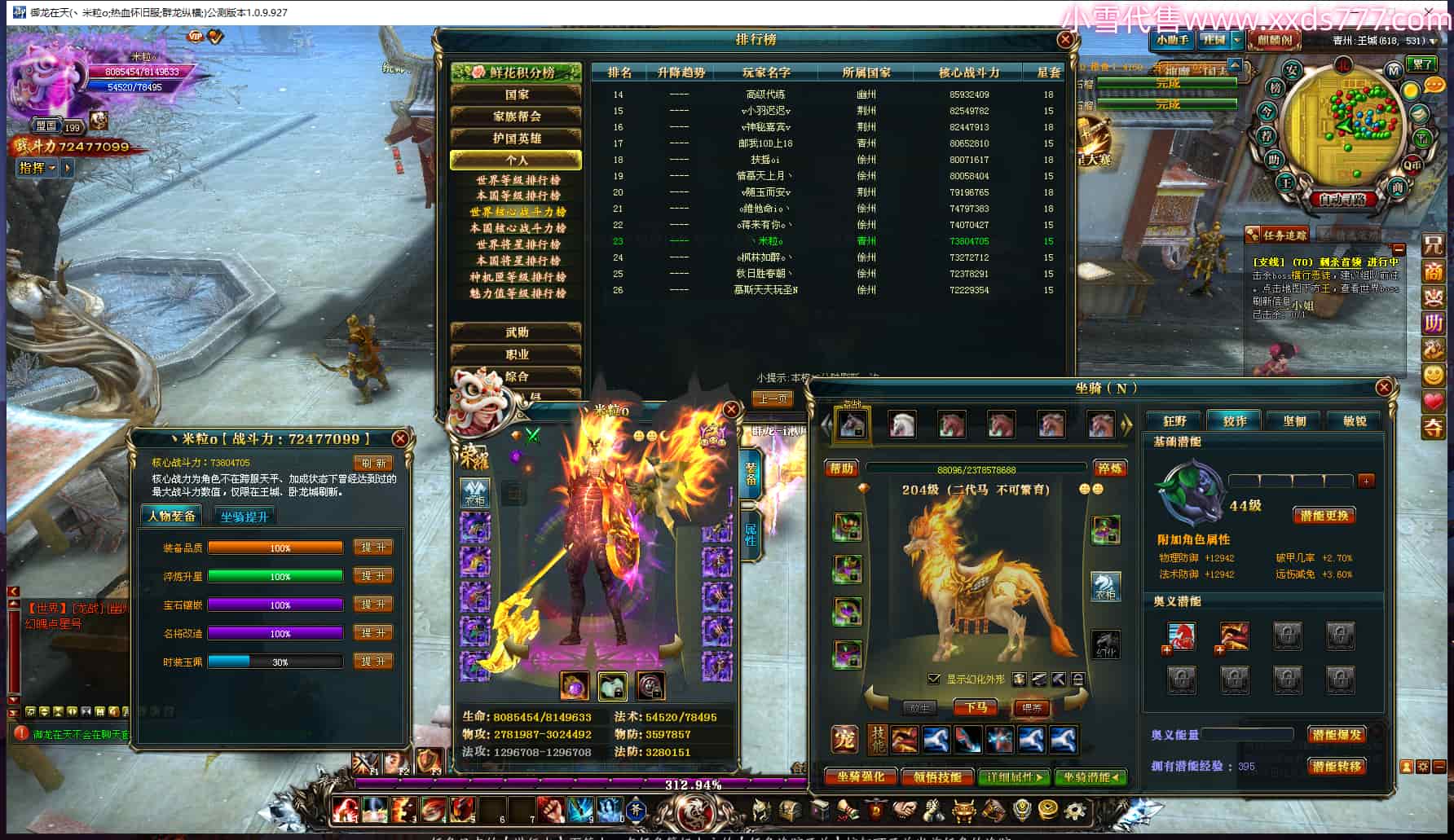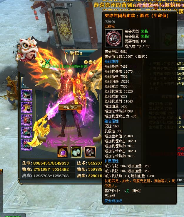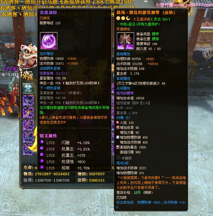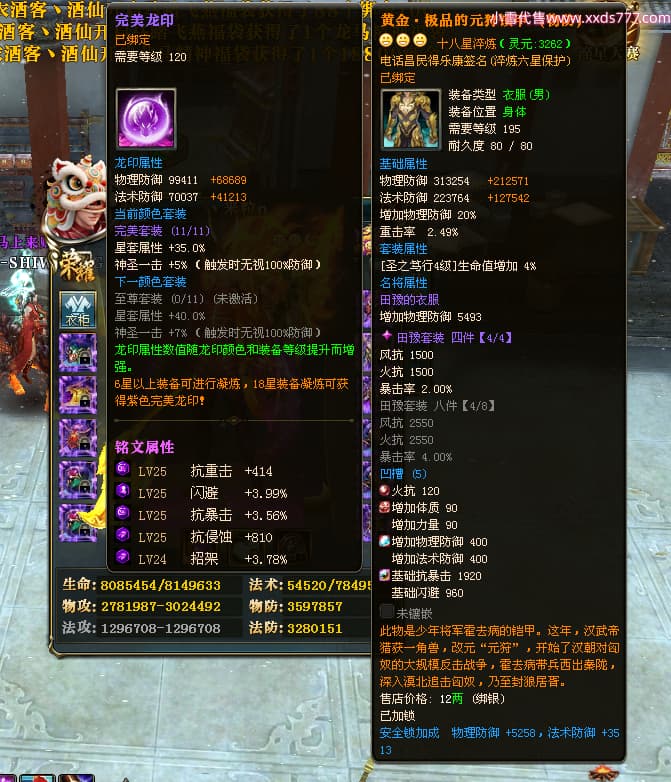 编号Q24981 丶米粒o 群龙纵横 青州 世界排名23名 7247W战力 人物黄金精良橙15X(3件18X9件混沌) 马黄金精良橙12X 人物紫龙印 马绿龙印 六等单双属性石头 已开完永久15星套 可以转移百分百安全