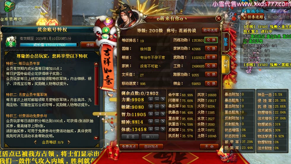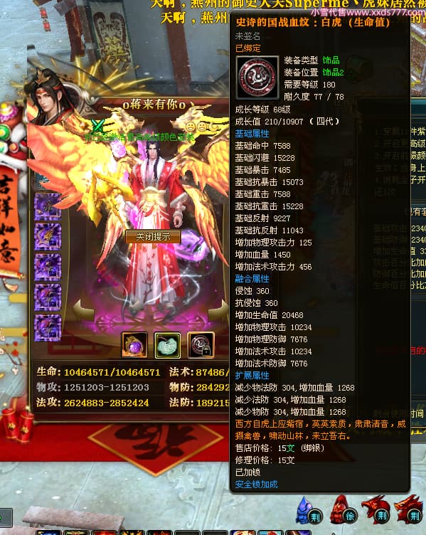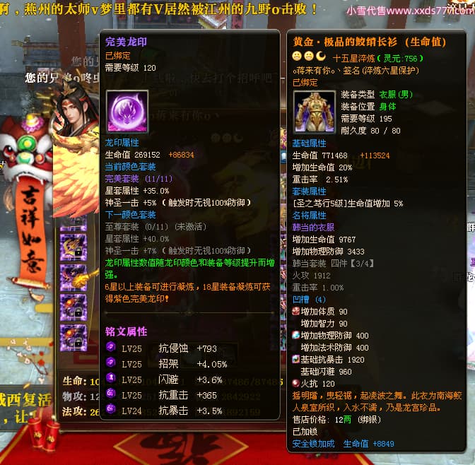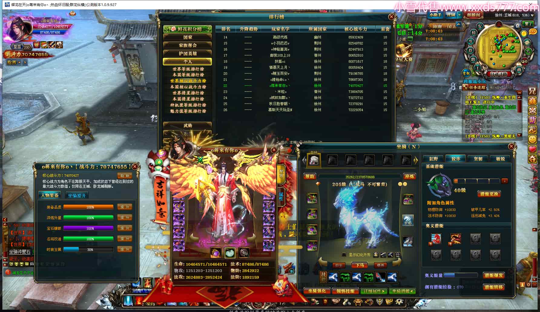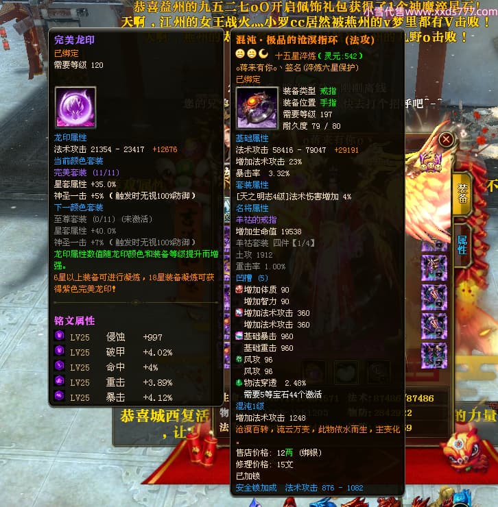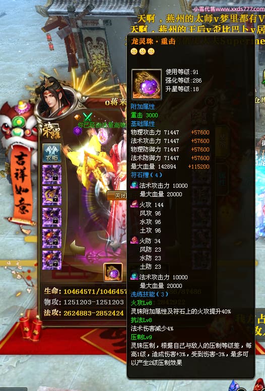 编号Q24986 o蒋来有你o丶 群龙纵横 徐州 本国排名22名 7074W战力 人物黄金极品橙15X(9件混沌) 马黄金精良橙12X 人物紫龙印 马绿龙印 六等单双属性石头 已开完永久15星套 可以转移百分百安全
