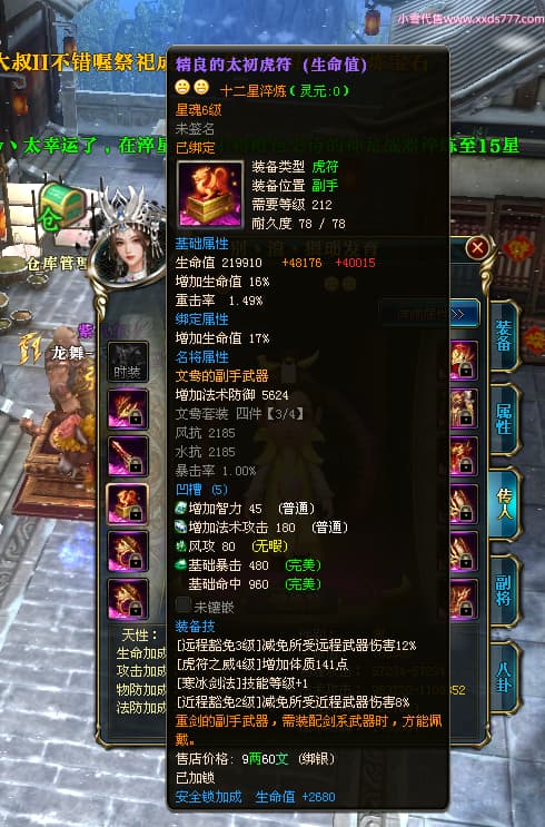 2:代挂账号截图里面的流通金,银子,道具等日常消耗会发生变化,均不作为账号详细参考,文字及截图可能会有误差,请老板以最终确认交易前为准(补充:除了游戏角色能转移的外 账號都有可能被找回风险 我们只担保交易换绑流程跟交易资金 不担保100%不会找回 我们会尽量避免找回并协助买家后期处理)支持买家购买找回包赔服务