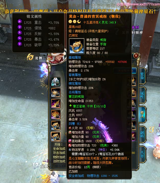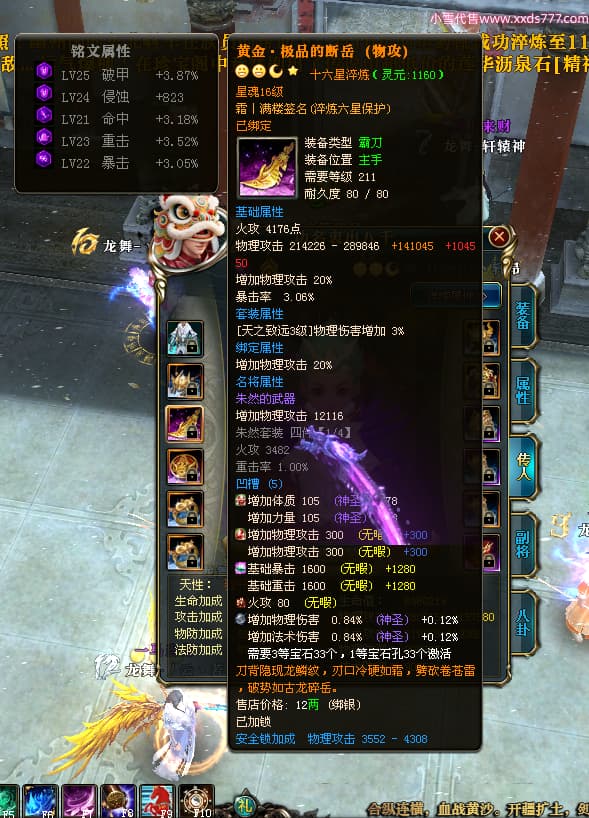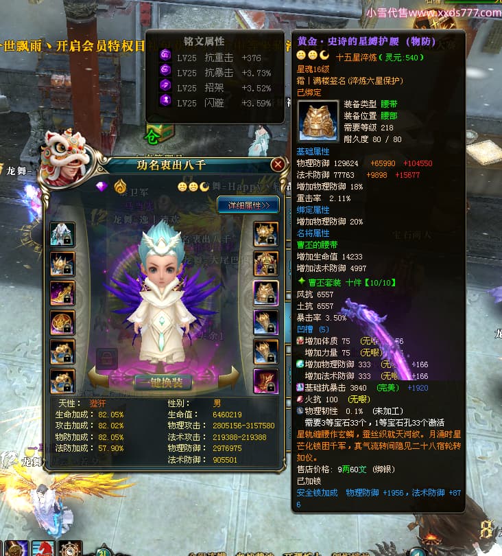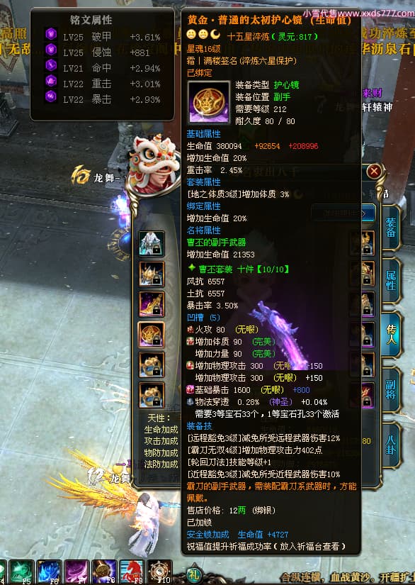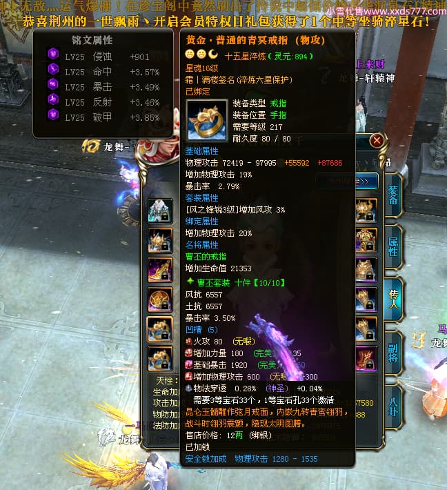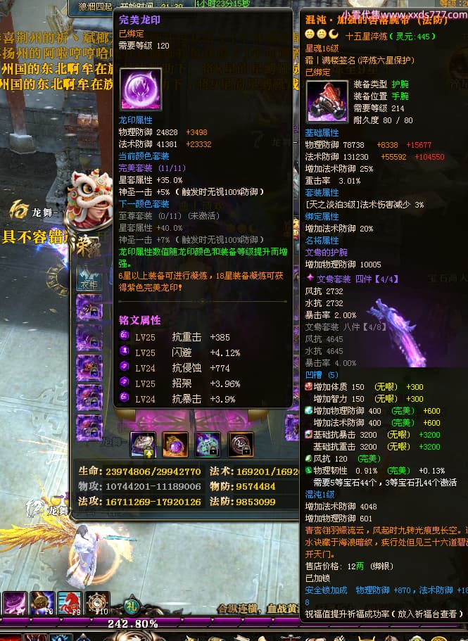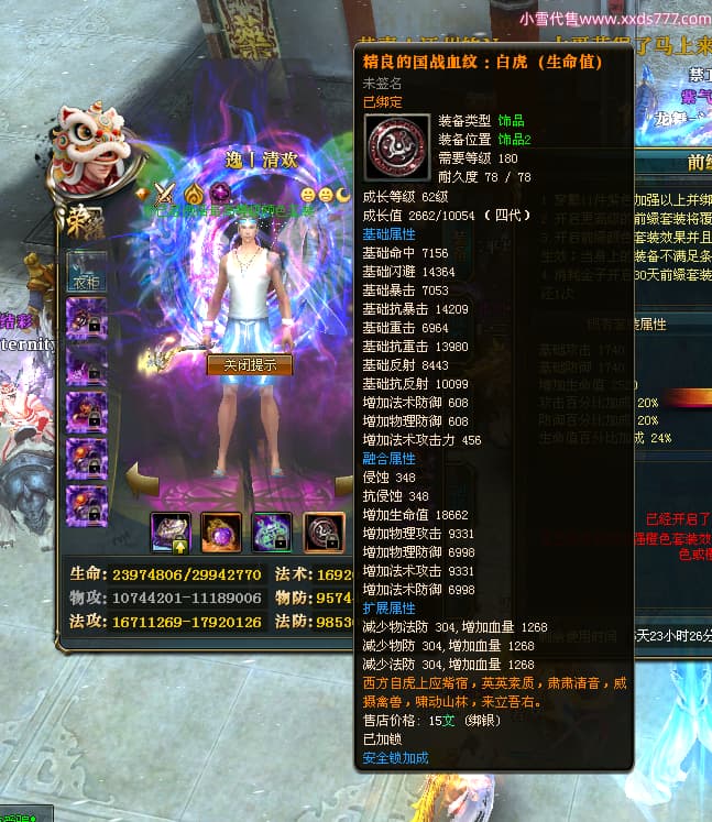 编号W25002 逸丨清欢 龙舞九州 青州 世界排名59名 28473W战力 人物黄金加强橙15X(2件18X9件混沌) 传人黄金普通橙15X 副将精良紫12X 马黄金普通橙13X 极品紫16披风 人物星魂16级 传人星魂14级 副将星魂6级 马星魂16级 人物铭刻1件17级其余15级 点亮16星 马铭刻14级 点亮14星 人物紫龙印 马黄龙印(1件绿龙印) 六等单双属性神圣完美无暇石头 黄绿孔 已开启永久18星套
