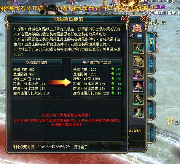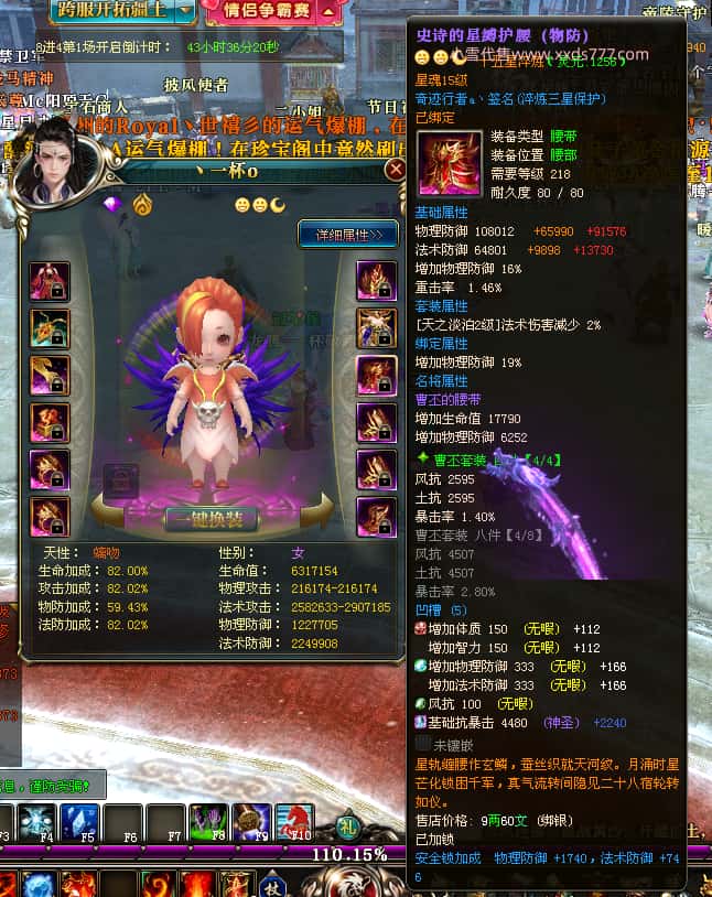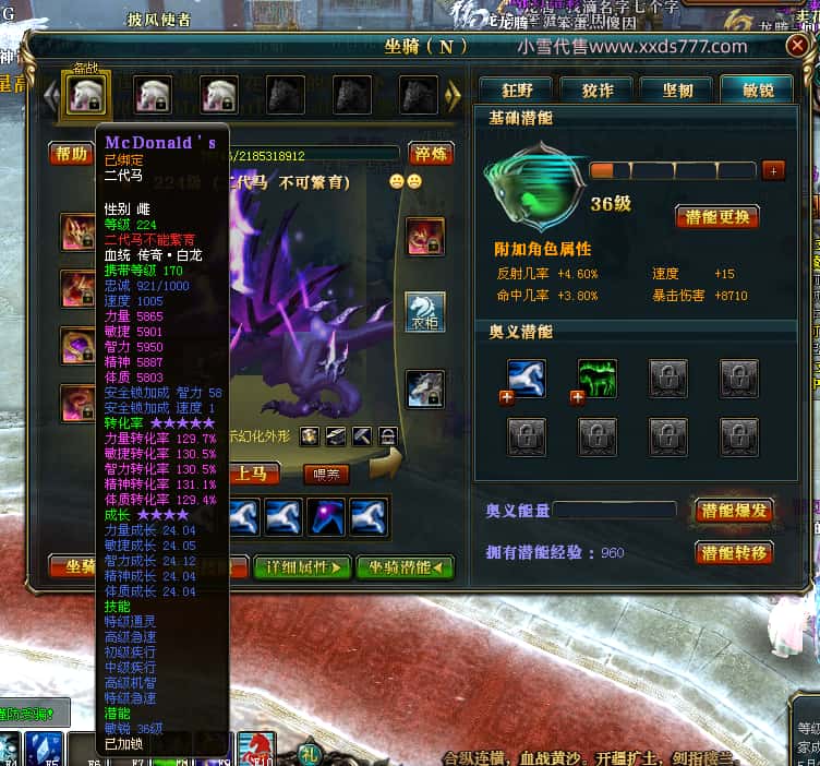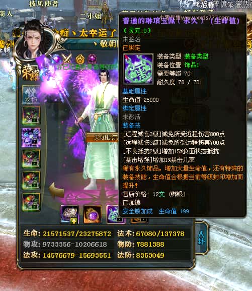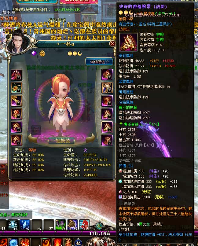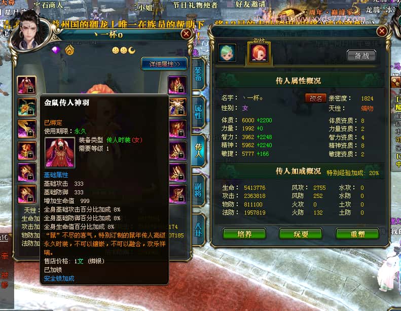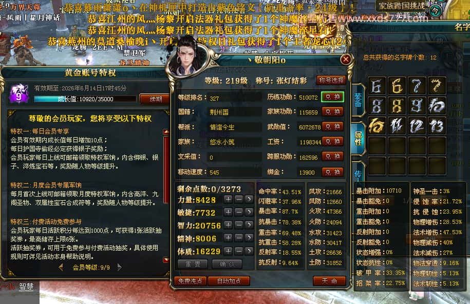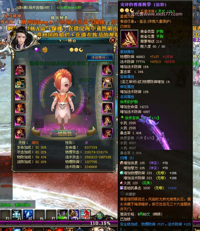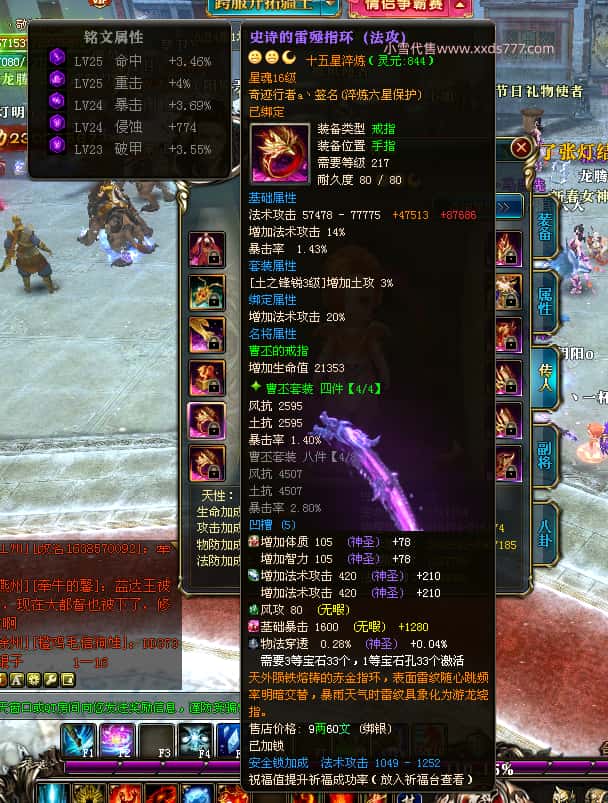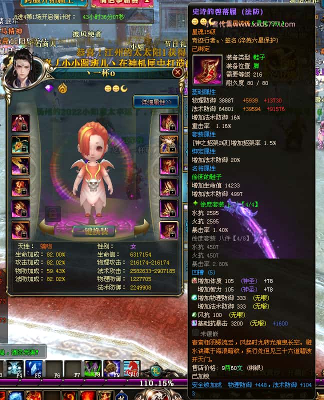 编号T25016 丶敬朝阳o 龙腾问鼎 荆州 本国排名第28名 23032W战力 人物黄金极品橙15X(武器18X 8件混沌) 传人极品紫15X 副将极品紫13X 马加强橙12X 极品紫15披风 人物星魂16级 传人15级 副将6级 马星魂16级 人物铭刻(主手18级,项链/副手/盔甲16级,剩下的15级) 点亮16星 马铭刻2件14级3件13级 点亮12星 人物1件紫+10件绿龙印 马黄龙印 五六等单双属性神圣完美无瑕石头 绿黄孔 已经开完永久15星套 可以转移百分百安全