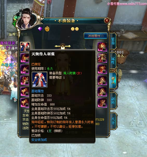 2:代挂账号截图里面的流通金,银子,道具等日常消耗会发生变化,均不作为账号详细参考,文字及截图可能会有误差,请老板以最终确认交易前为准(补充:除了游戏角色能转移的外 账號都有可能被找回风险 我们只担保交易换绑流程跟交易资金 不担保100%不会找回 我们会尽量避免找回并协助买家后期处理)支持买家购买找回包赔服务