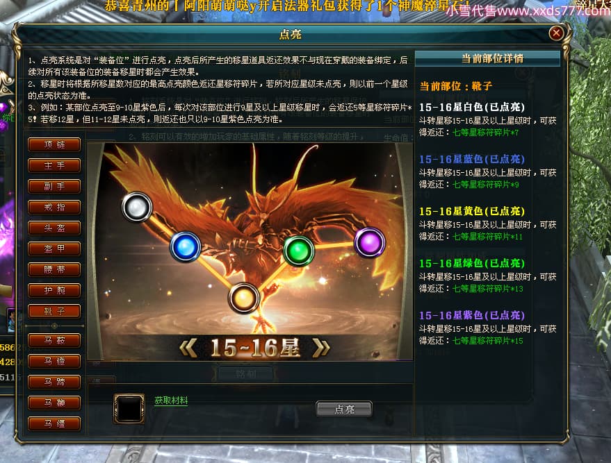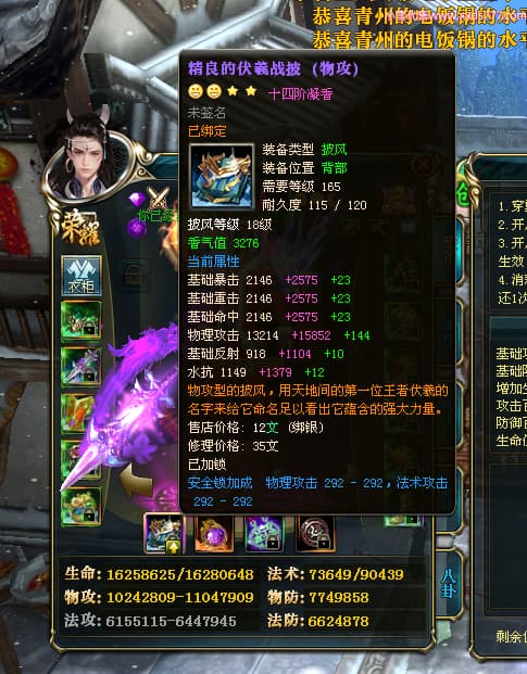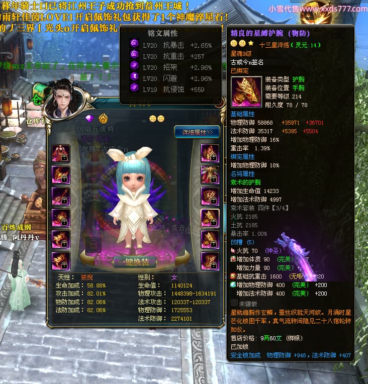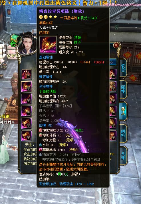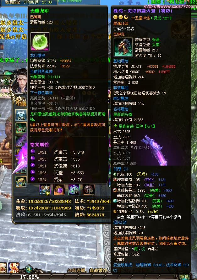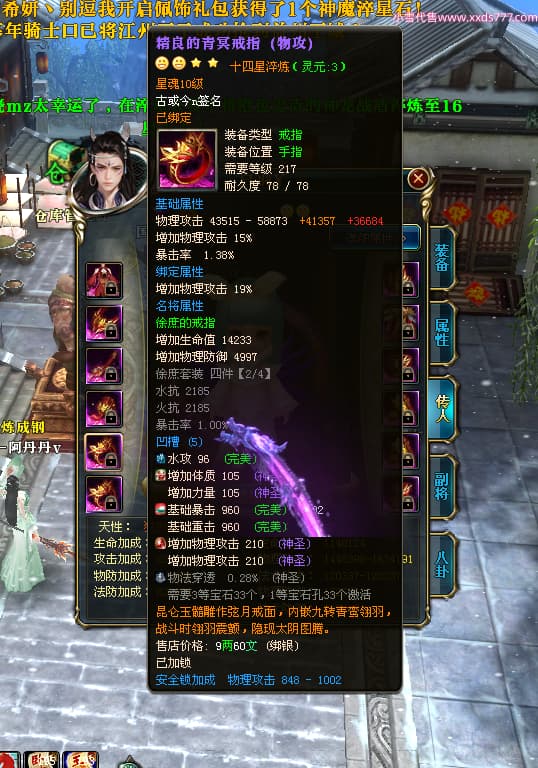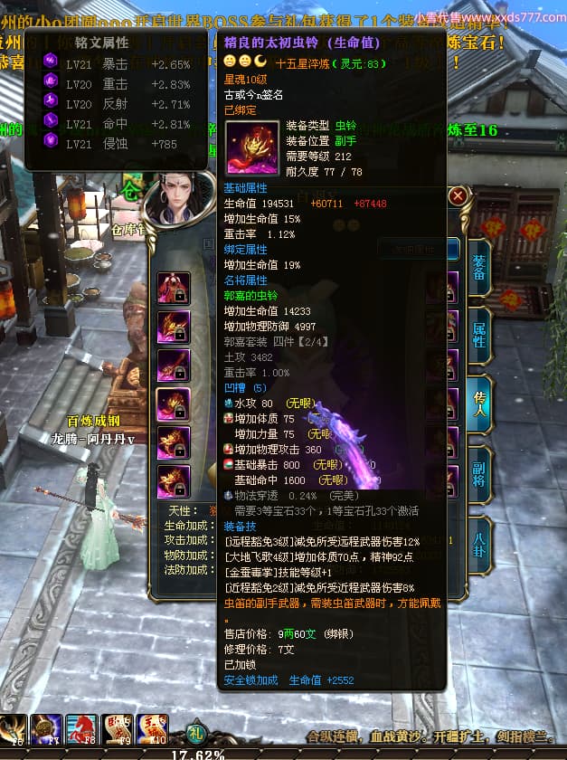 编号T25038 古或今n 龙腾问鼎 扬州 本国排名第24名 15662W战力 人物黄金史诗紫15X(4件混沌) 传人精良紫12X 副将精良紫12X 马史诗紫10X 精良紫14披风 人物星魂16级 传人星魂9级 副将星魂6级 马星魂10级 人物铭刻3件16级其余15级 点亮7件16星其余14星 马铭刻12级 点亮10星 人物绿龙印 马黄龙印 五六等单双属性神圣完美无瑕石头 黄蓝孔