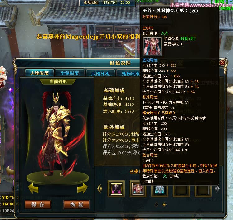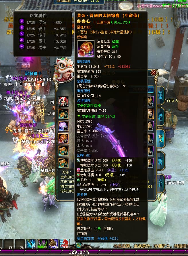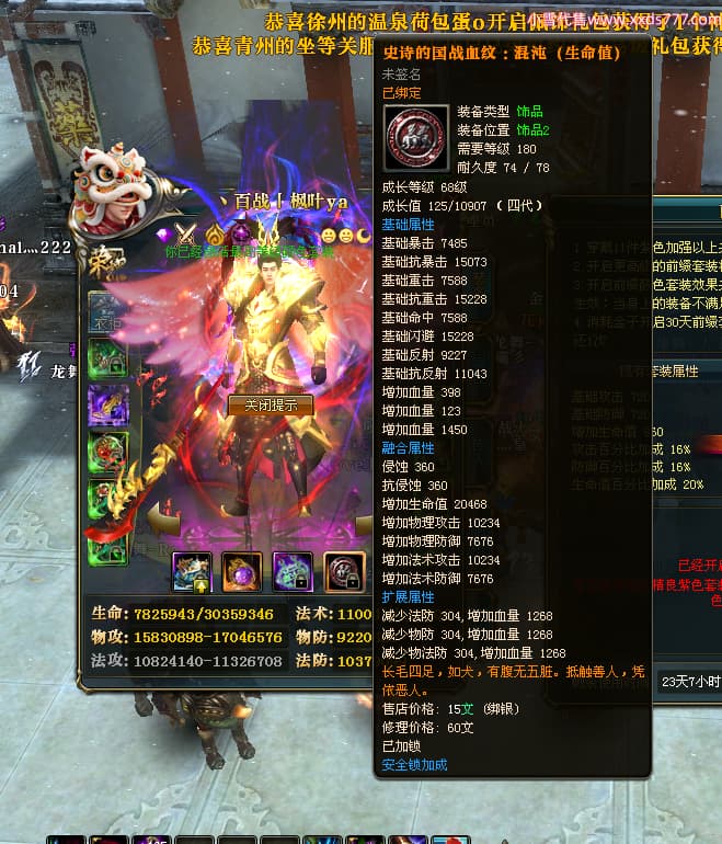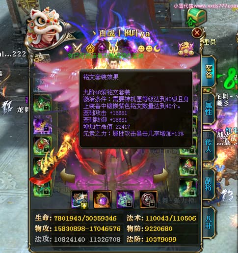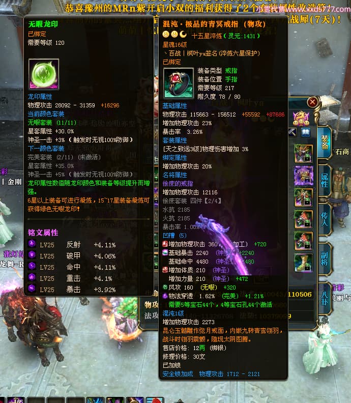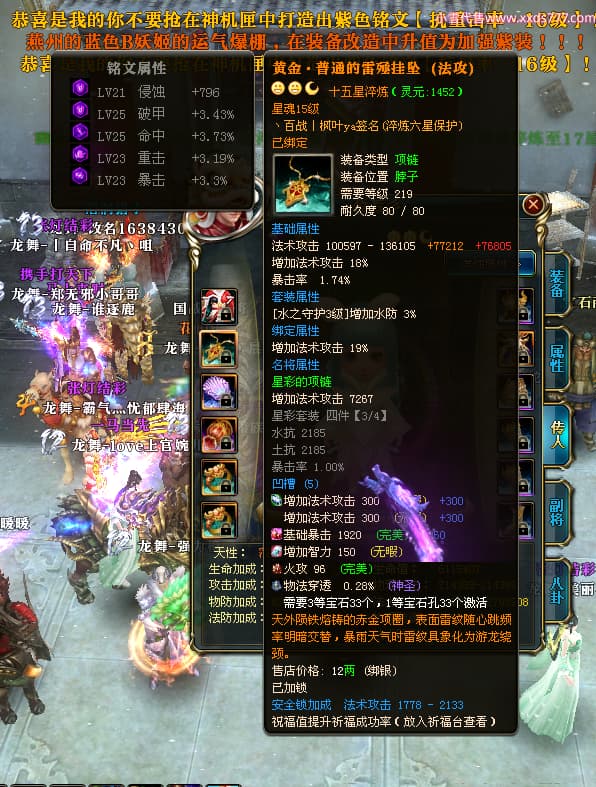 编号W25040 丶百战丨枫叶ya 龙舞九州 荆州 世界排名66名 28096W战力 人物黄金极品橙15X(8件混沌) 传人黄金史诗紫15X 副将精良紫12X 马黄金加强橙13X 极品紫16披风 人物星魂16级 传人星魂14级 副将星魂6级 马星魂16级 人物铭刻15级 人物点亮16星 马铭刻15级 点亮4件14星其余12星 人物绿龙印(2件紫龙印) 马黄龙印 六等单双属性完美无暇神圣石头 绿紫孔 已开完永久18星套