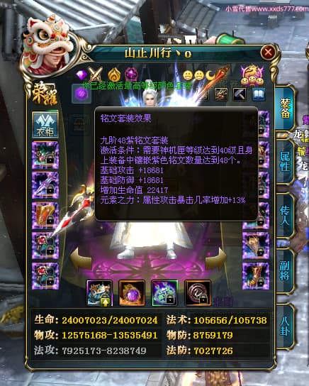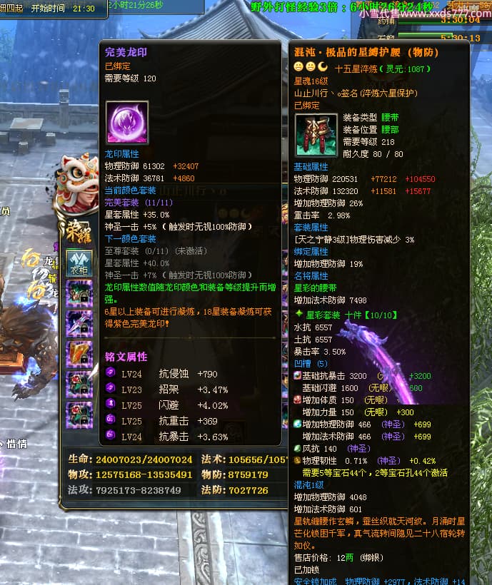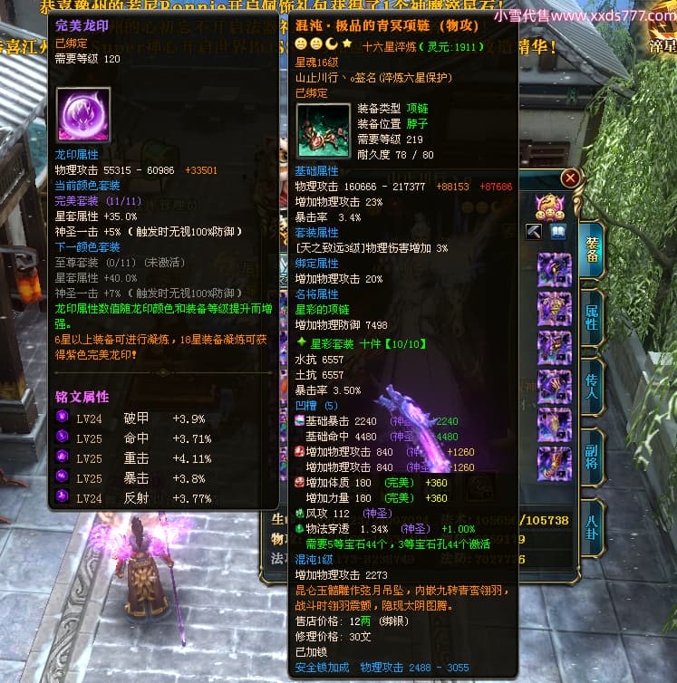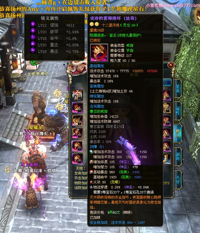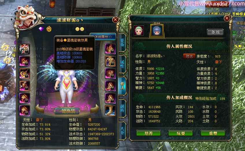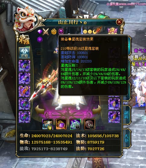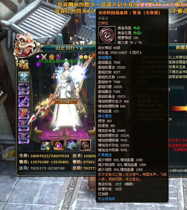 编号W25041 山止川行丶o 龙舞九州 益州 本国排名12名 21141W战力 人物黄金精良橙15X(6件混沌) 传人史诗紫12X 马普通橙12X 极品紫15披风 人物星魂16级 传人星魂16级 副将星魂6级 马星魂16级 人物铭刻1件17级3件16级其余15级 点亮16星 马铭刻12级 点亮12星 人物紫龙印 马黄龙印 六等单双属性神圣完美无暇石头 黄绿孔