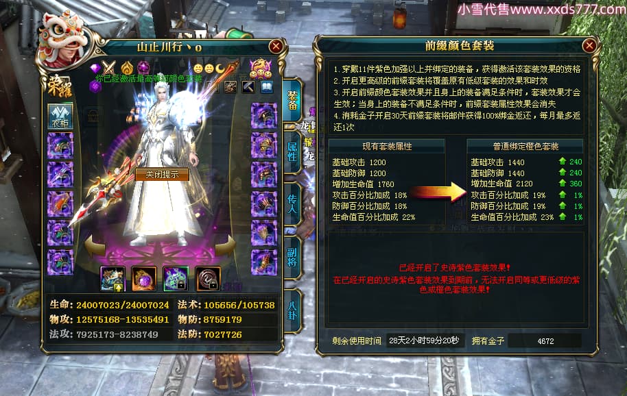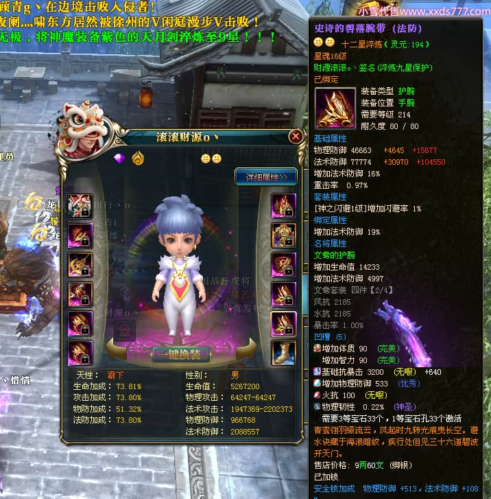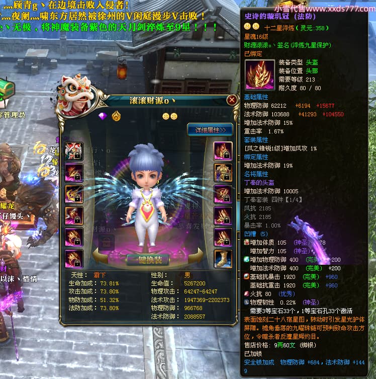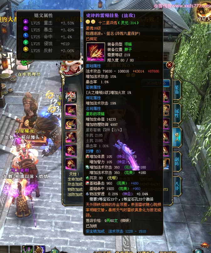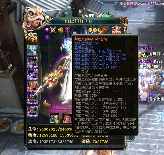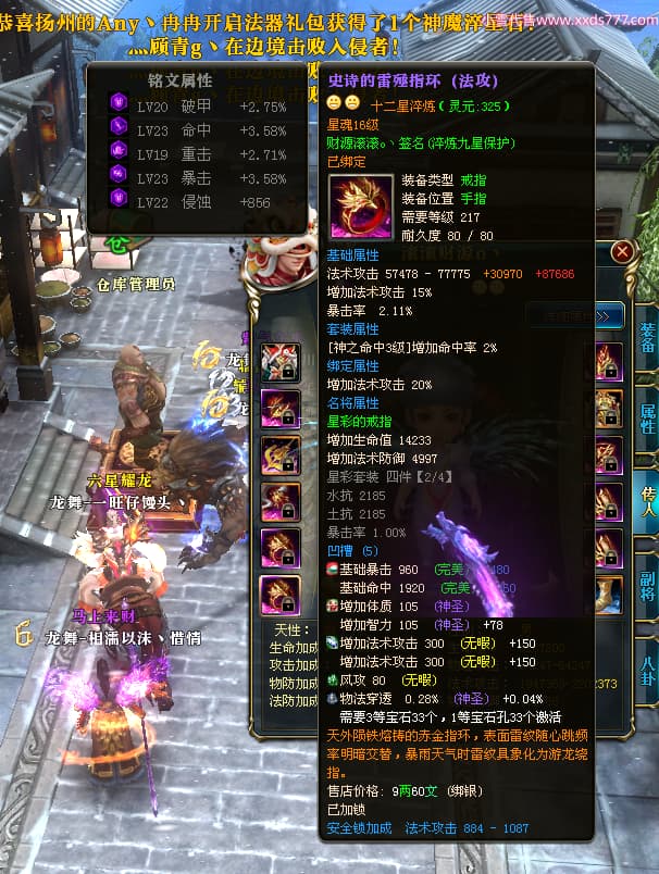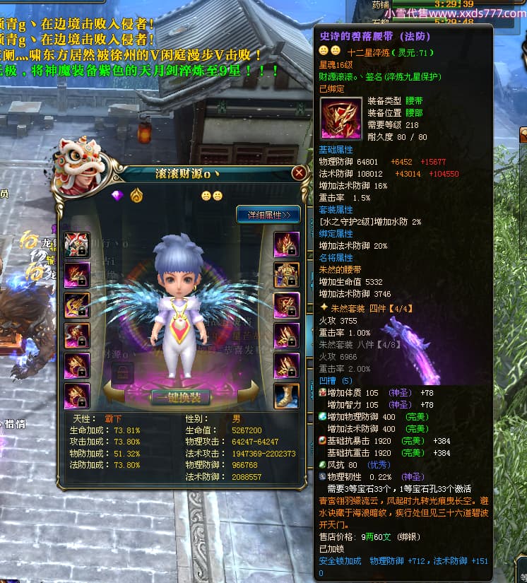 编号W25041 山止川行丶o 龙舞九州 益州 本国排名12名 21141W战力 人物黄金精良橙15X(6件混沌) 传人史诗紫12X 马普通橙12X 极品紫15披风 人物星魂16级 传人星魂16级 副将星魂6级 马星魂16级 人物铭刻1件17级3件16级其余15级 点亮16星 马铭刻12级 点亮12星 人物紫龙印 马黄龙印 六等单双属性神圣完美无暇石头 黄绿孔