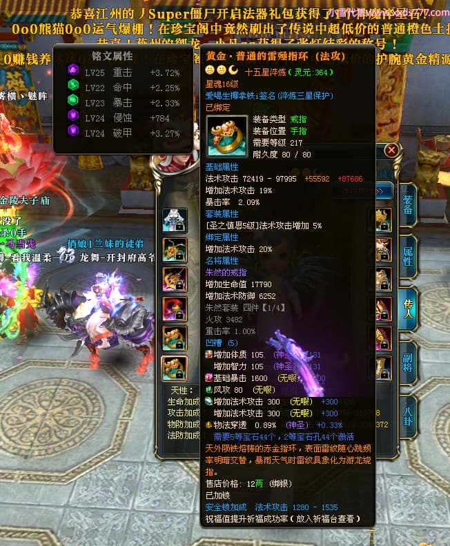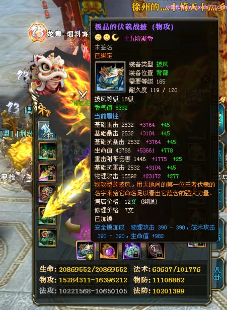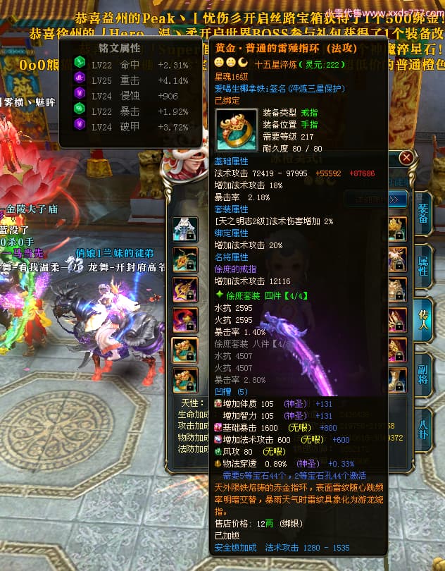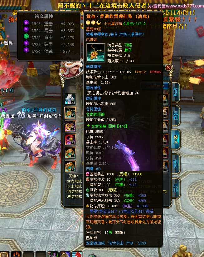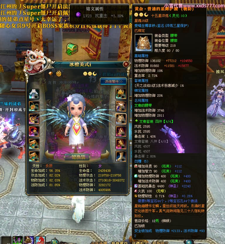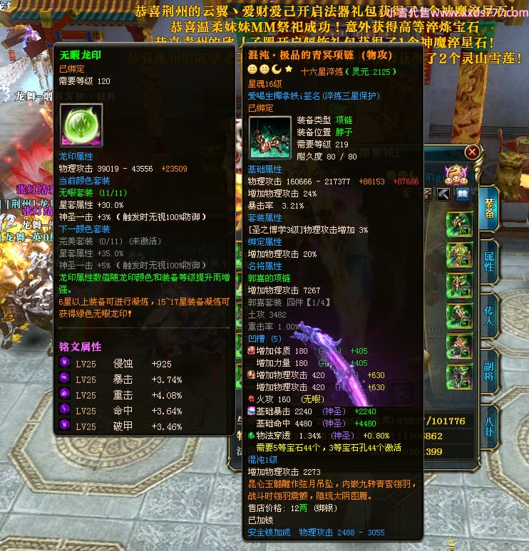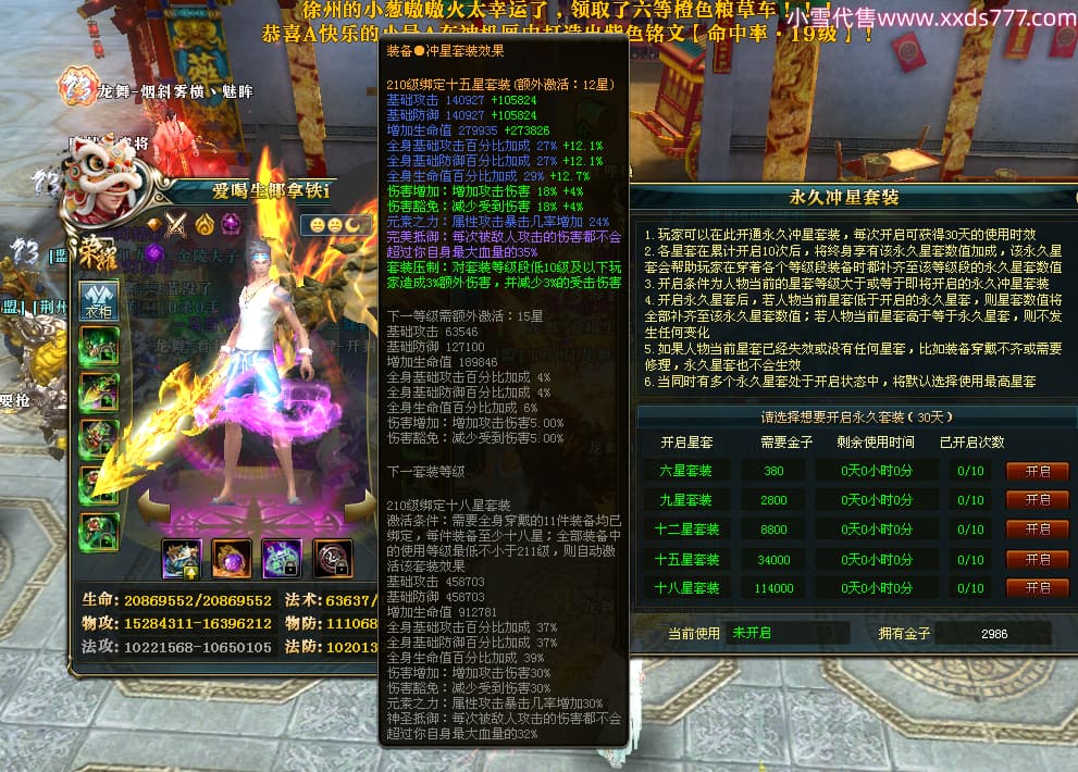 编号W25080 爱喝生椰拿铁i 龙舞九州 燕州 世界排名100名 24014W战力 人物黄金极品橙15X(2件18X1件17X9件混沌) 传人普通橙15X 副将极品紫15X 马加强橙12X 极品紫15披风 人物星魂16级 传人星魂16级 副将星魂9级 马星魂16级 人物铭刻15级 点亮16星 马铭刻1件13级其余12级 点亮1件14星其余12星 人物绿龙印 马黄龙印(1件绿龙印) 六等单双属性神圣完美无暇石头 黄绿孔