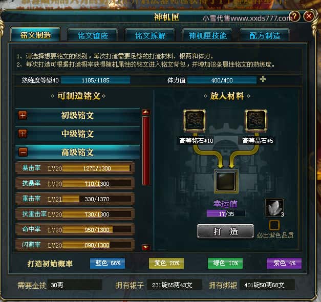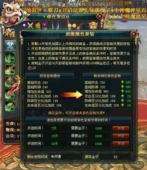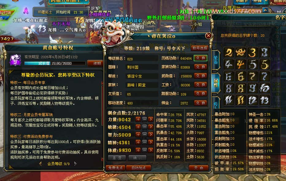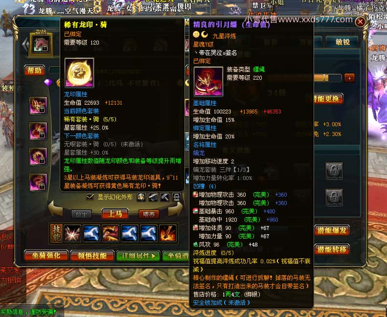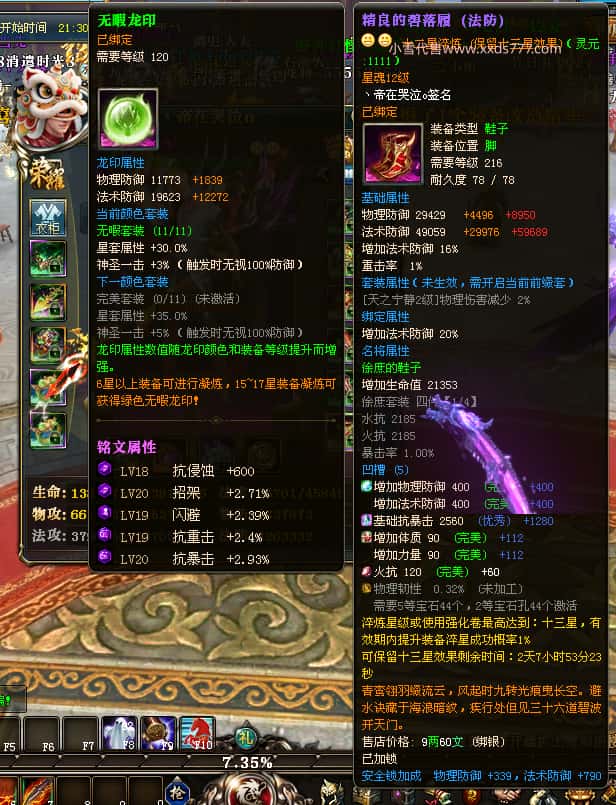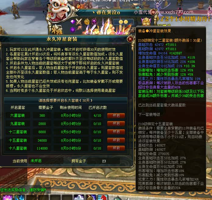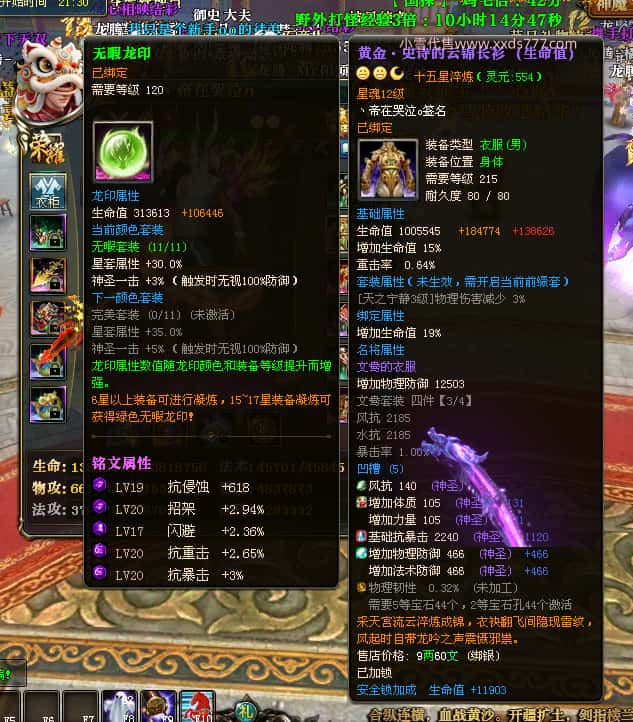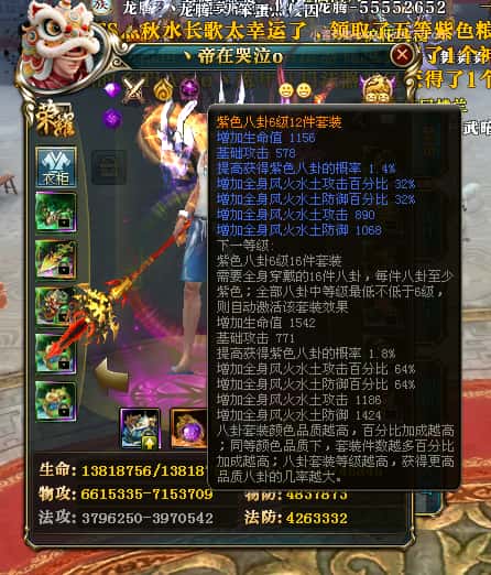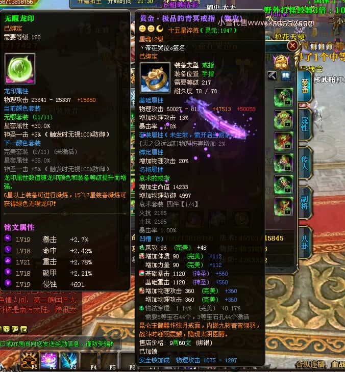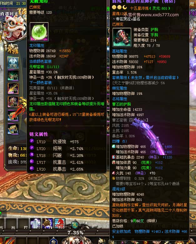 编号T25114 丶帝在哭泣o 龙腾问鼎 荆州 本国排第101名 9671W战力 人物精良紫12X(10件15X 5件混沌) 传人普通紫12X 副将精良紫12X 马精良紫9X 人物星魂12级 传人6级 副将3级 马星魂7级 人物星魂主手/盔甲15级,副手14级剩下的12级 点亮2件14星 剩下的12星 马铭刻12级 点亮10星 人物绿龙印 马黄龙印 五等单双属性神圣完美无瑕石头